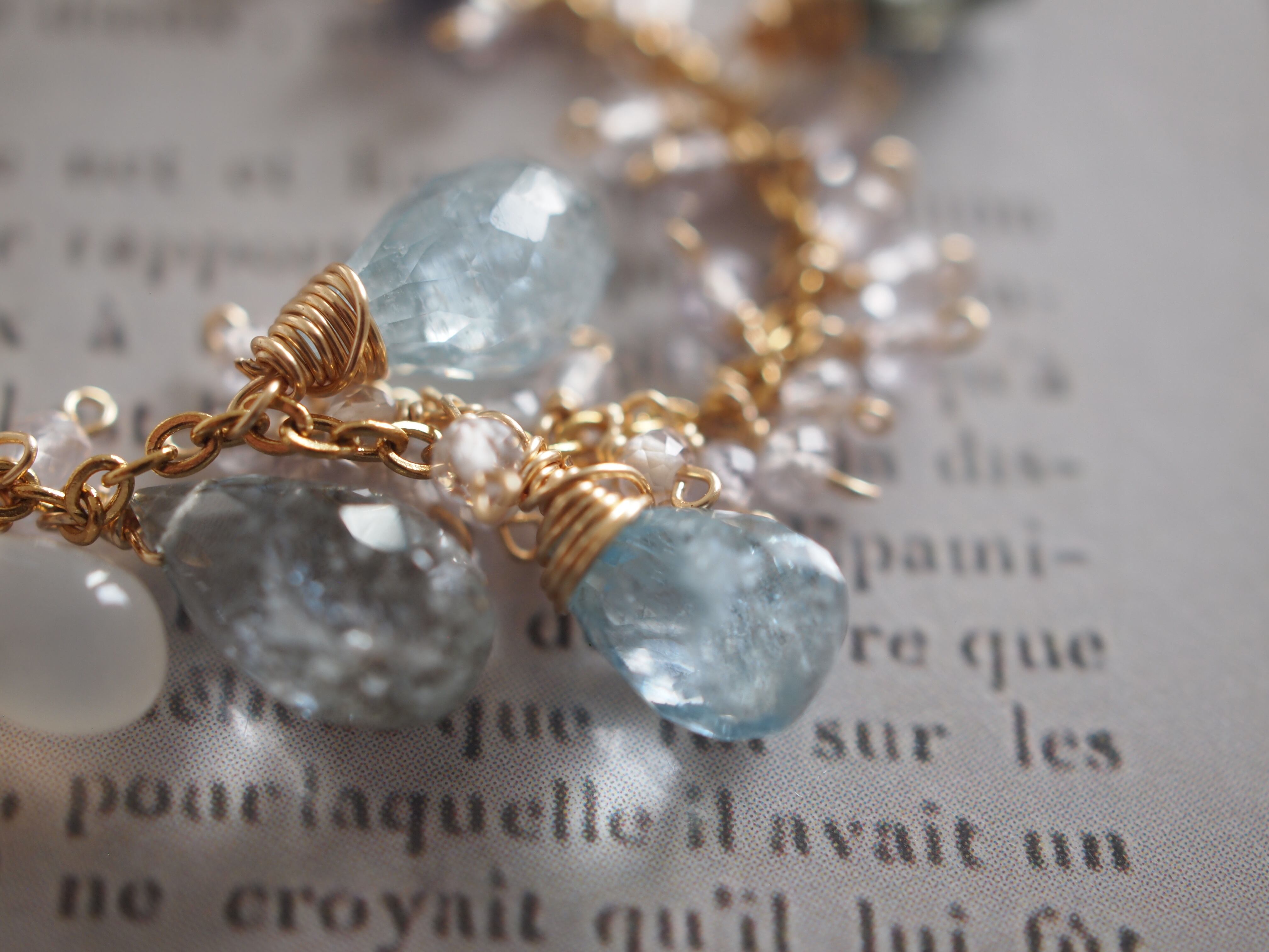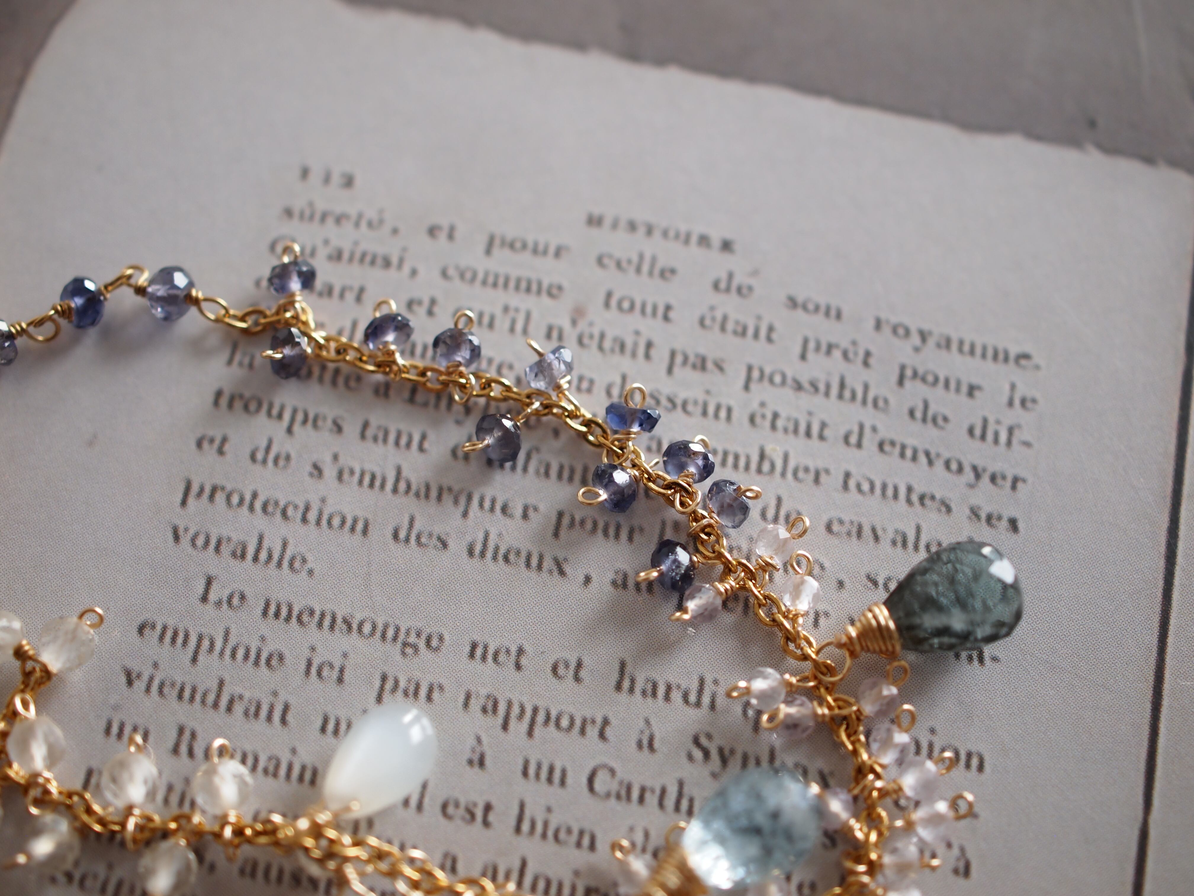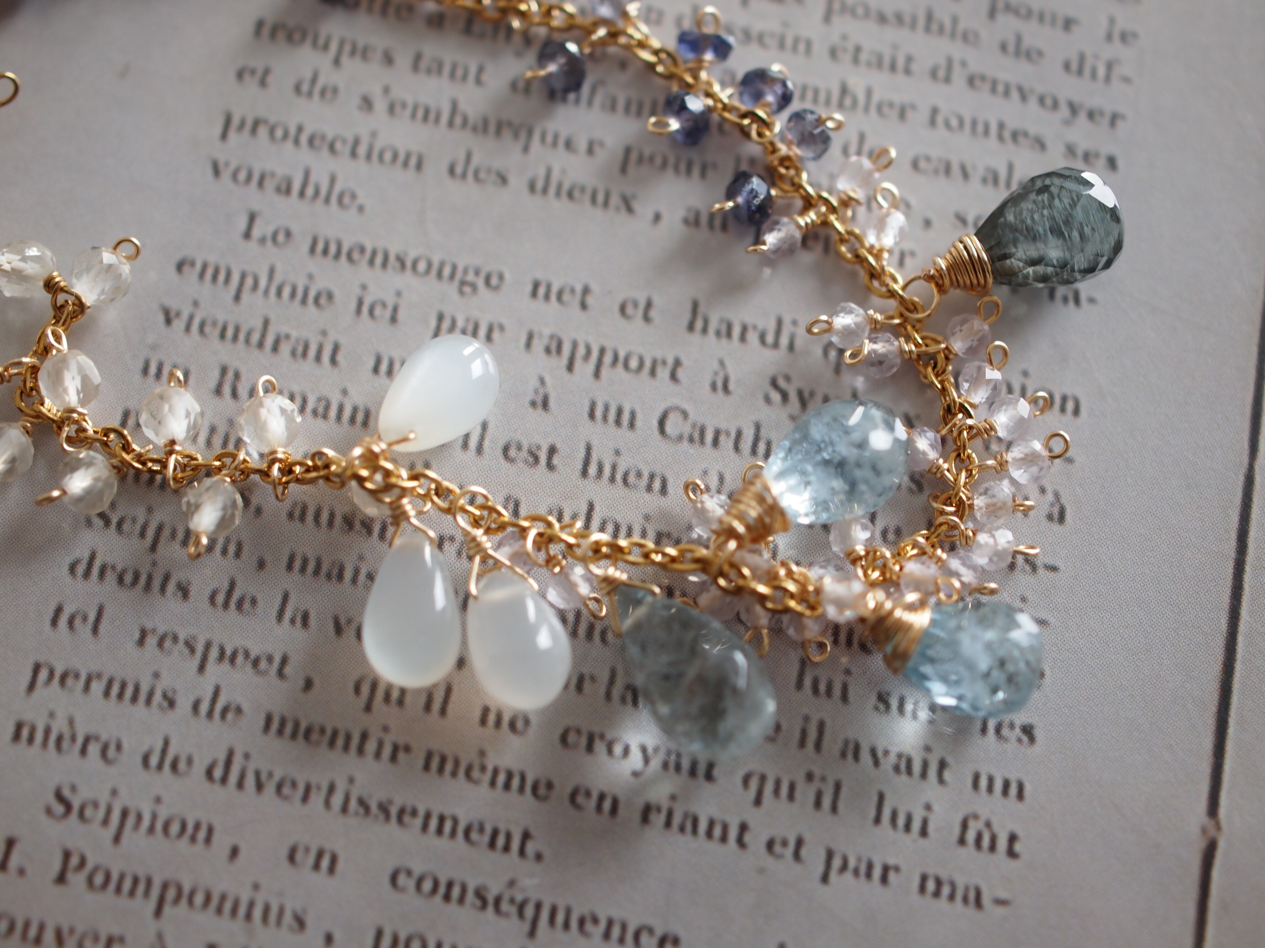 素材:モスアクアマリン ホワイトムーンストーン アイオライト レモンクォーツ