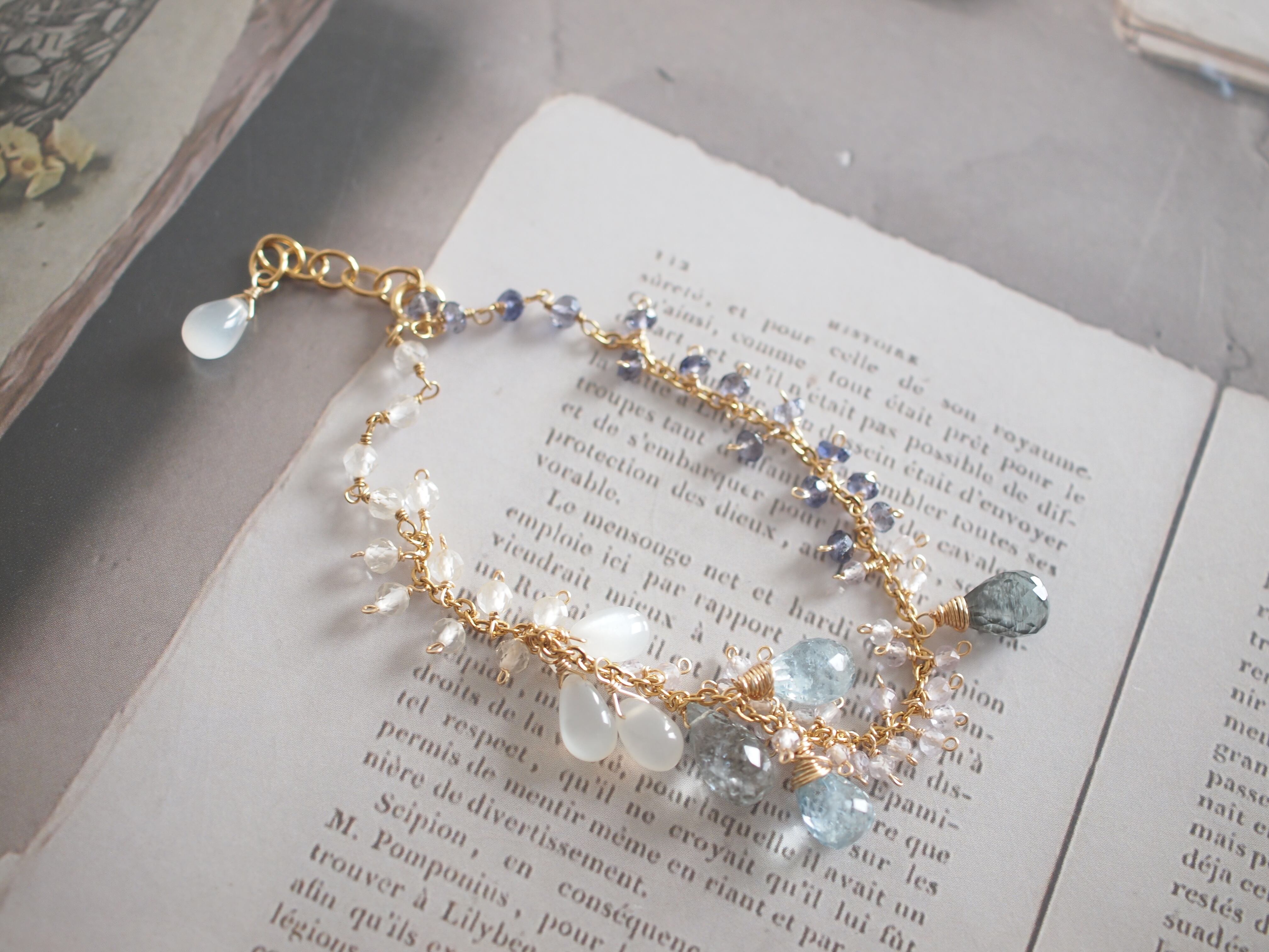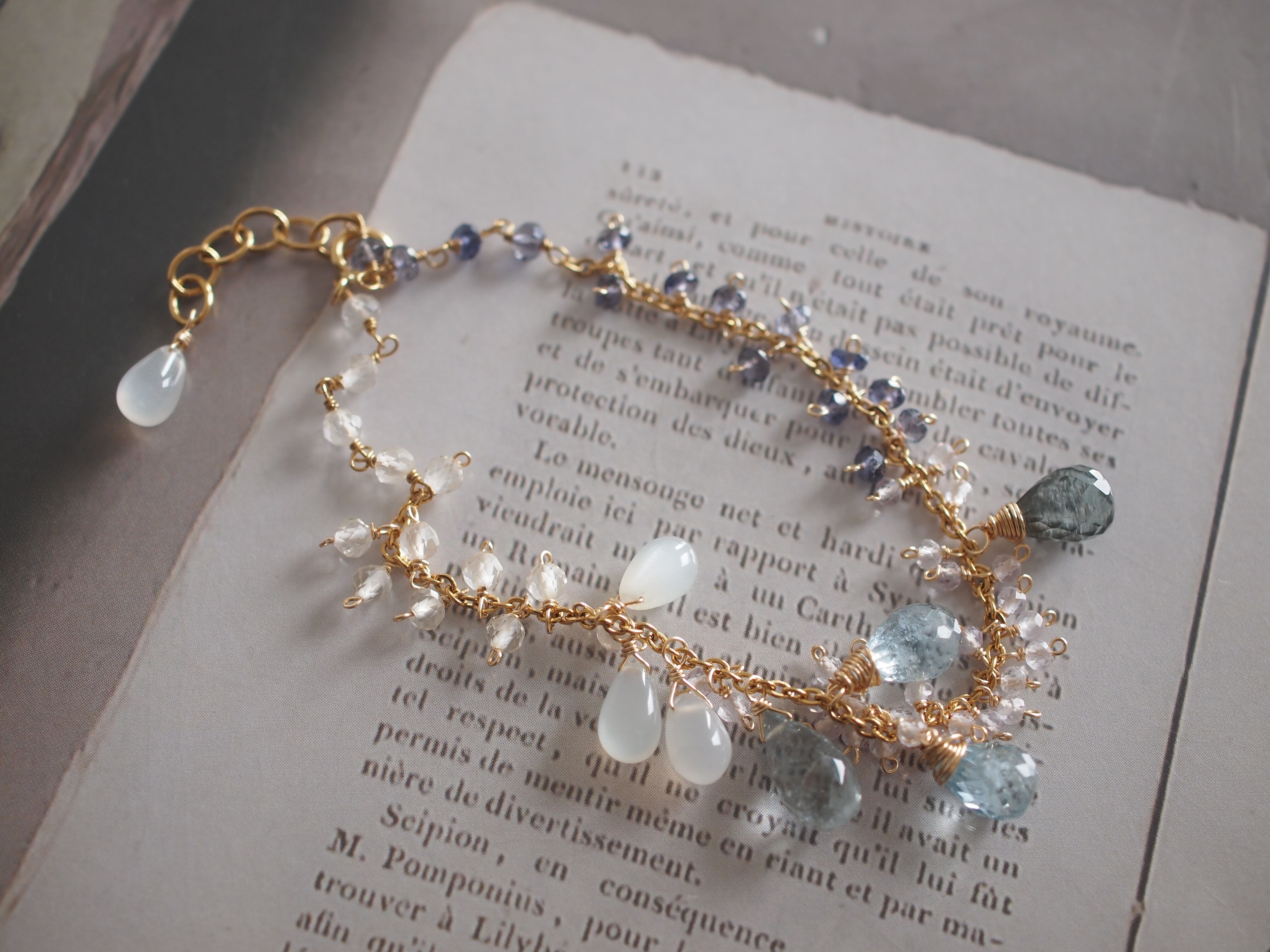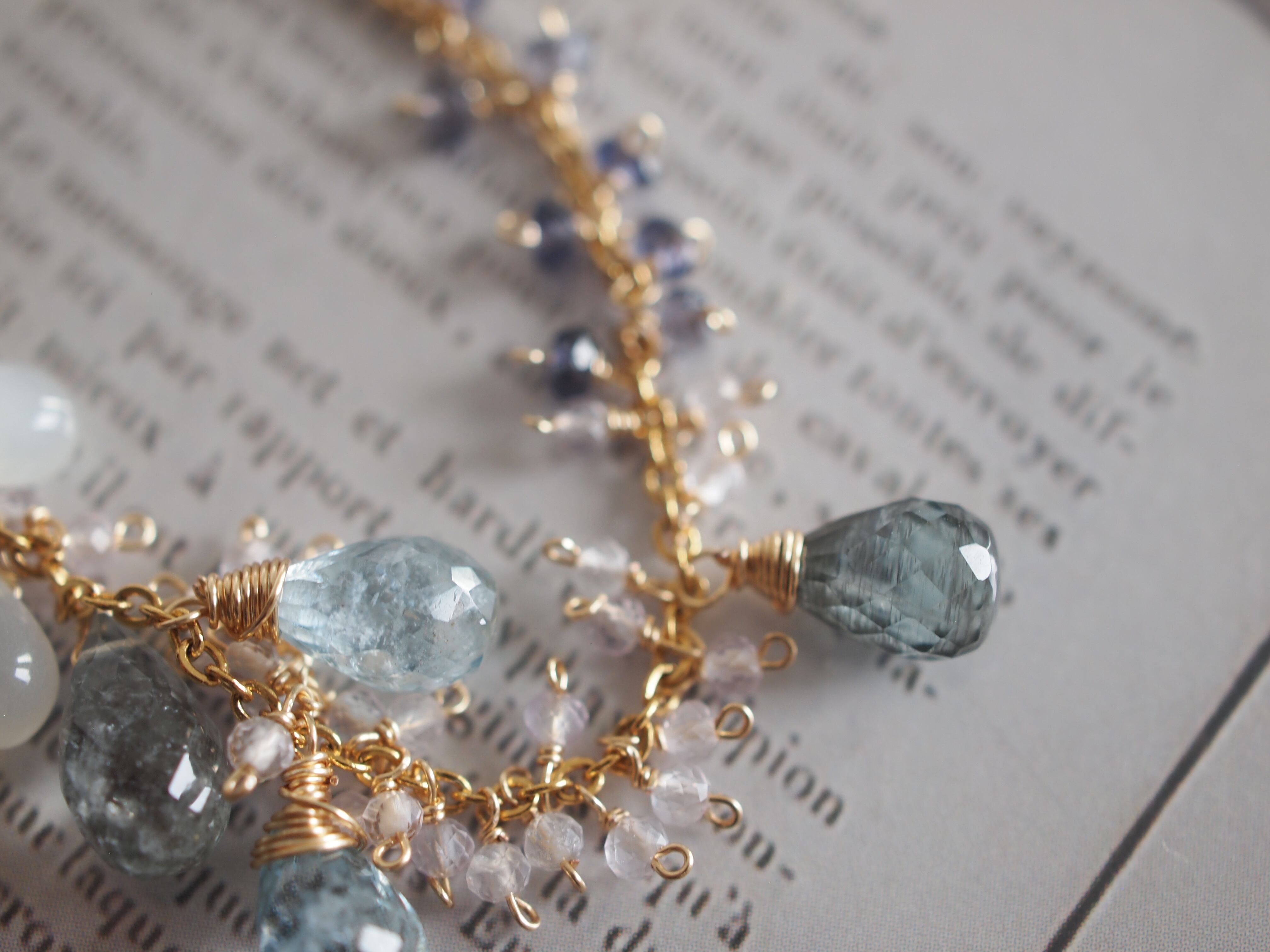 素材:モスアクアマリン ホワイトムーンストーン アイオライト レモンクォーツ