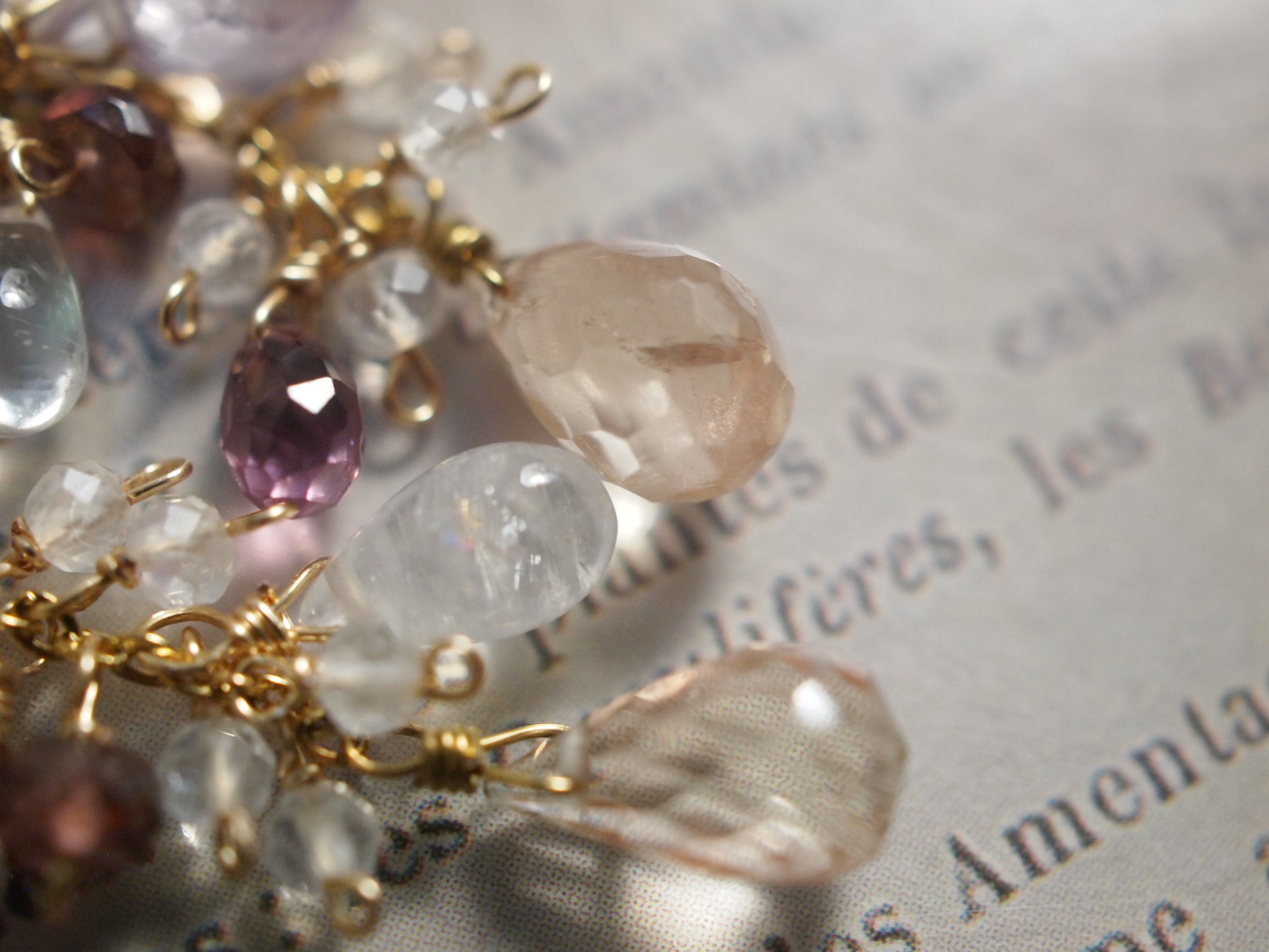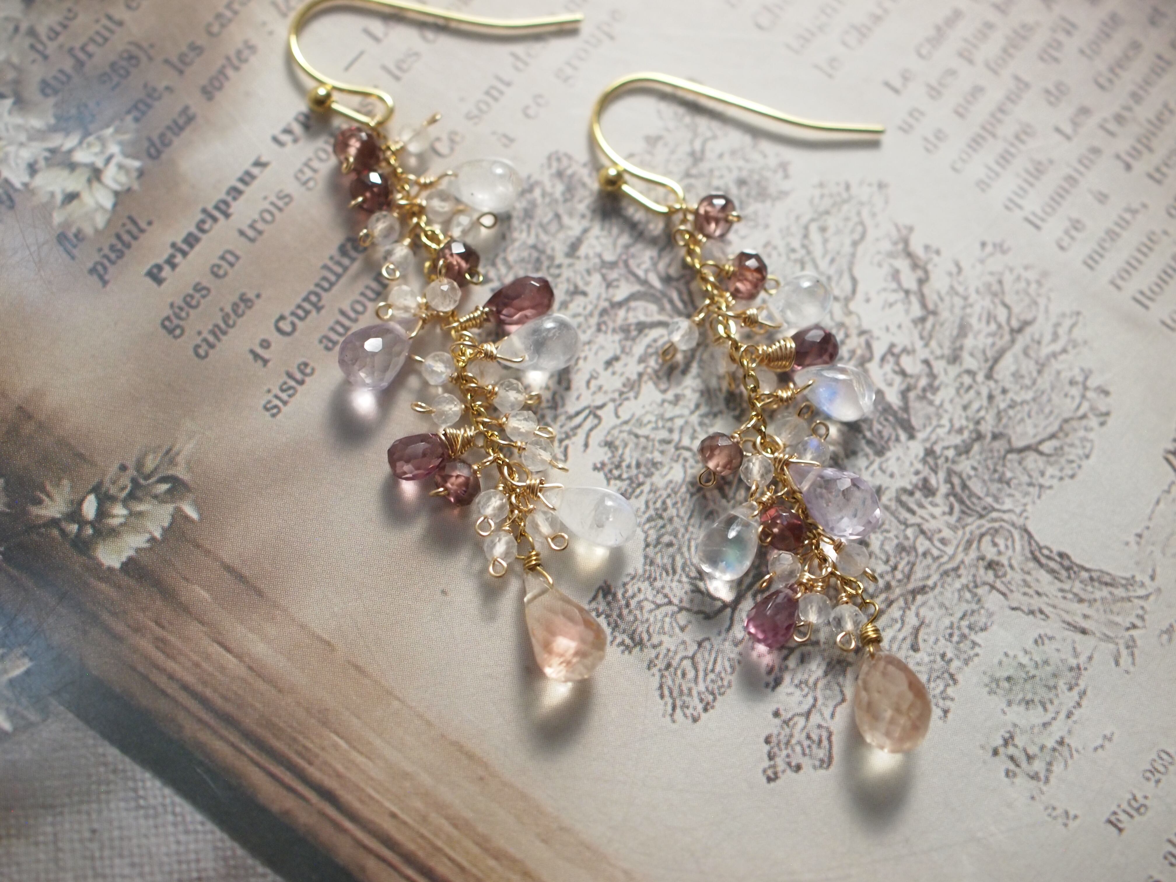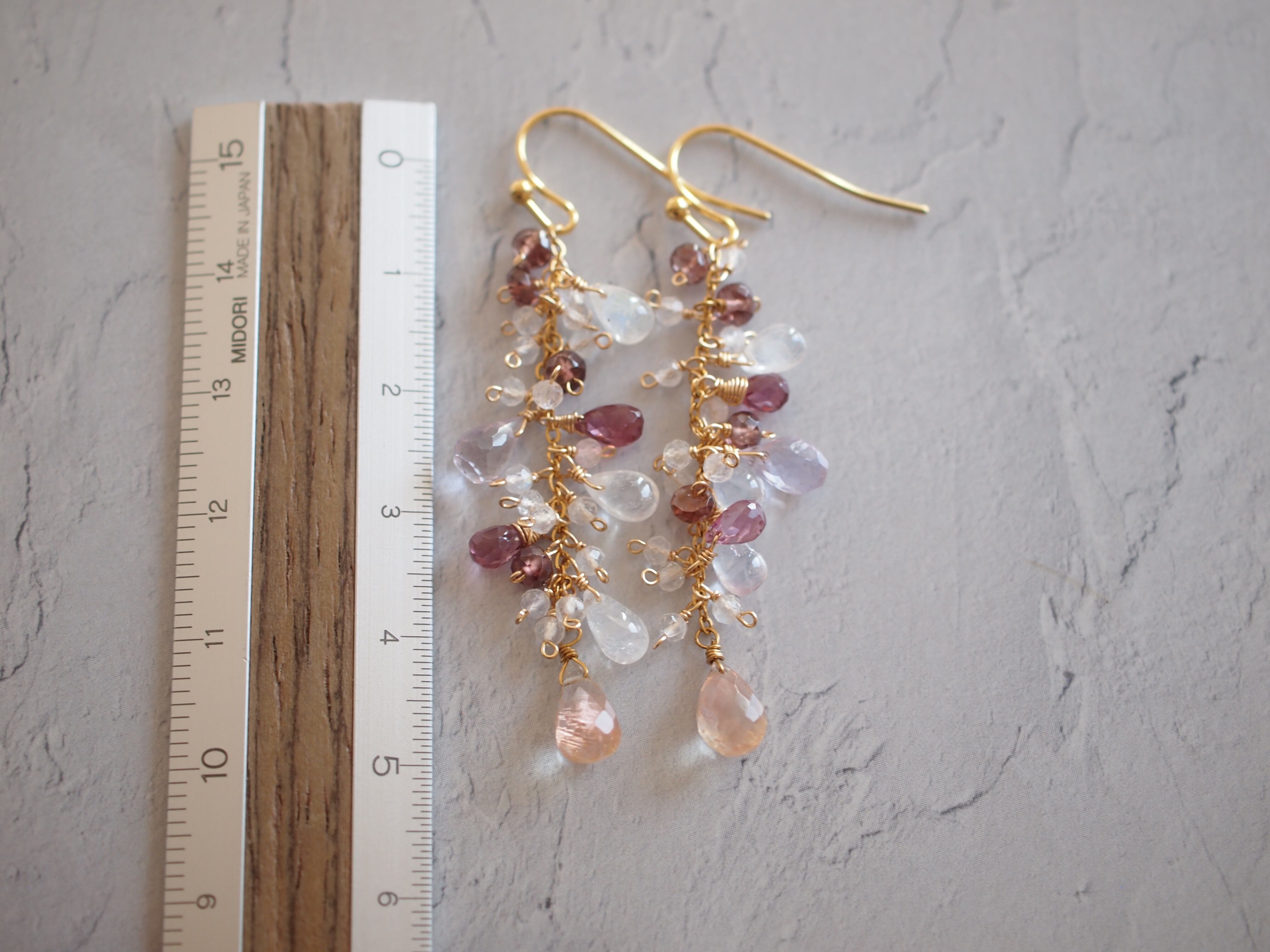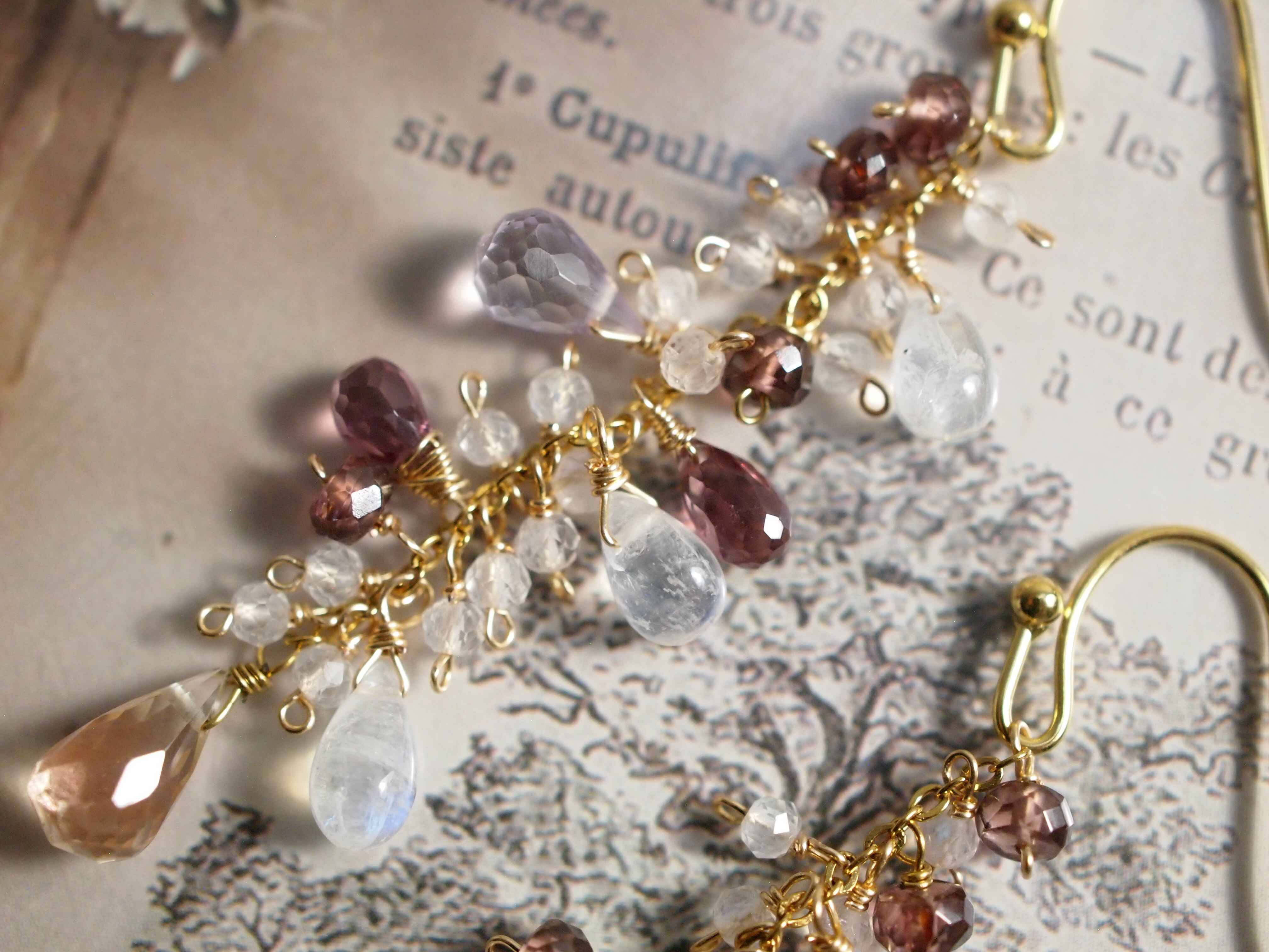 繊細なピンクアメジストのドロップカットが優しい彩りをプラスし、