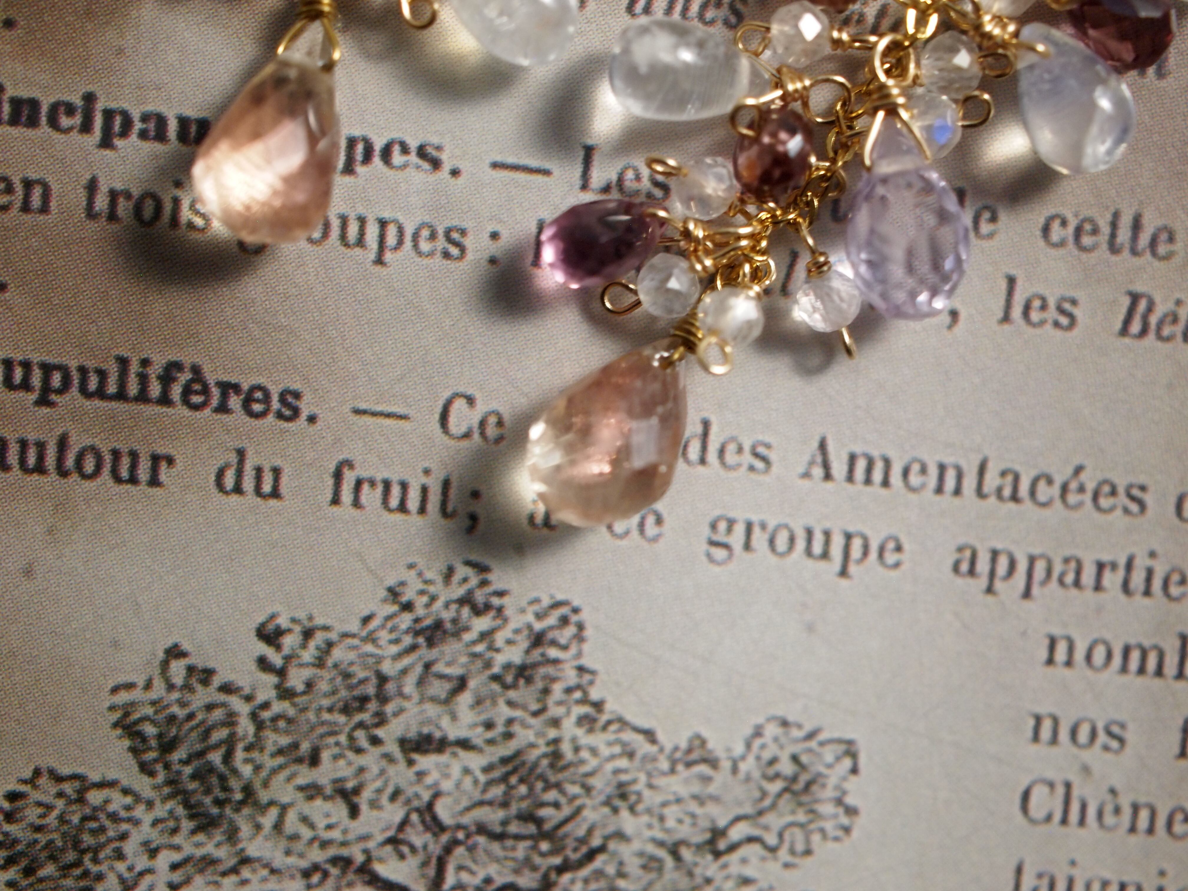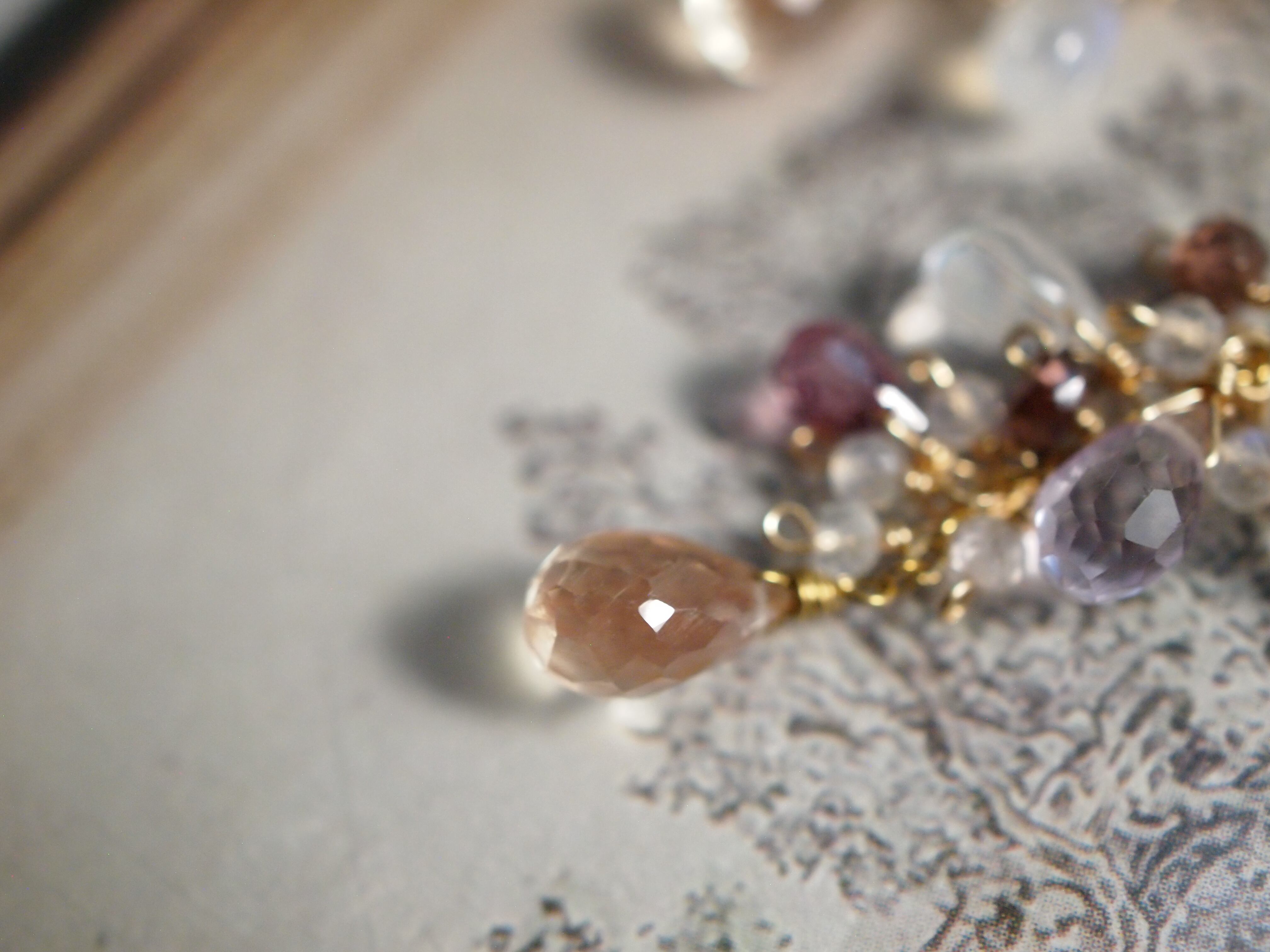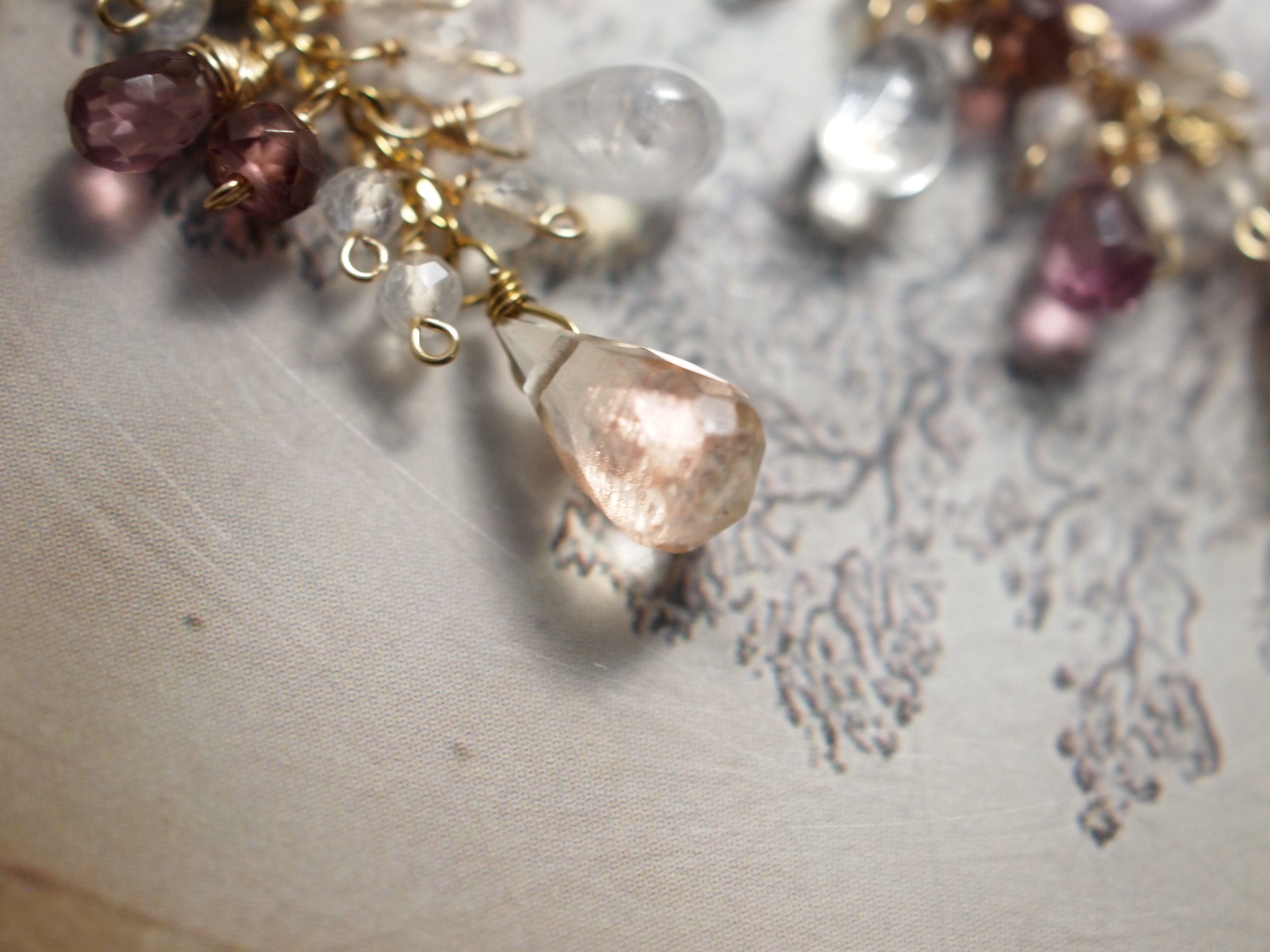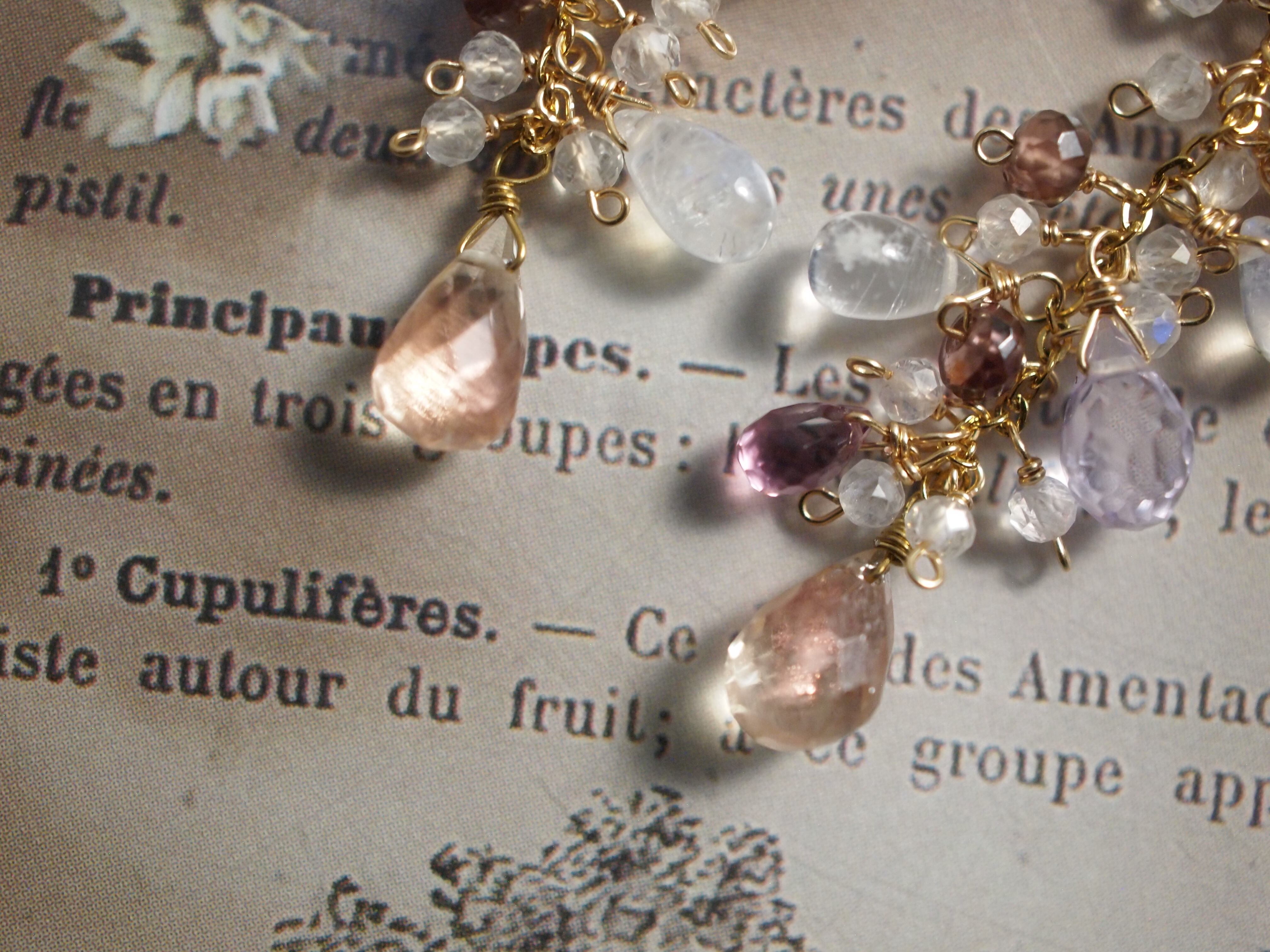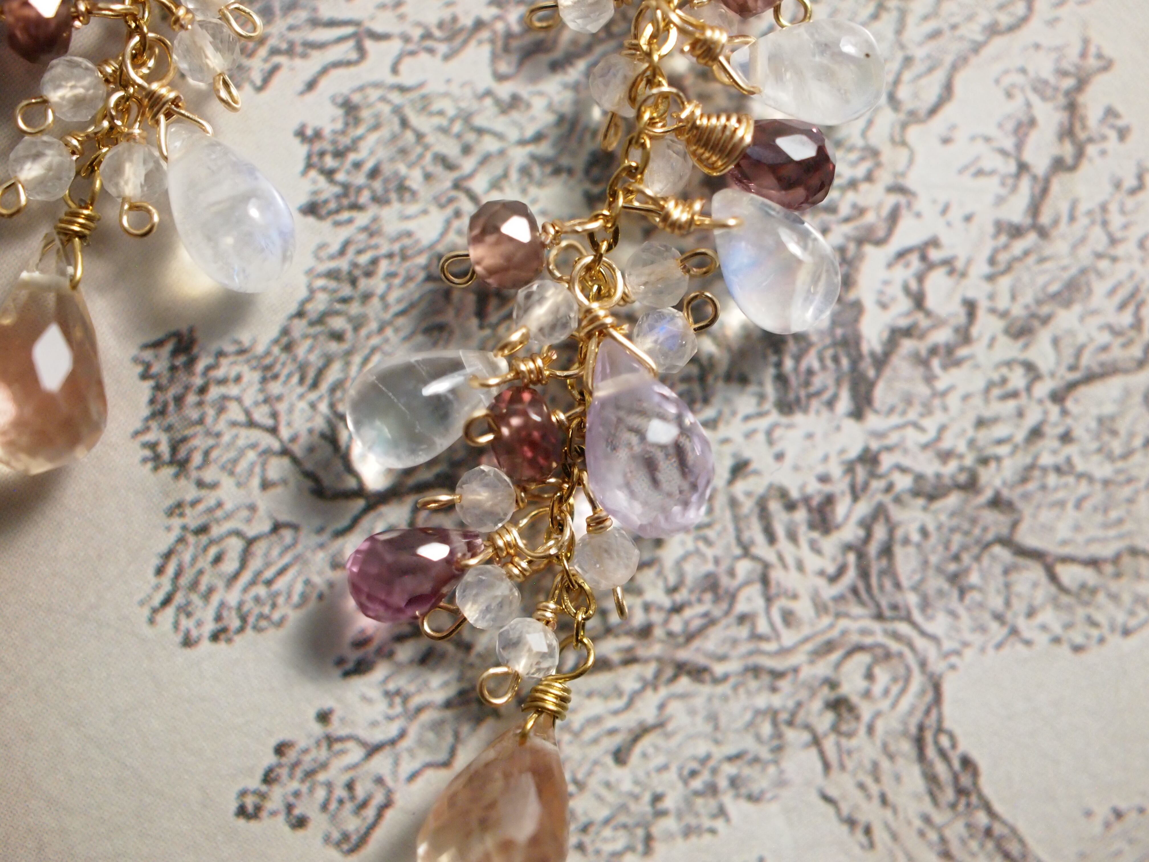 繊細なピンクアメジストのドロップカットが優しい彩りをプラスし、