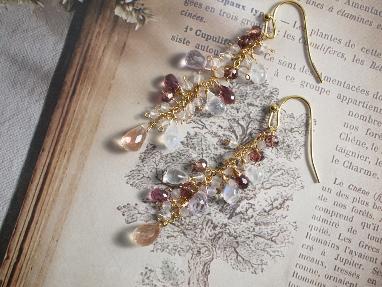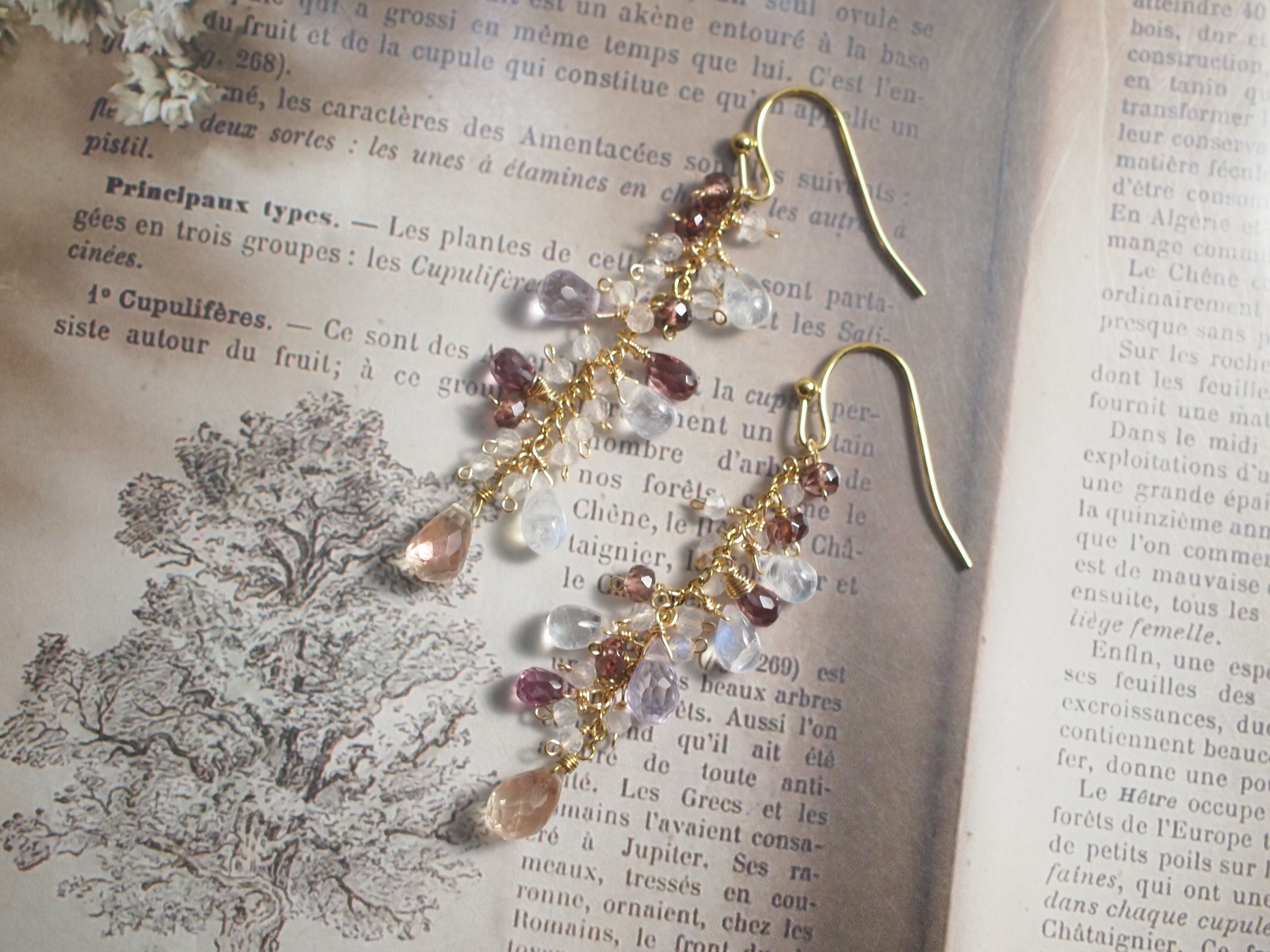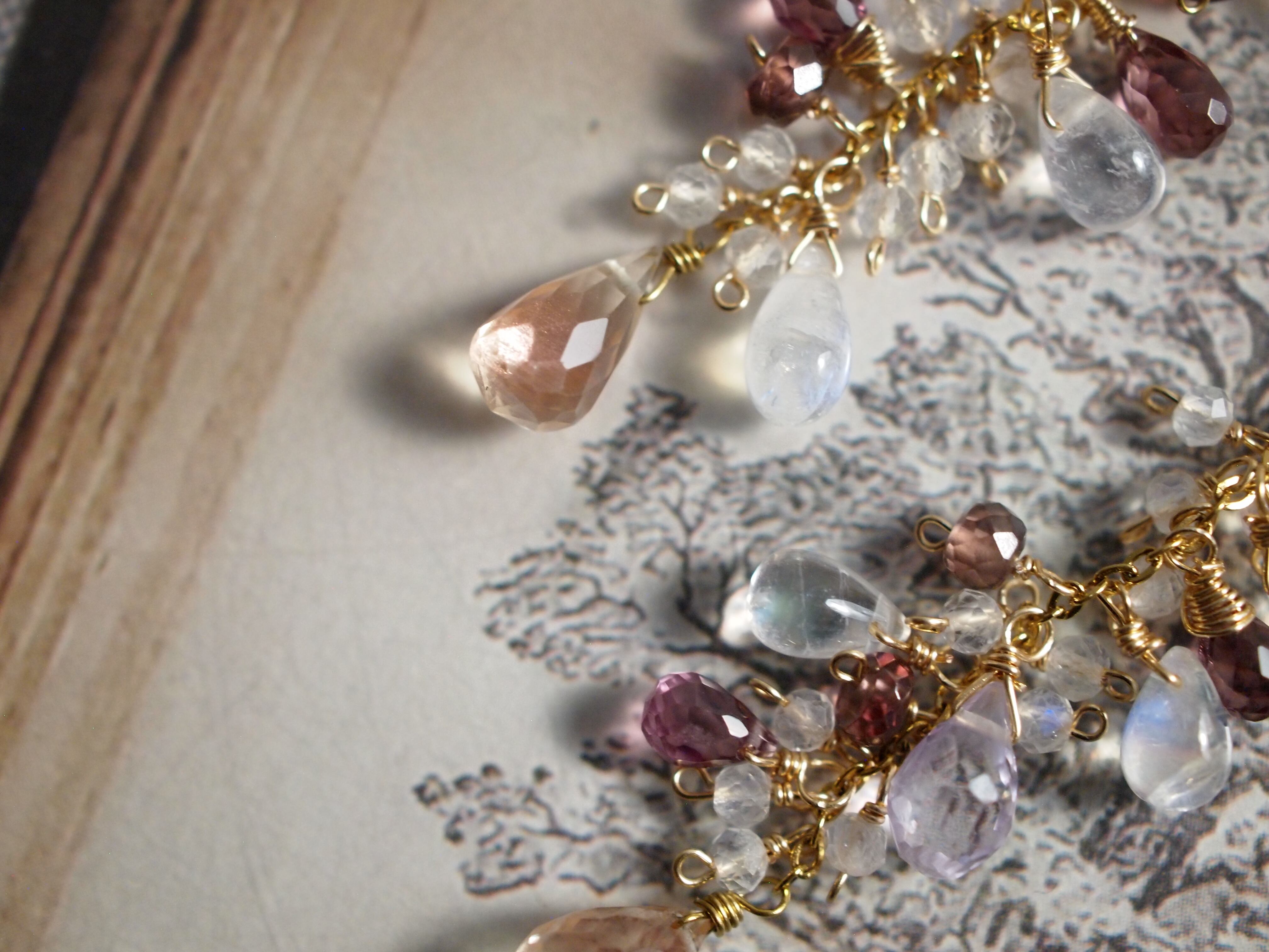 光をやさしく透かすドロップのレインボームーンストーンが、
