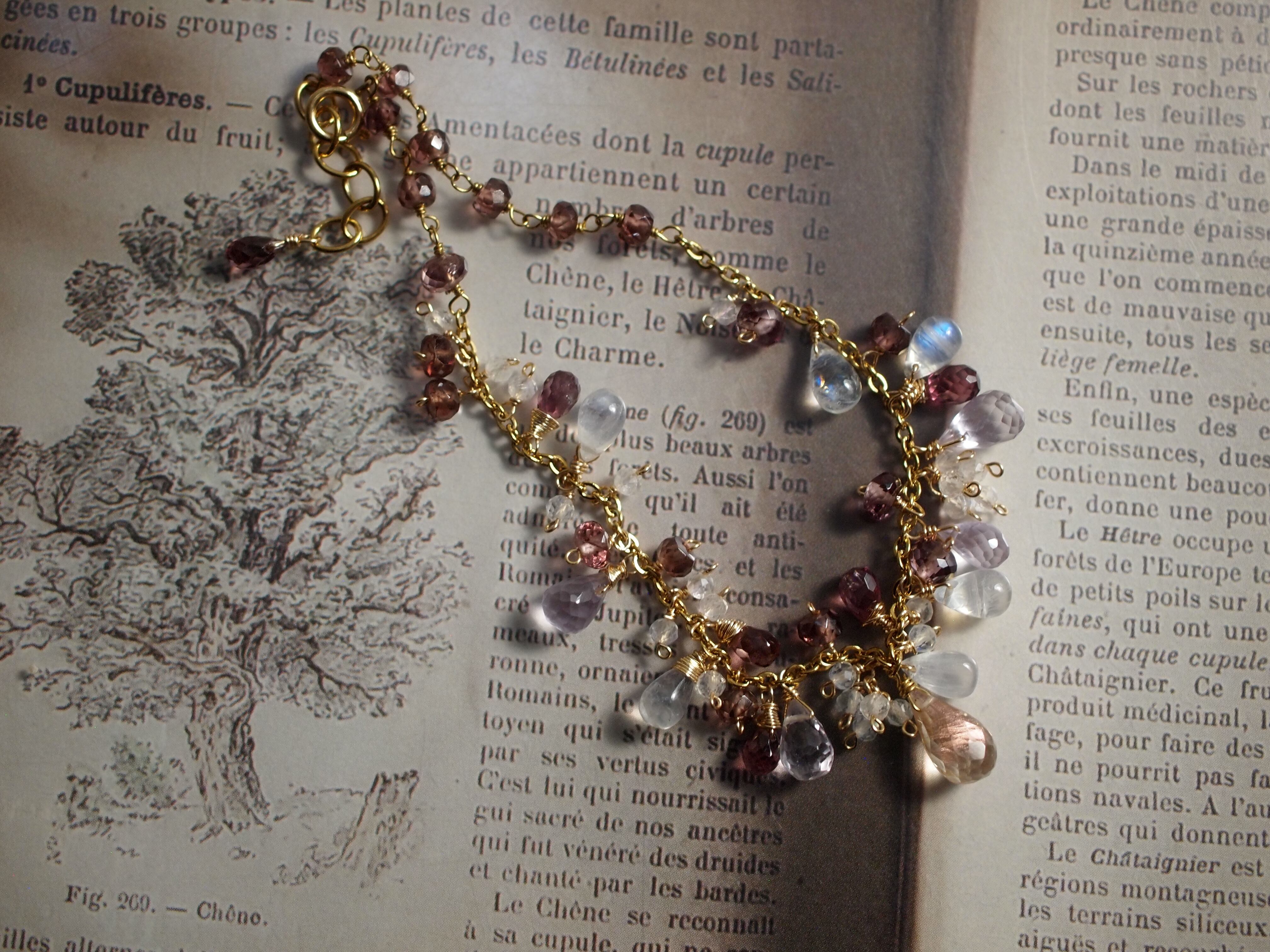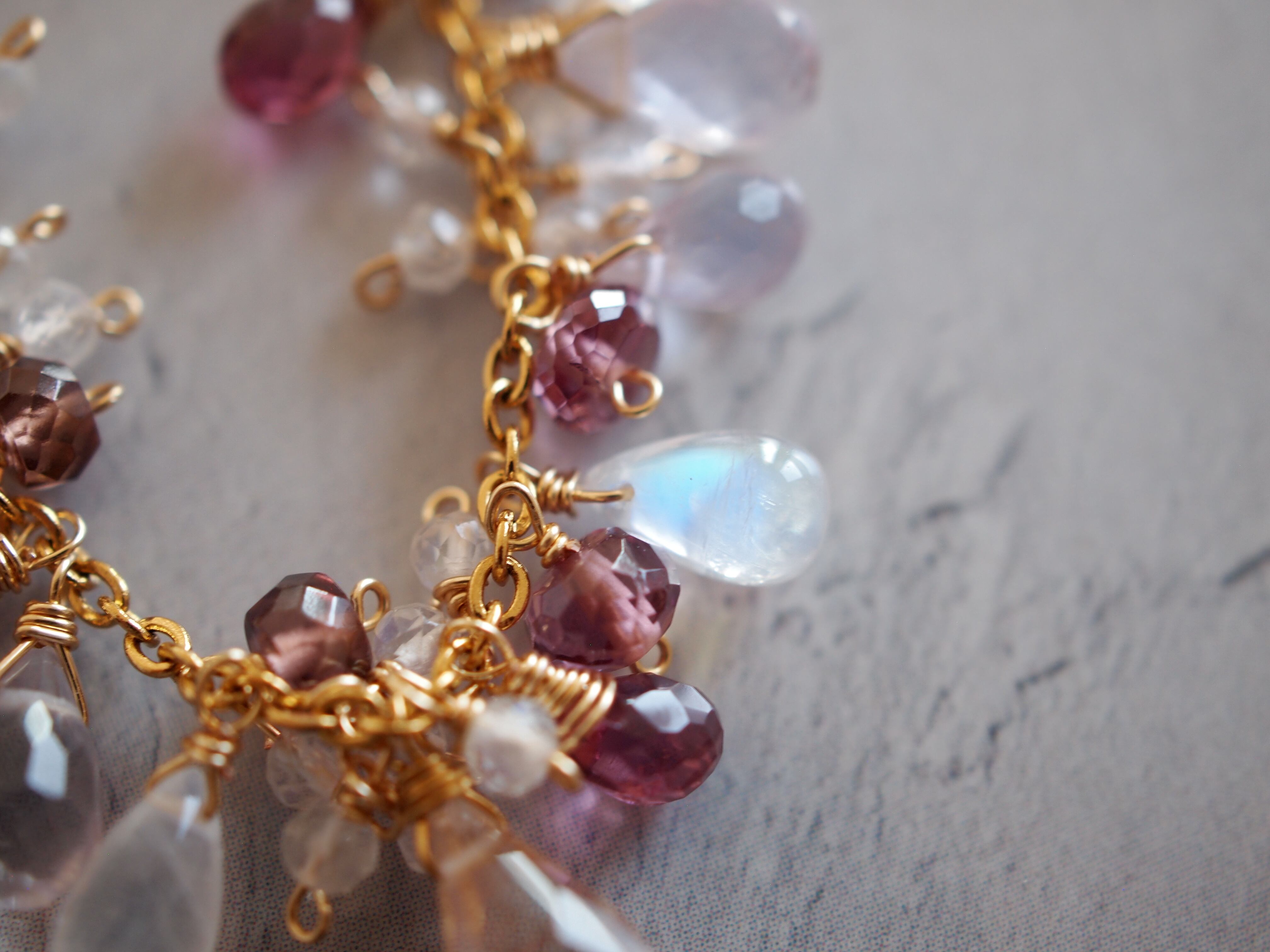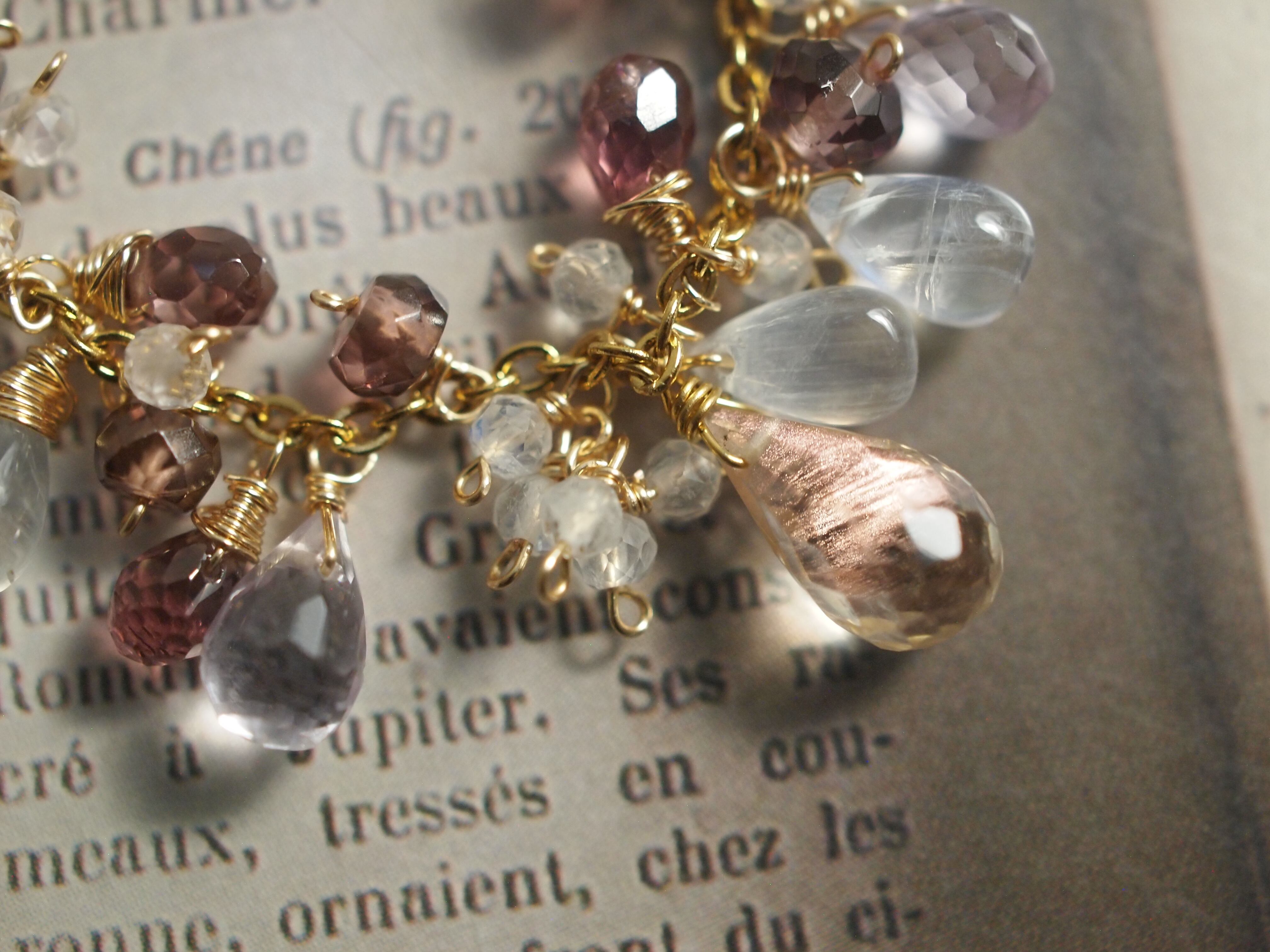 素材:オレゴンサンストーン マラヤガーネット レインボームーンストーン