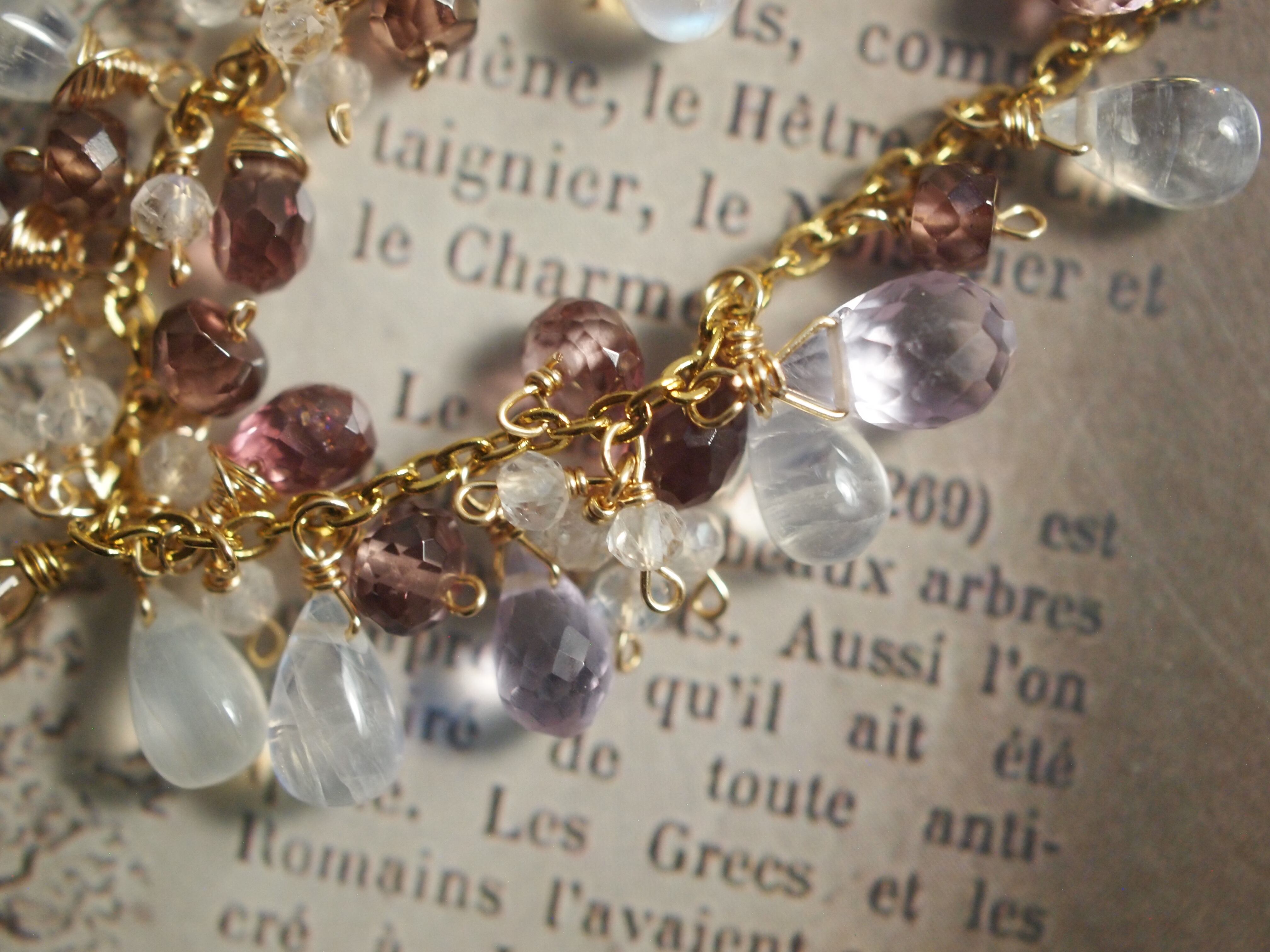 繊細なピンクアメジストのドロップカットが優しい彩りをプラスし、