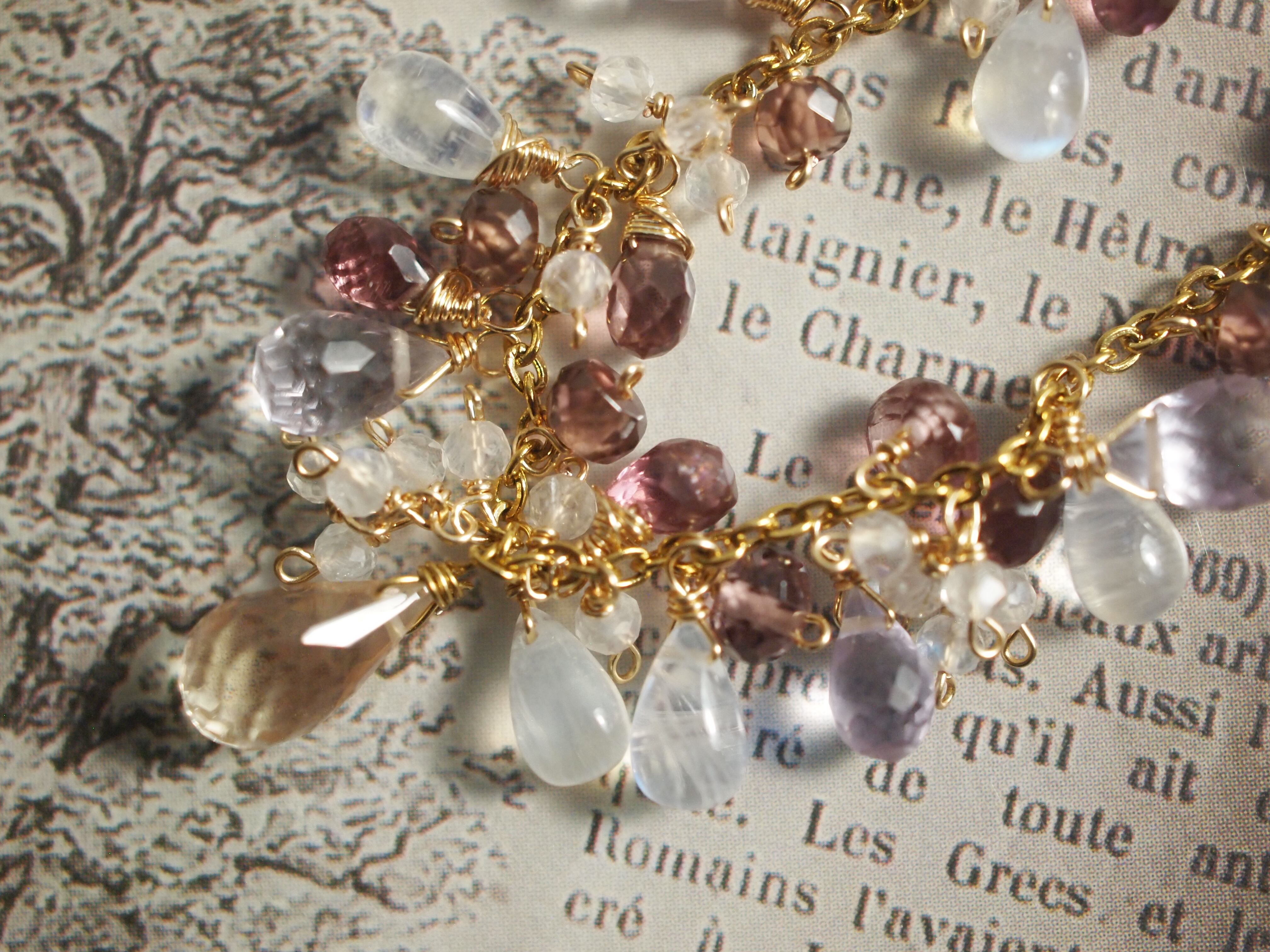 光をやさしく透かすドロップのレインボームーンストーンが、