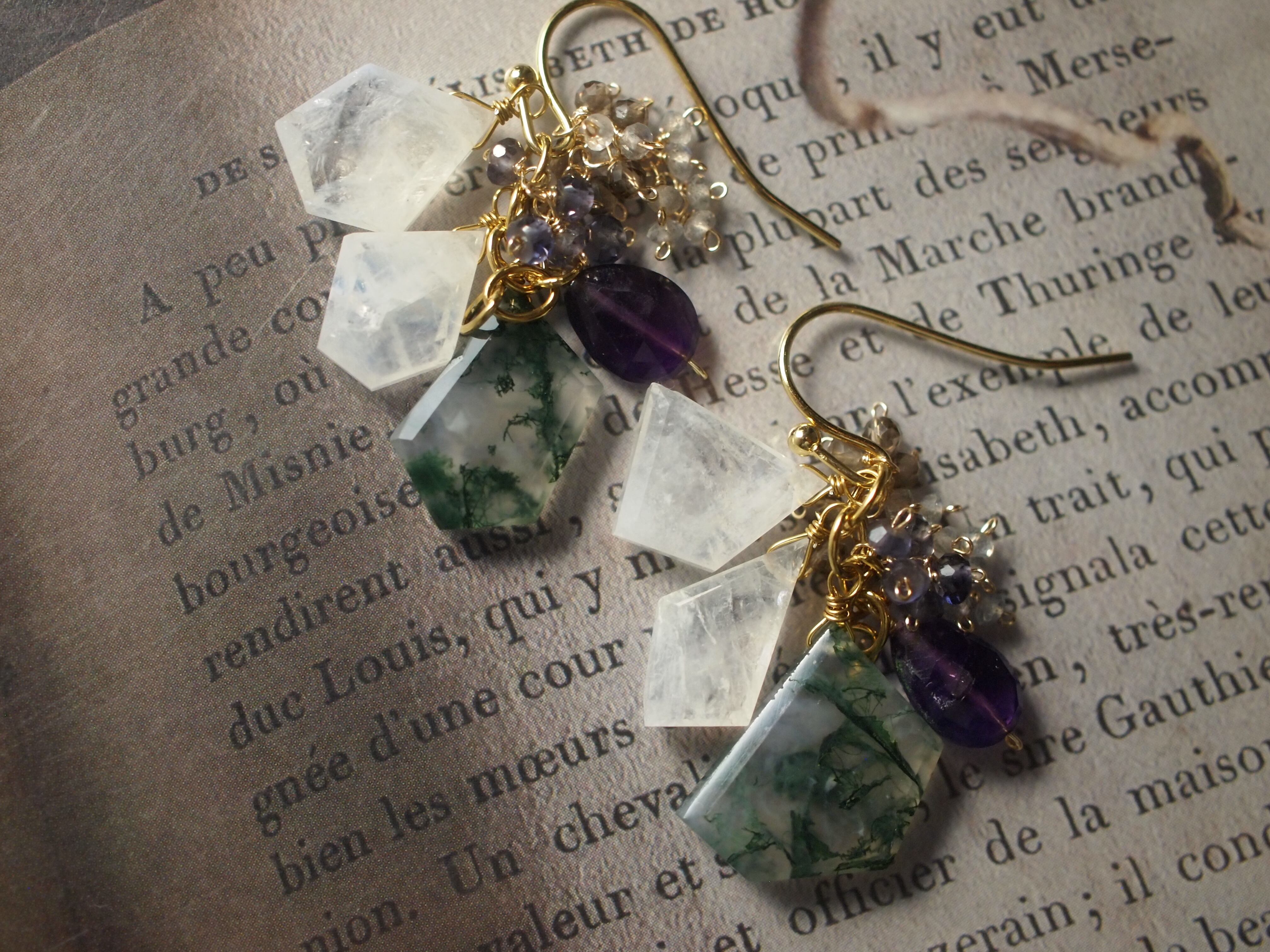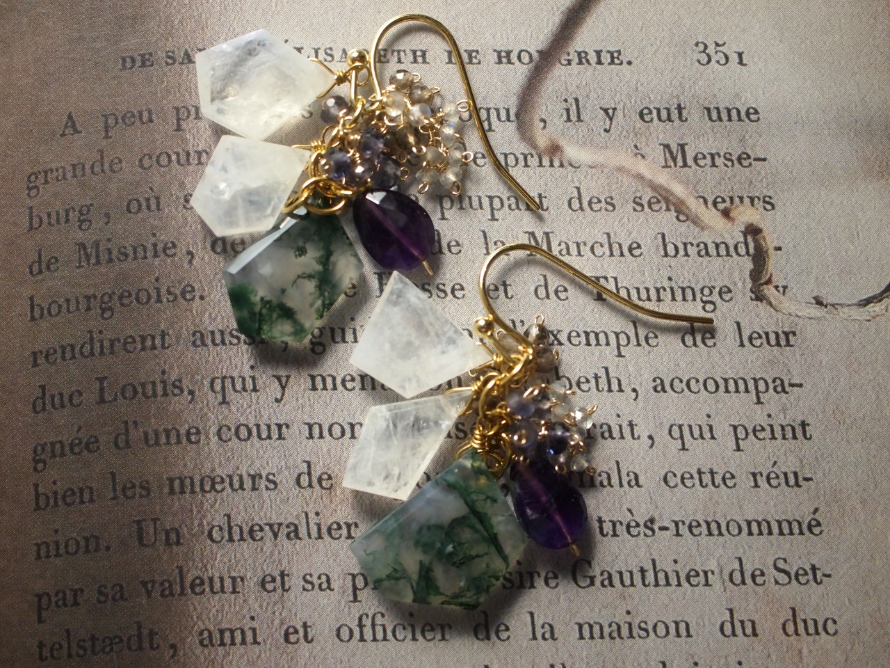 素材:レインボームーンストーン モスアゲート アメジスト アイオライト