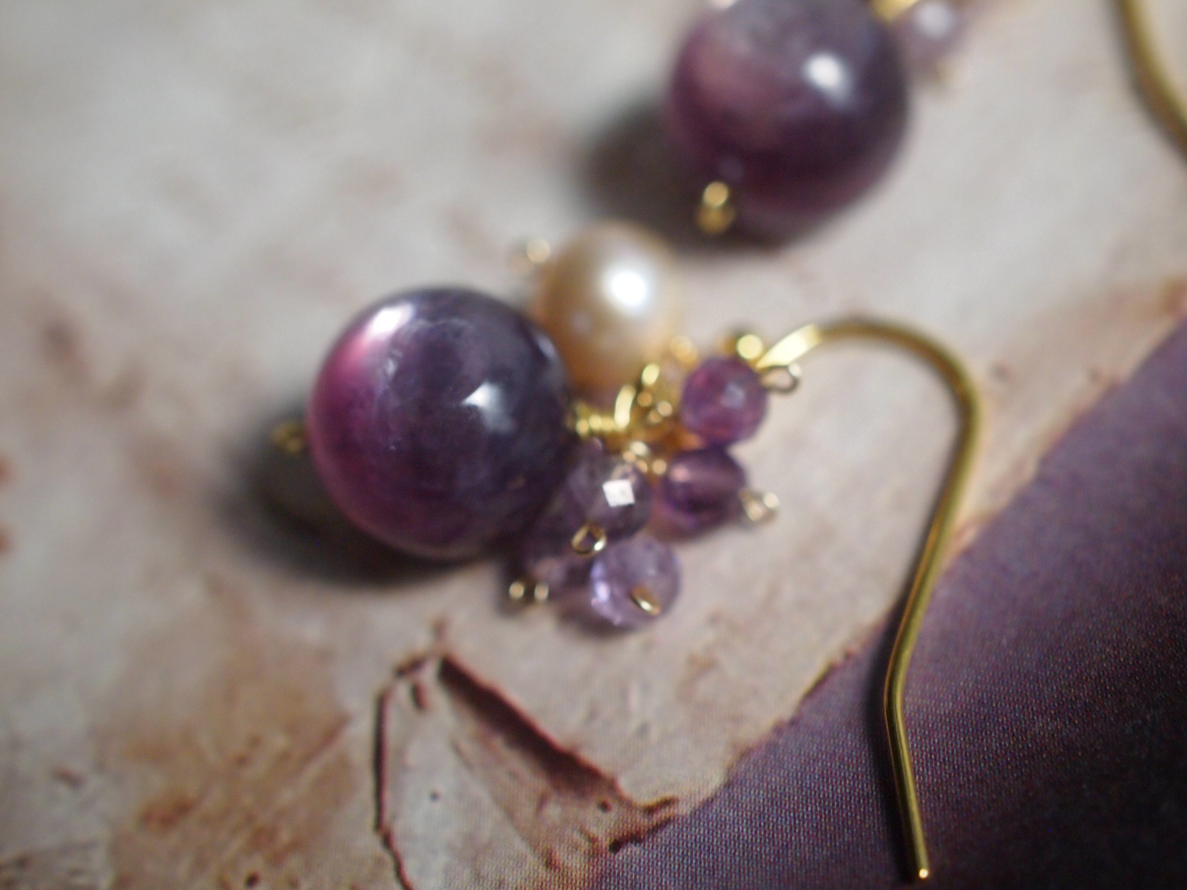 小粒のアメジストとピンクアメジストを繋いだピアスです。