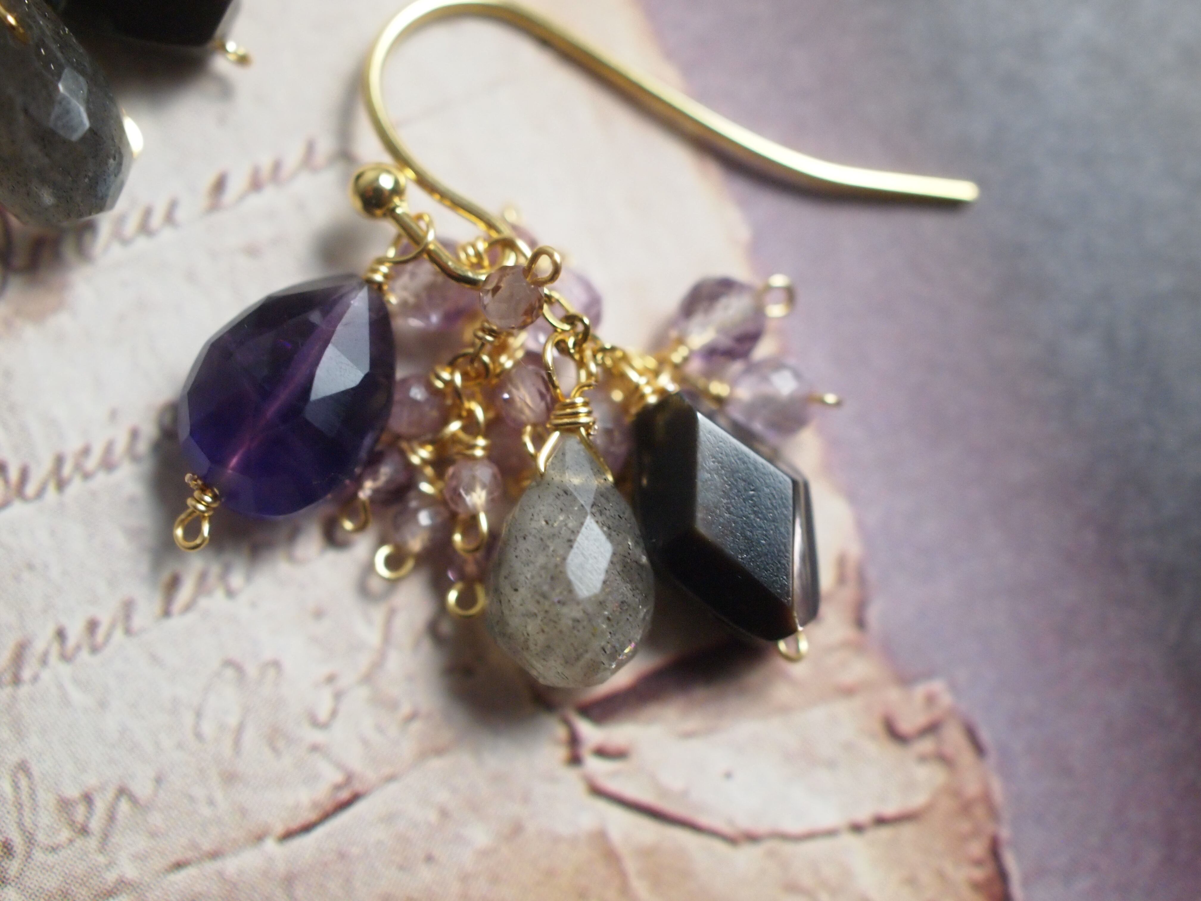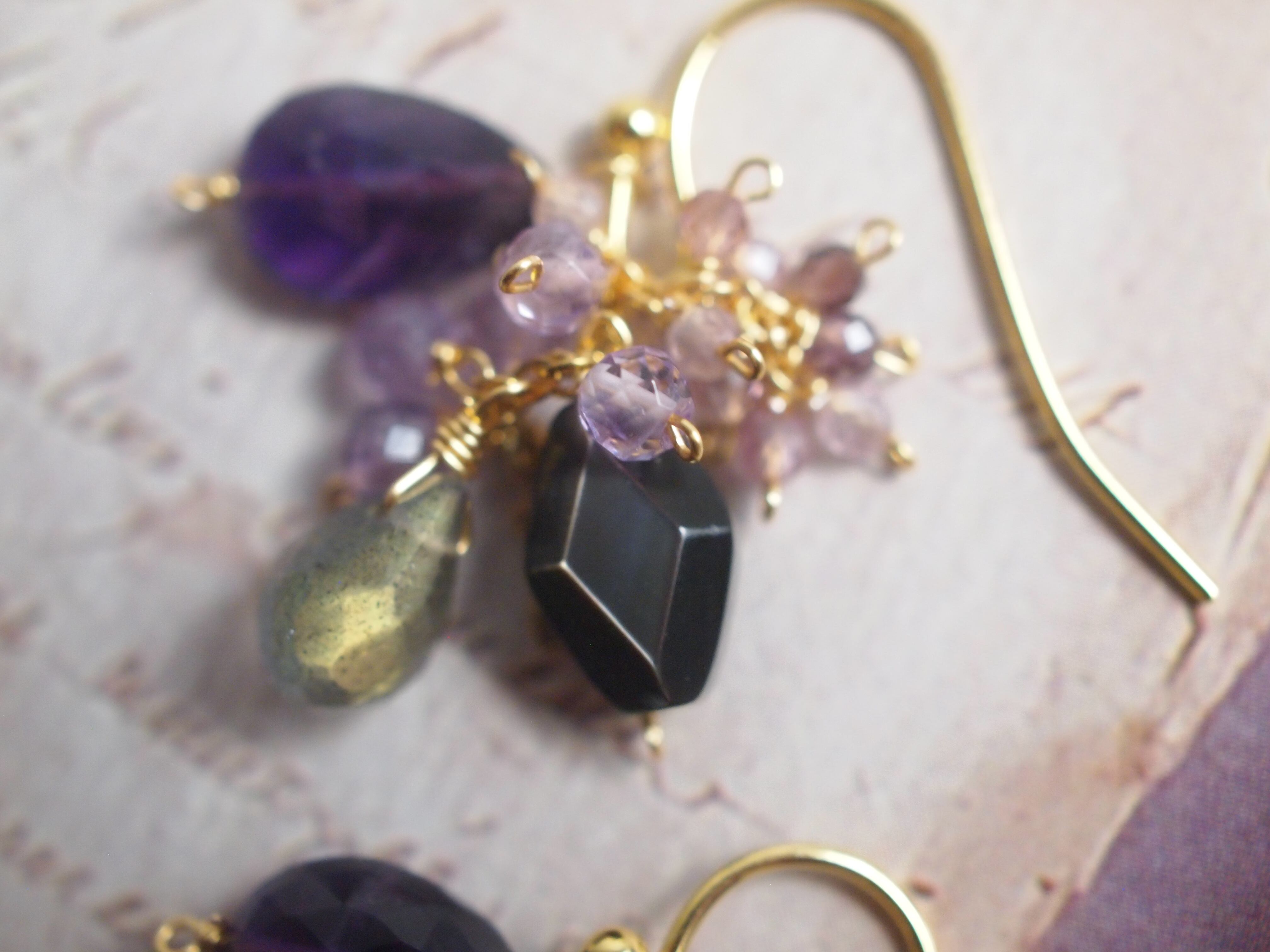 素材:アメジスト ラブラドライト 黒蝶貝 ピンクアメジスト スピネル