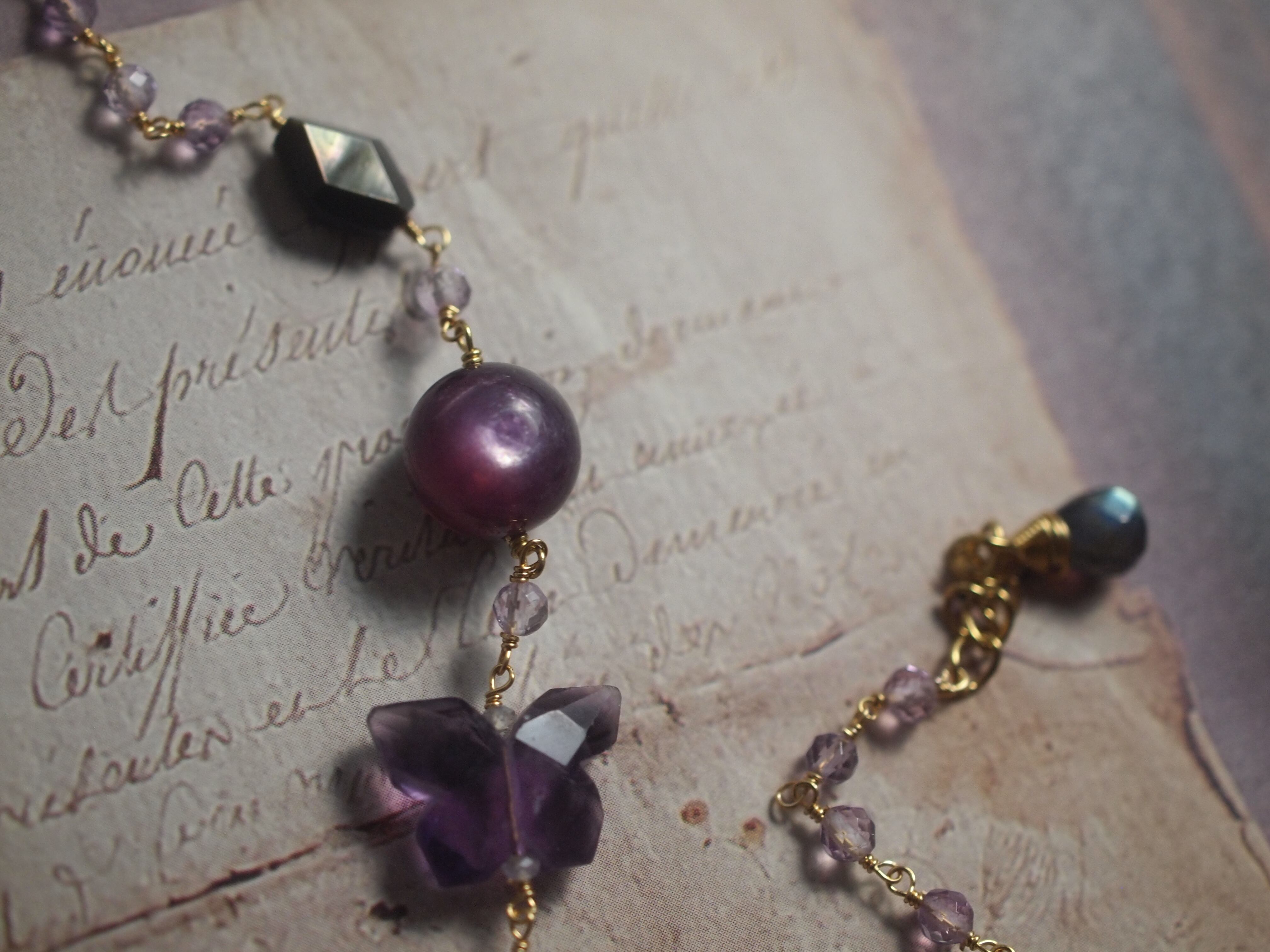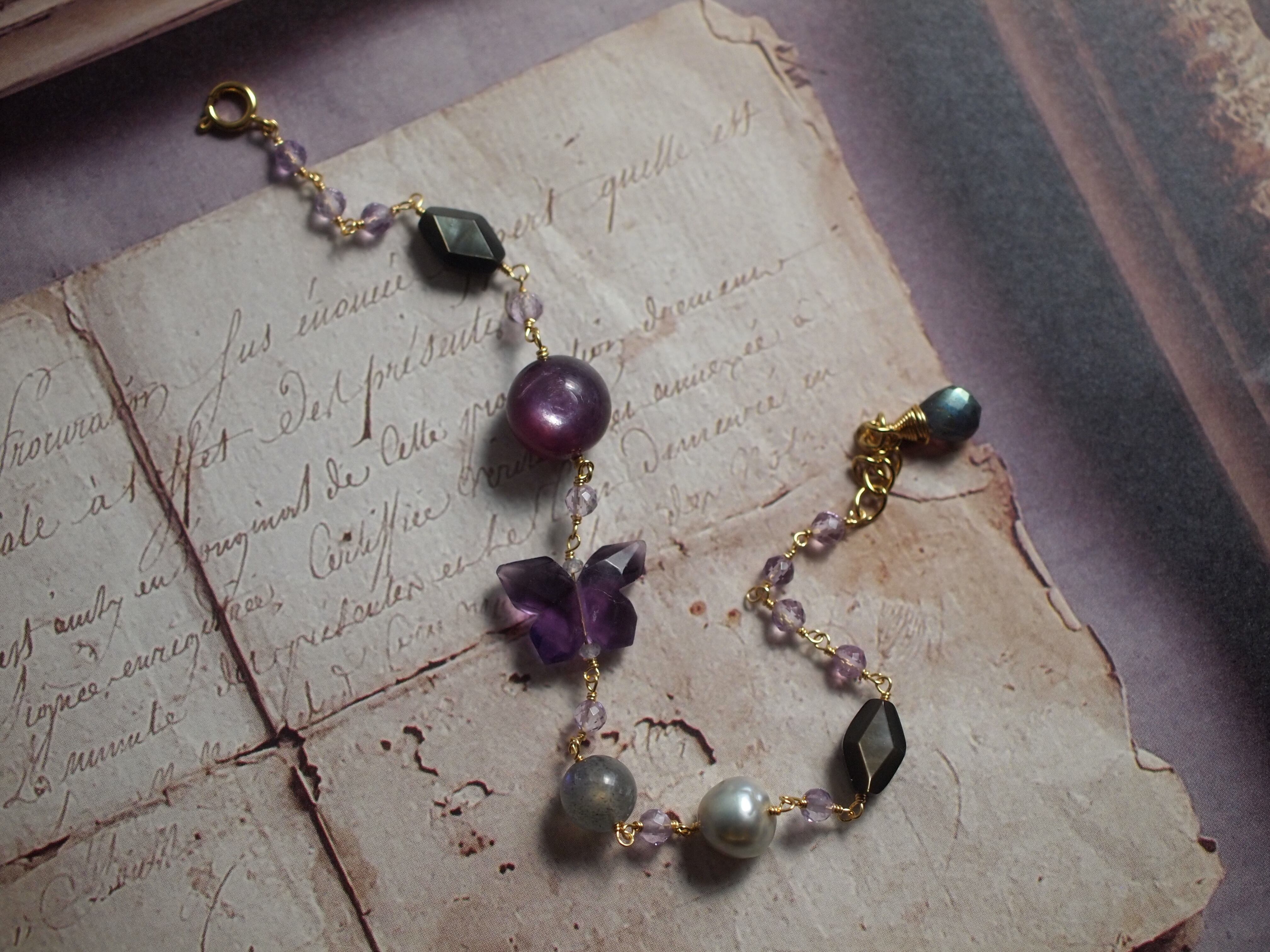 素材:レピドライト フローライト ラブラドライト 黒蝶貝