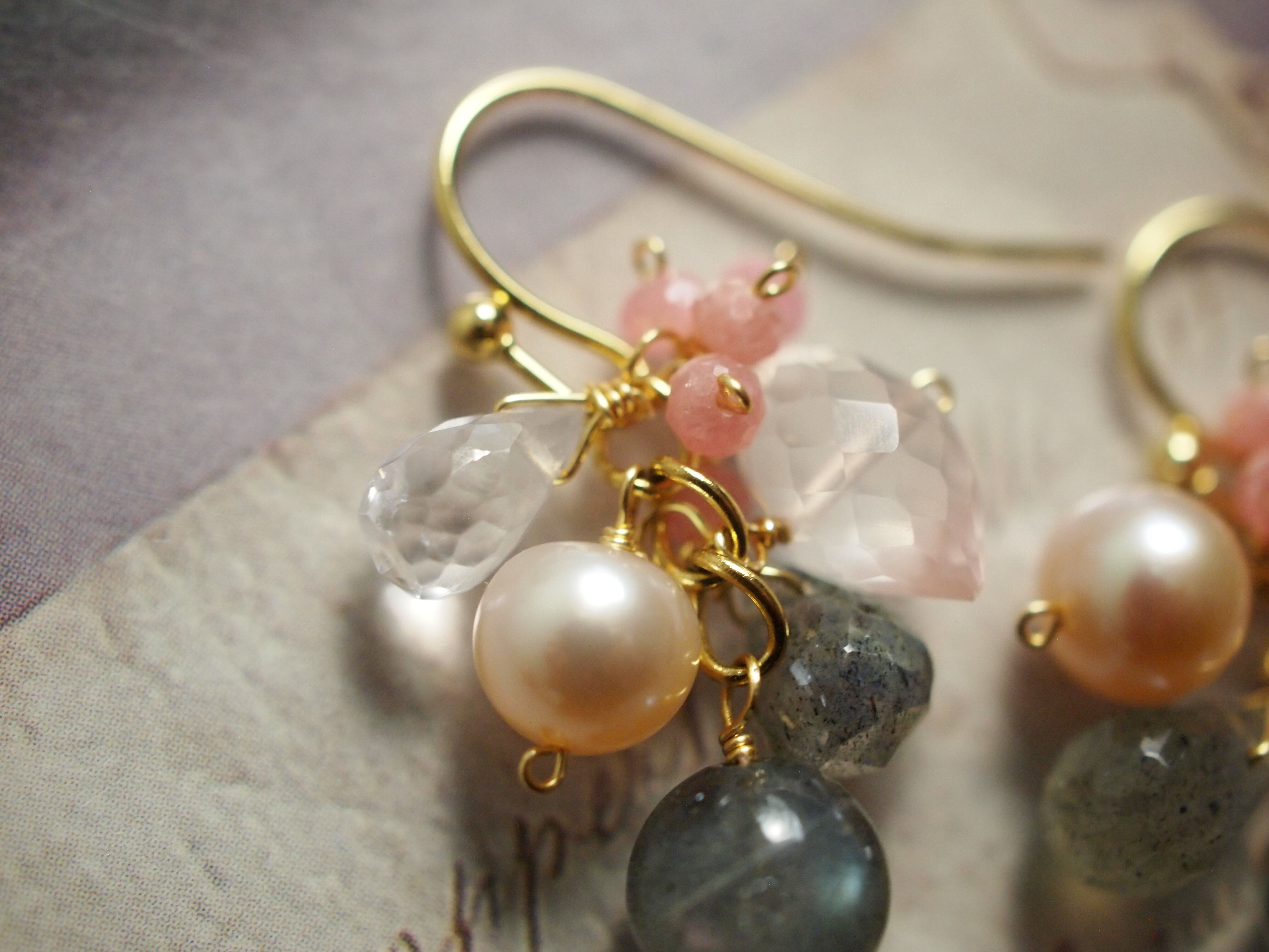 そしてインカローズを重ねたピアスです。