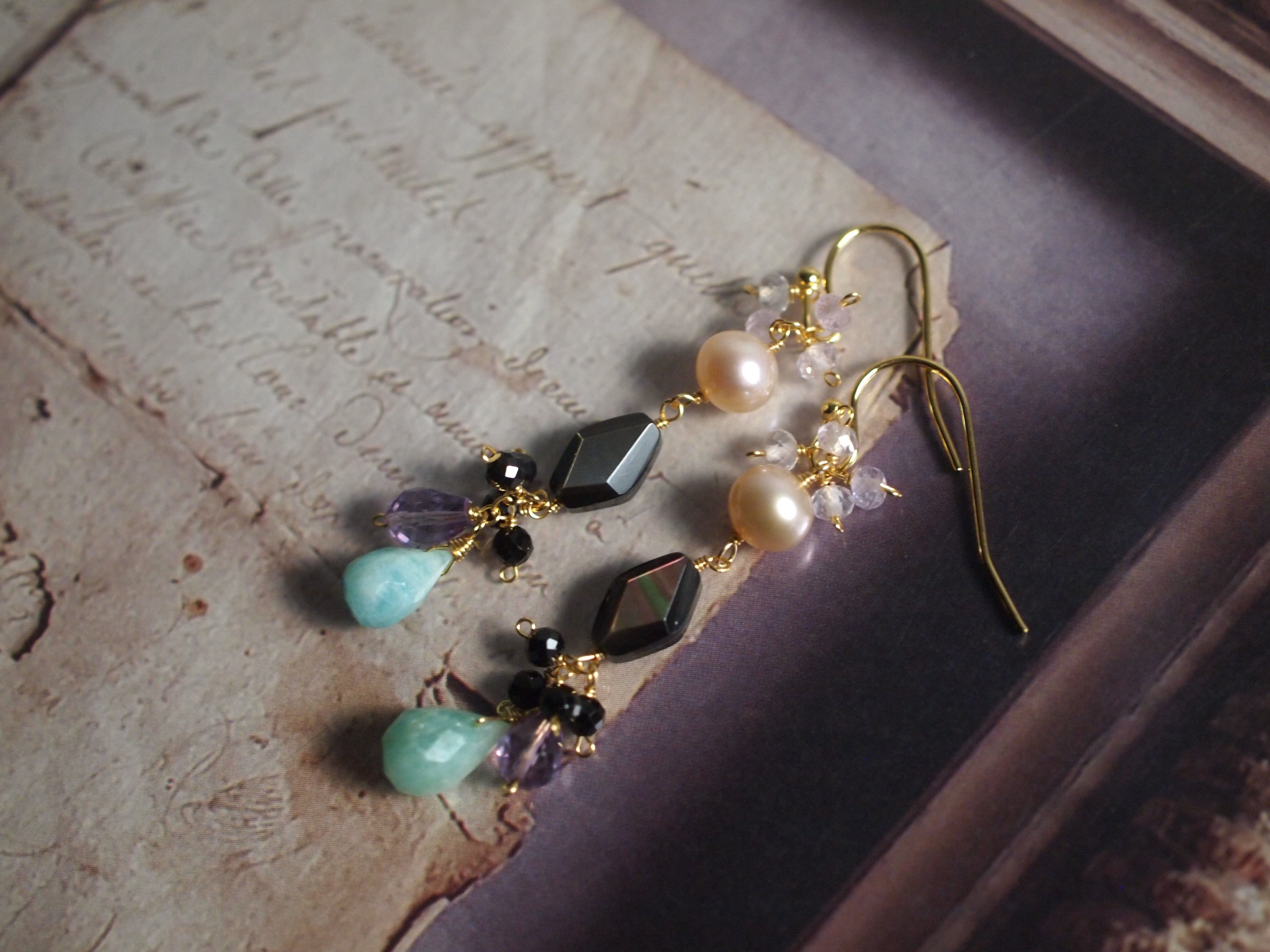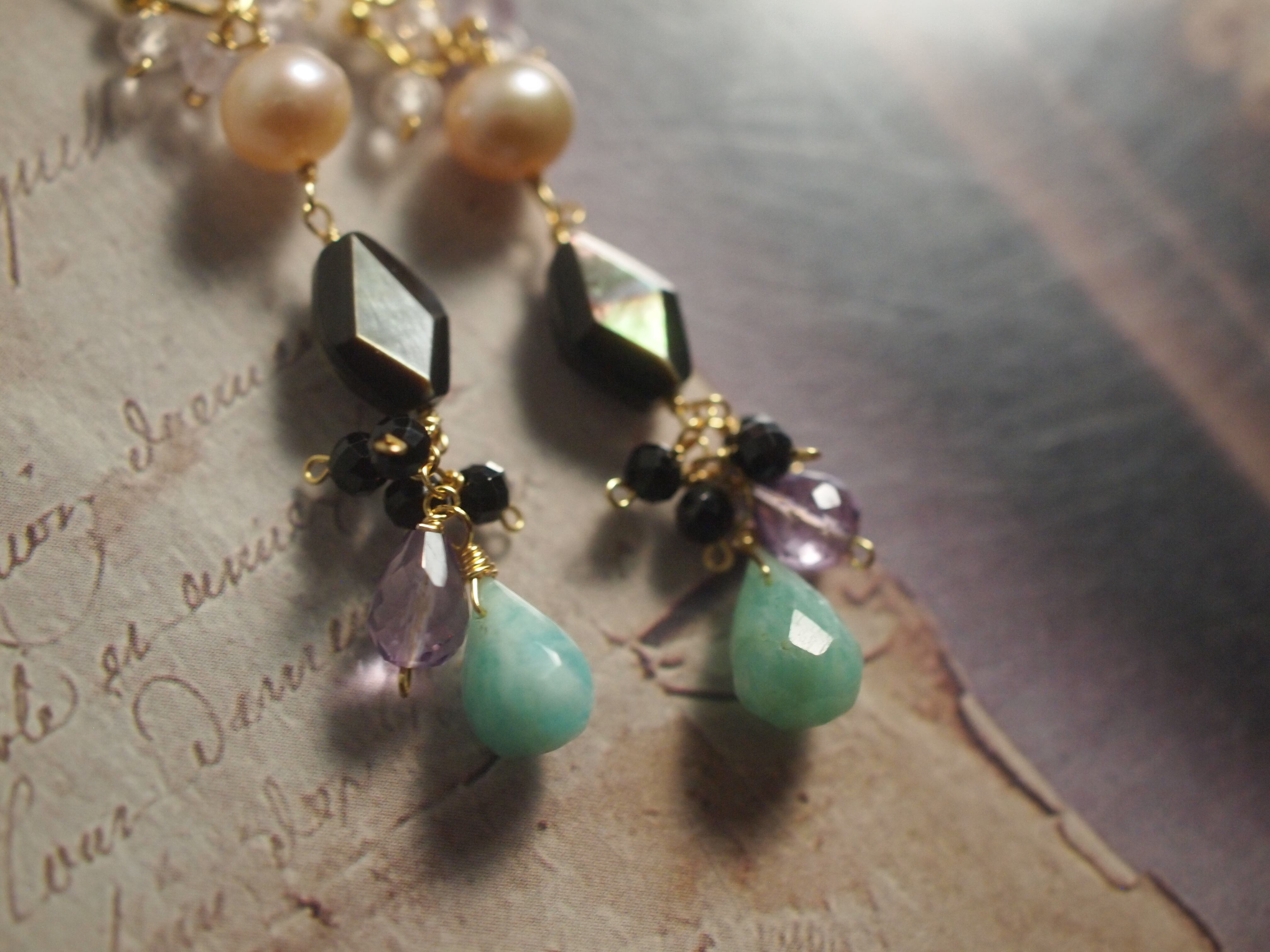 素材:アメジスト ラブラドライト 黒蝶貝 ピンクアメジスト スピネル