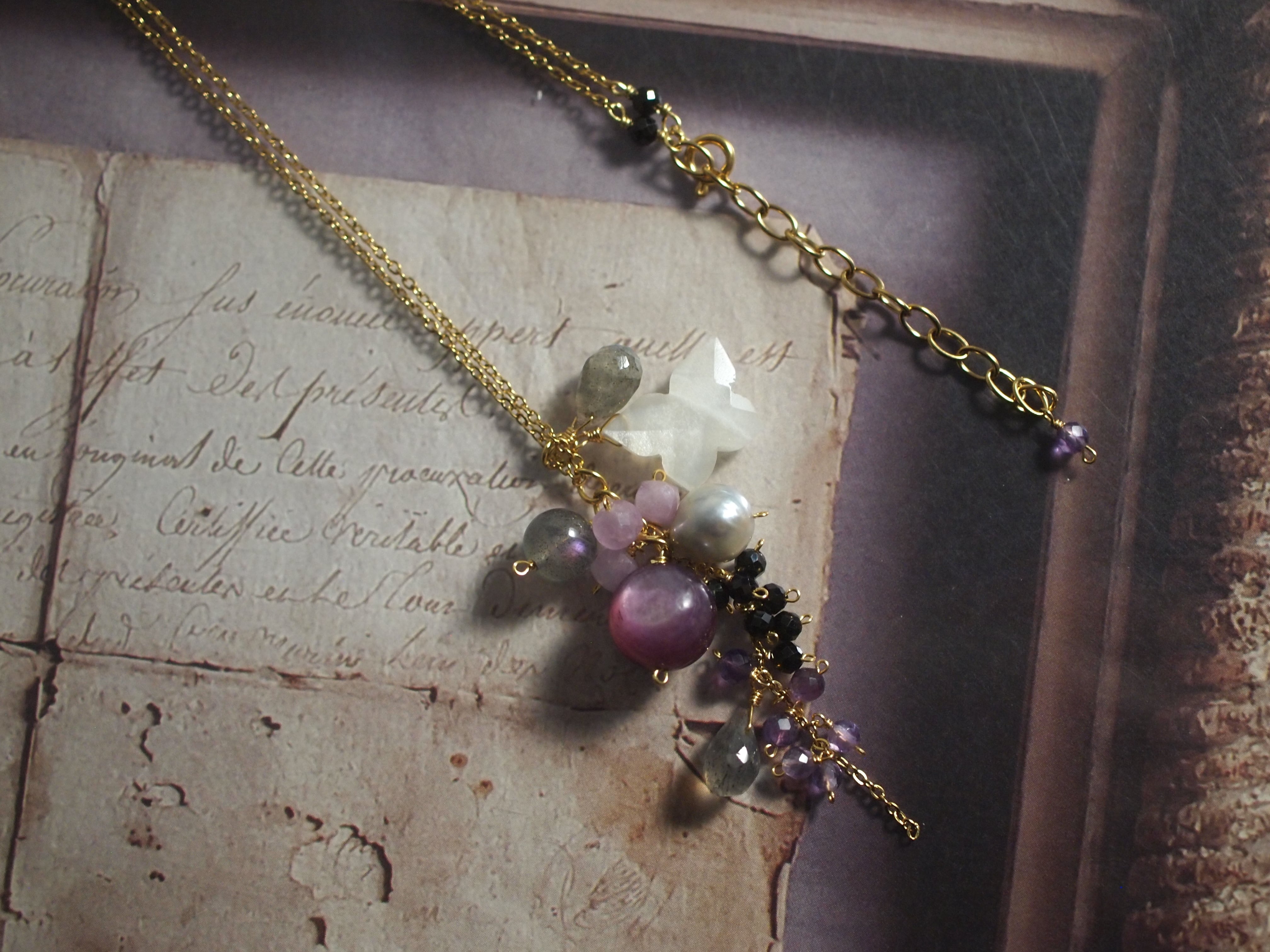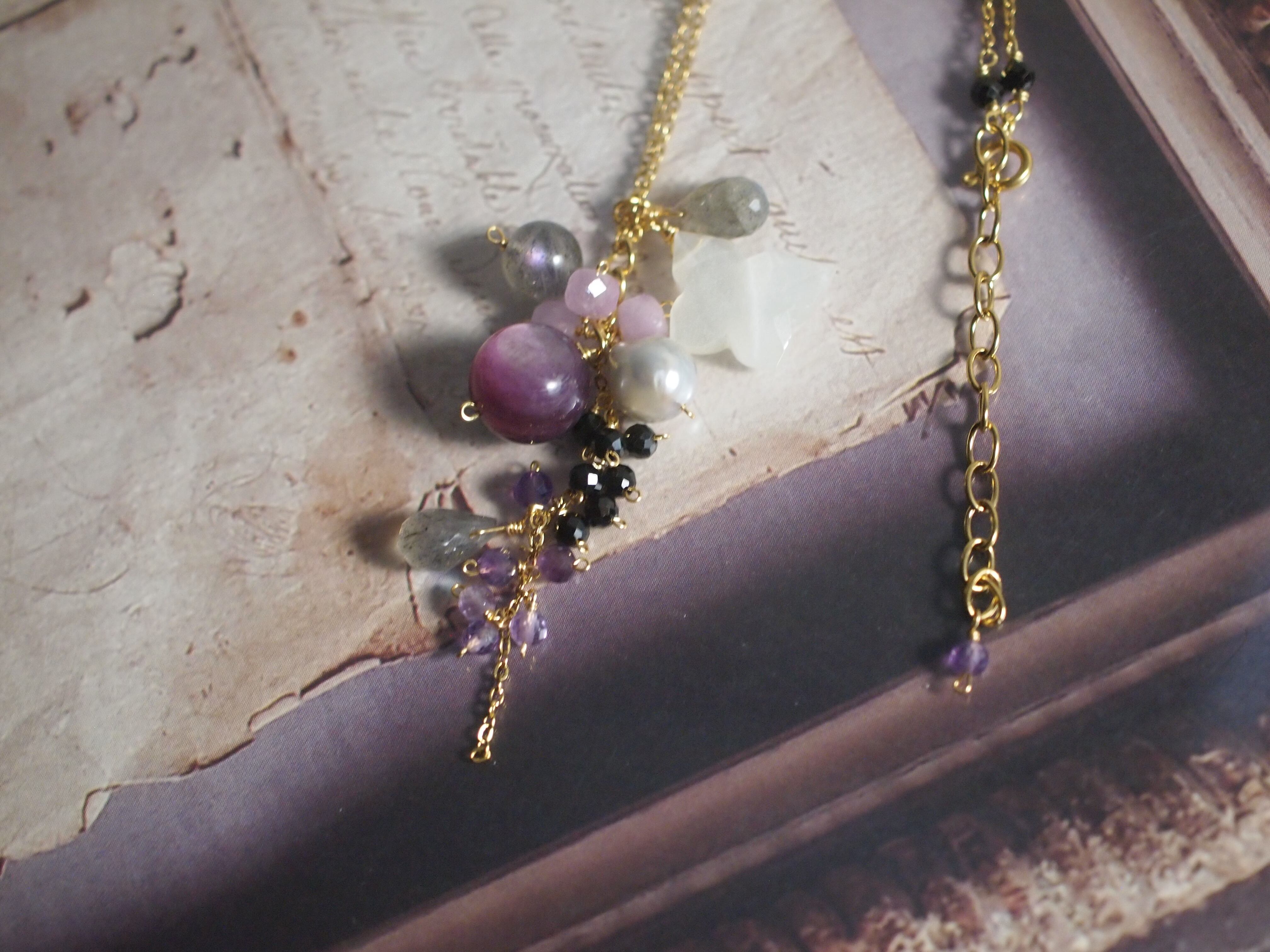 素材:ホワイトムーンストーン/ラブラドライト/スピネル/あこや真珠/レピドライト
