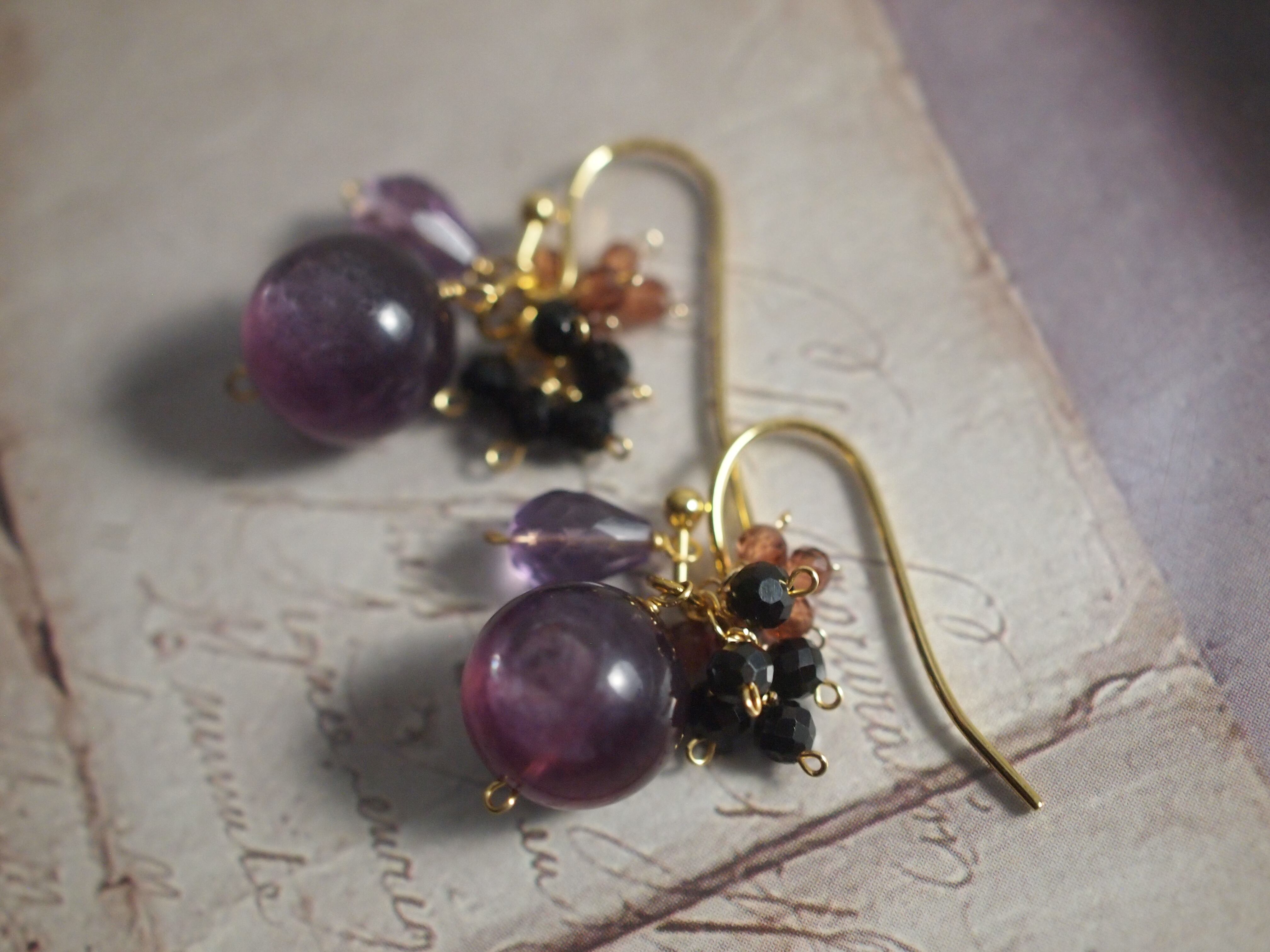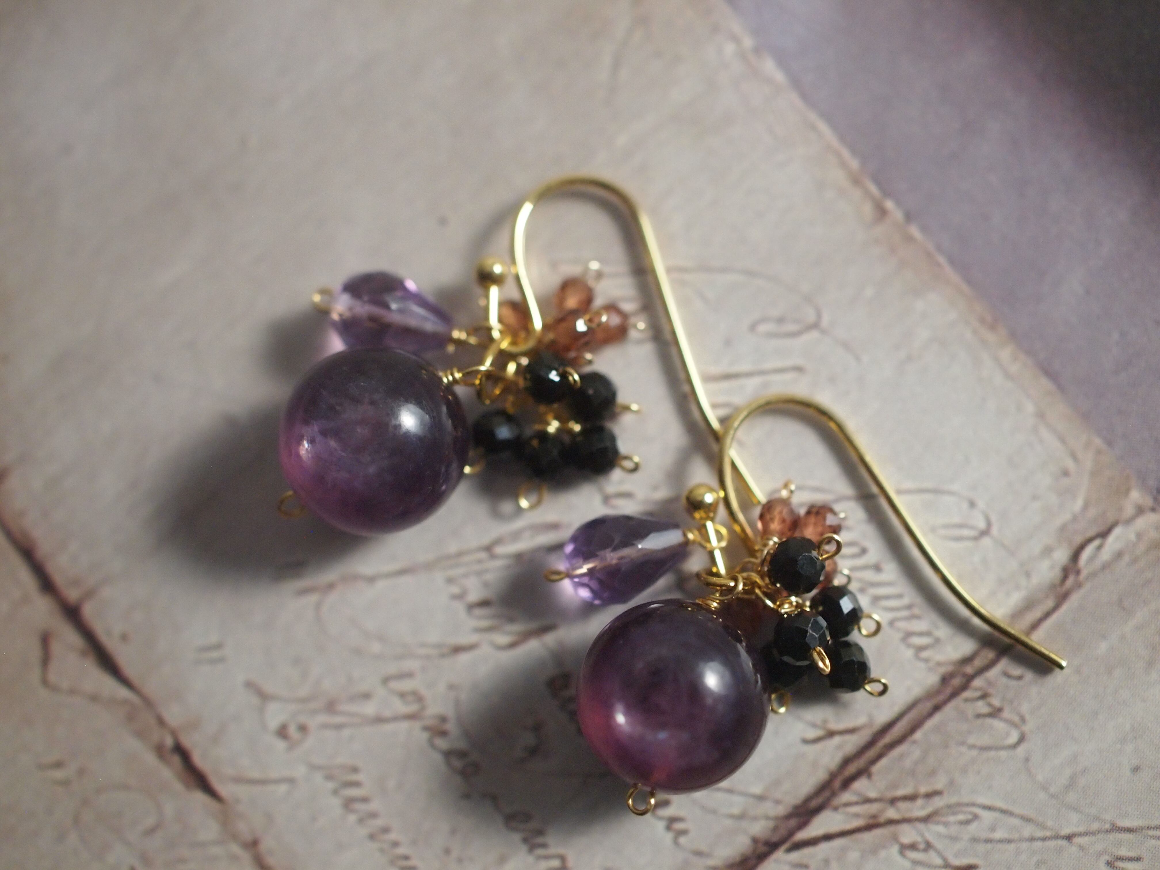 ころんとした艶やかな紫のレピドライトをメインに、淡い紫のアメジストが柔らかさを添えます。