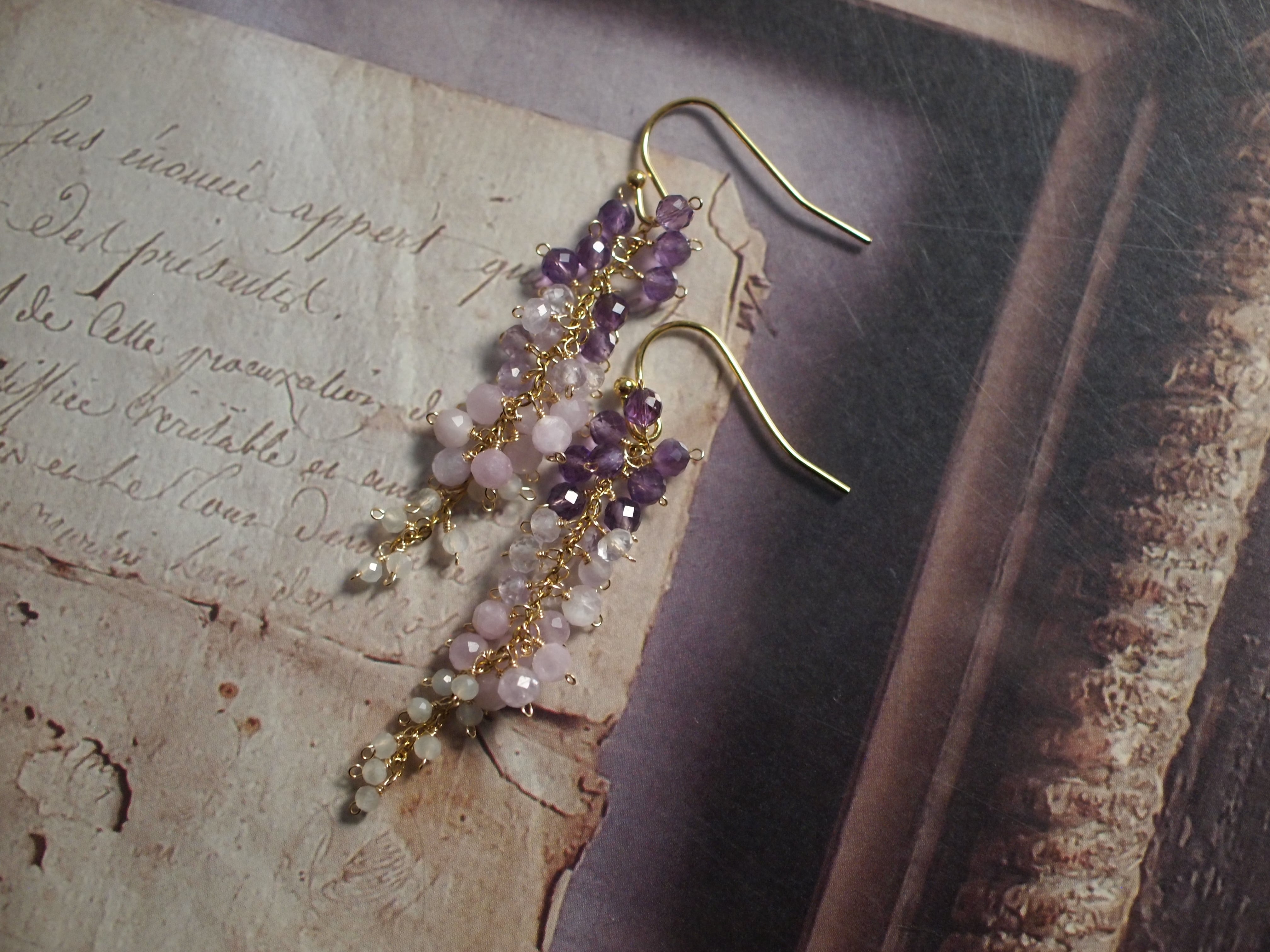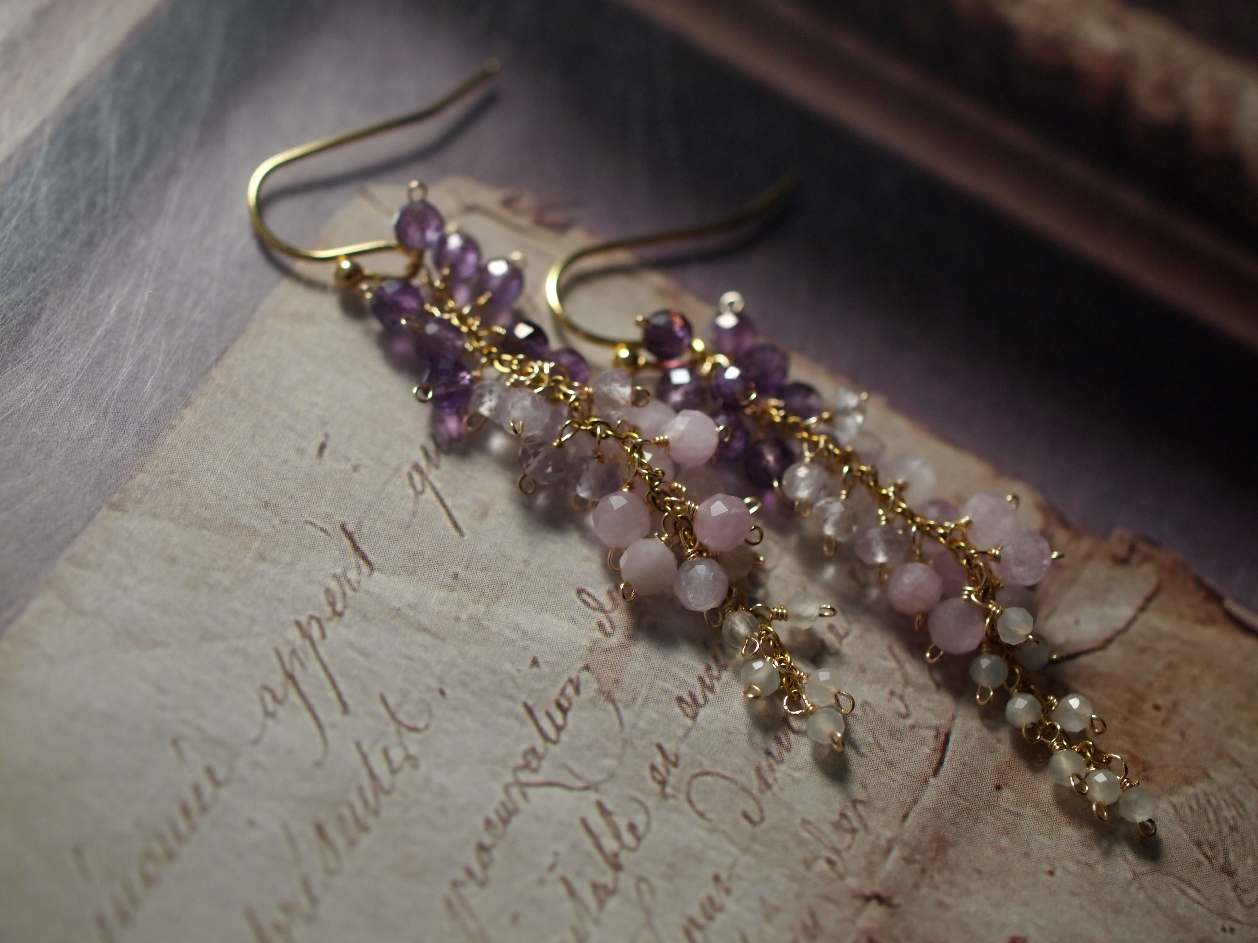 繊細なチェーンに沿って丁寧につないだピアスです。