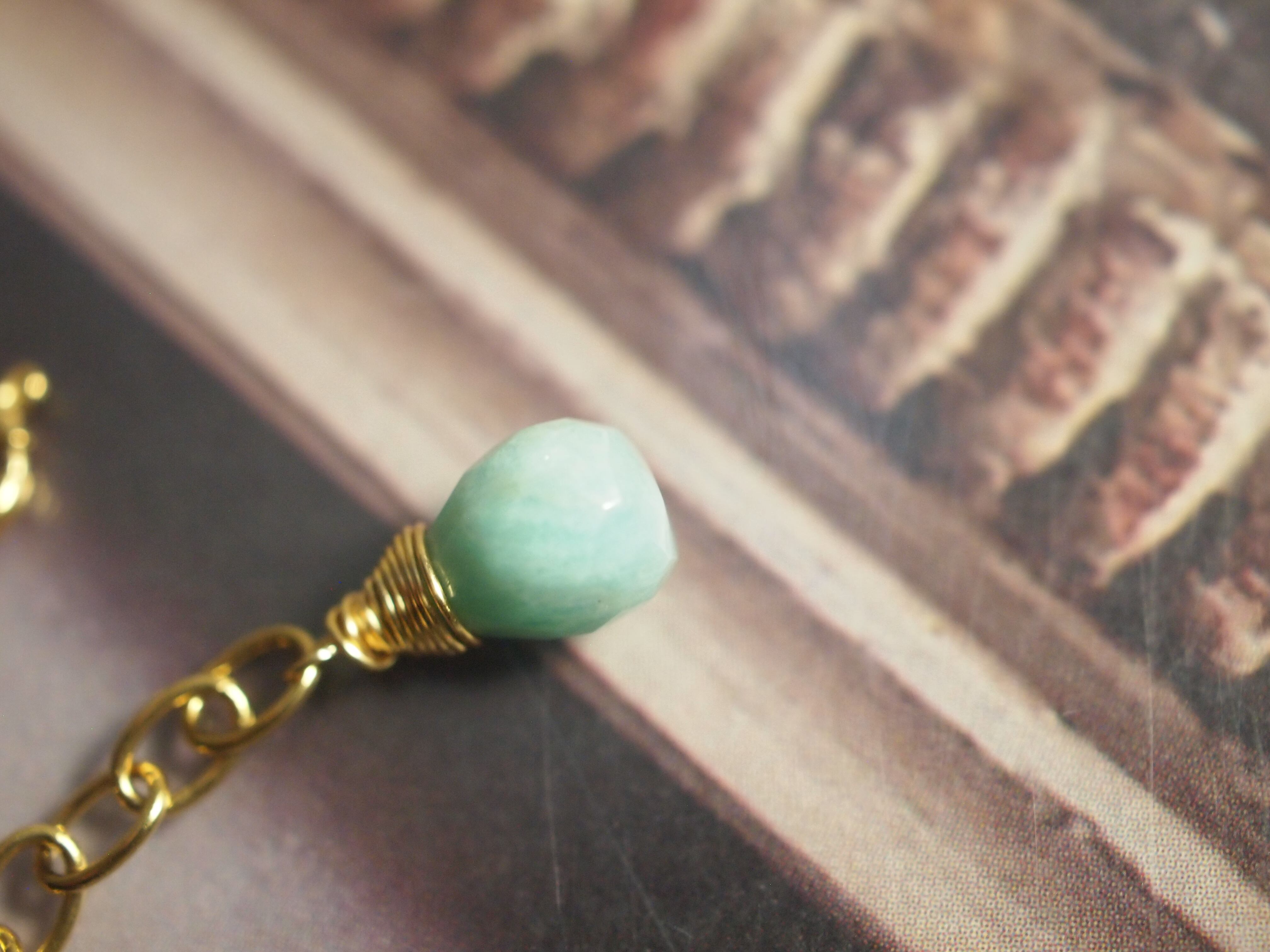 アジャスターエンドでは、ドロップカットのアマゾナイトがさりげなく揺れ、