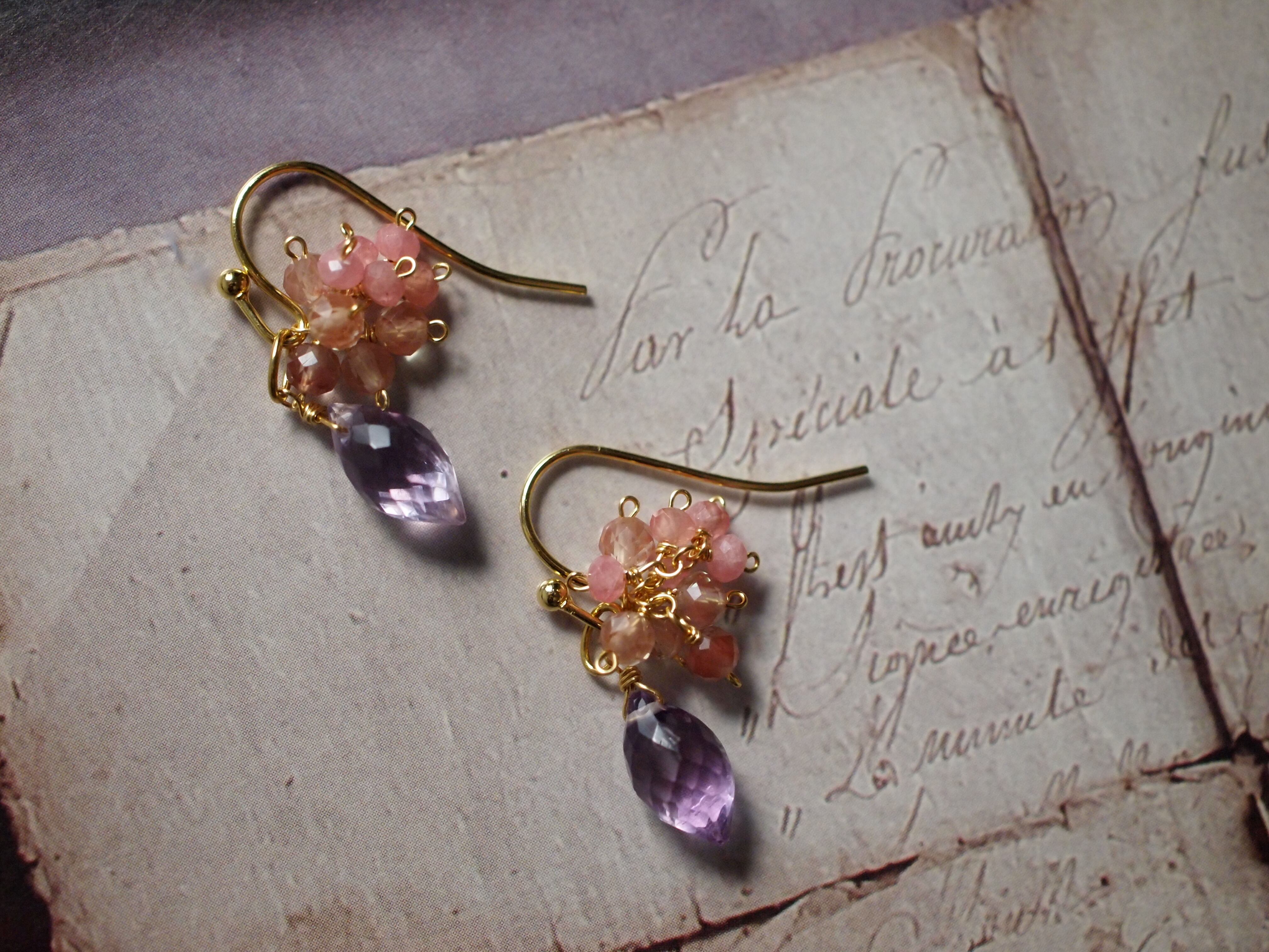 そしてオレンジピンクが印象的なインカローズを組み合わせたピアスです。