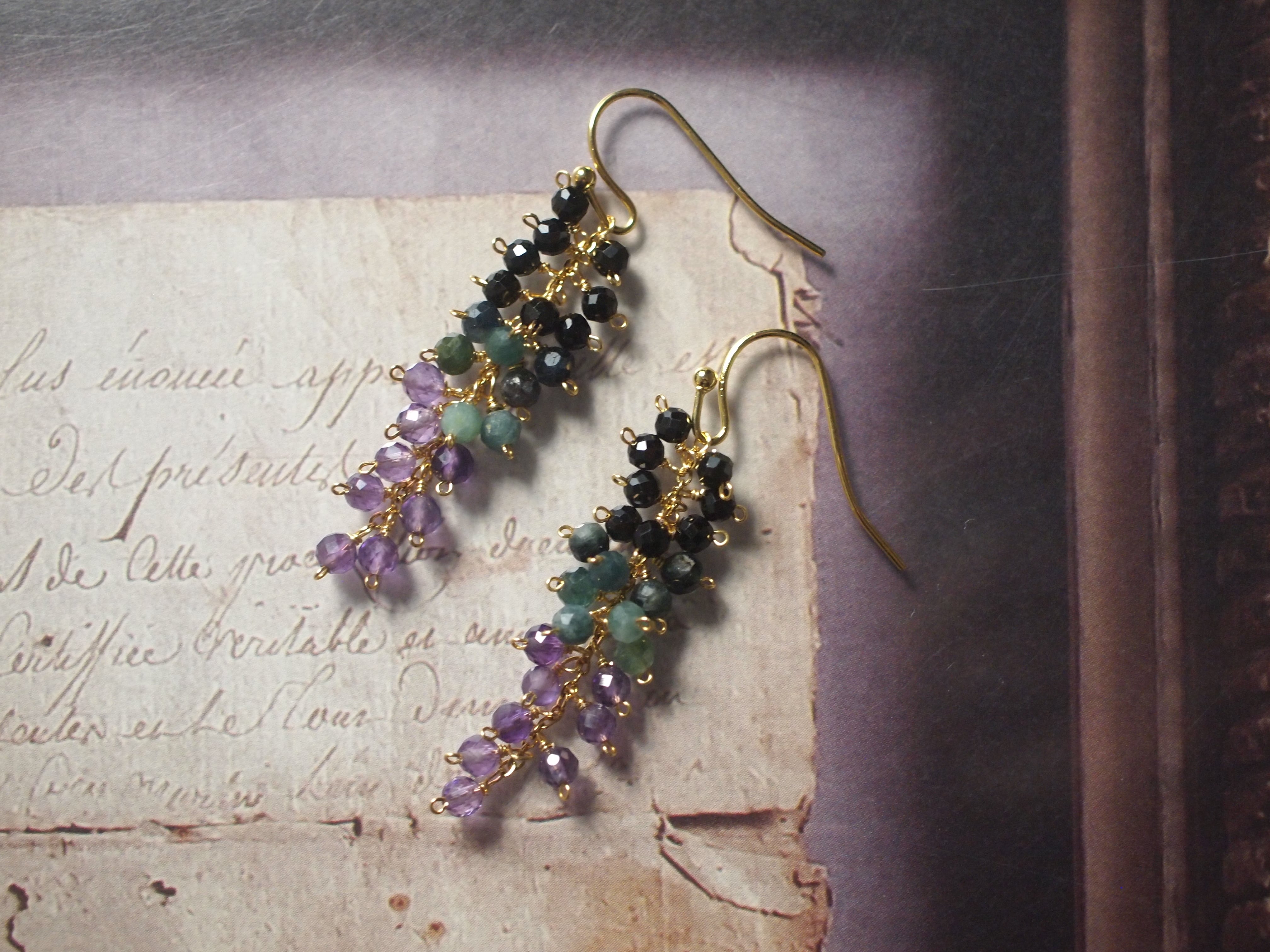 ブラックスピネルを繊細に繋ぎ、しゃらりと揺れる軽やかなピアスに仕立てました。