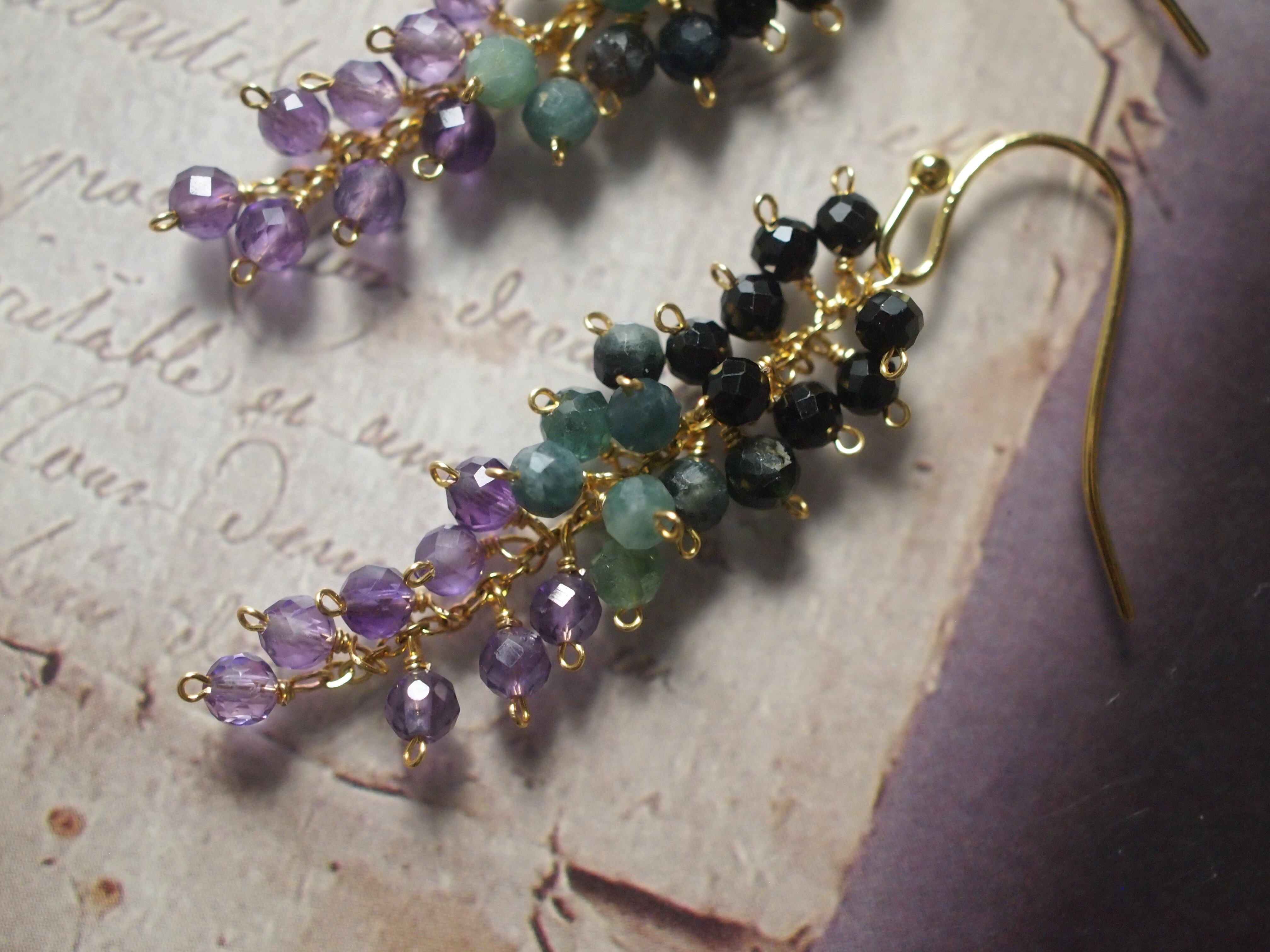 小粒のアメジスト、ブルーグリーントルマリン、