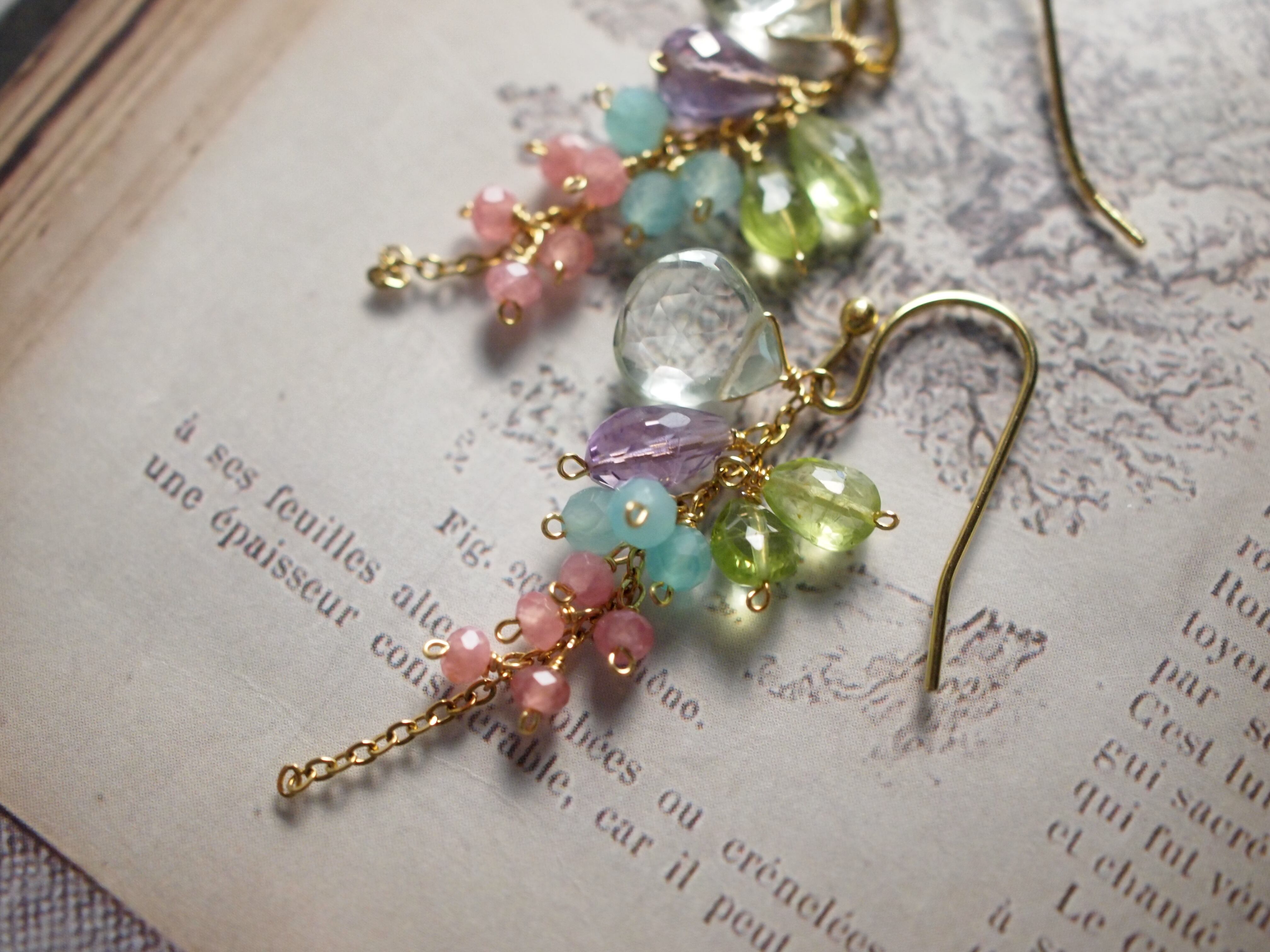 ペリドット、アマゾナイト、インカローズが軽やかに舞い、