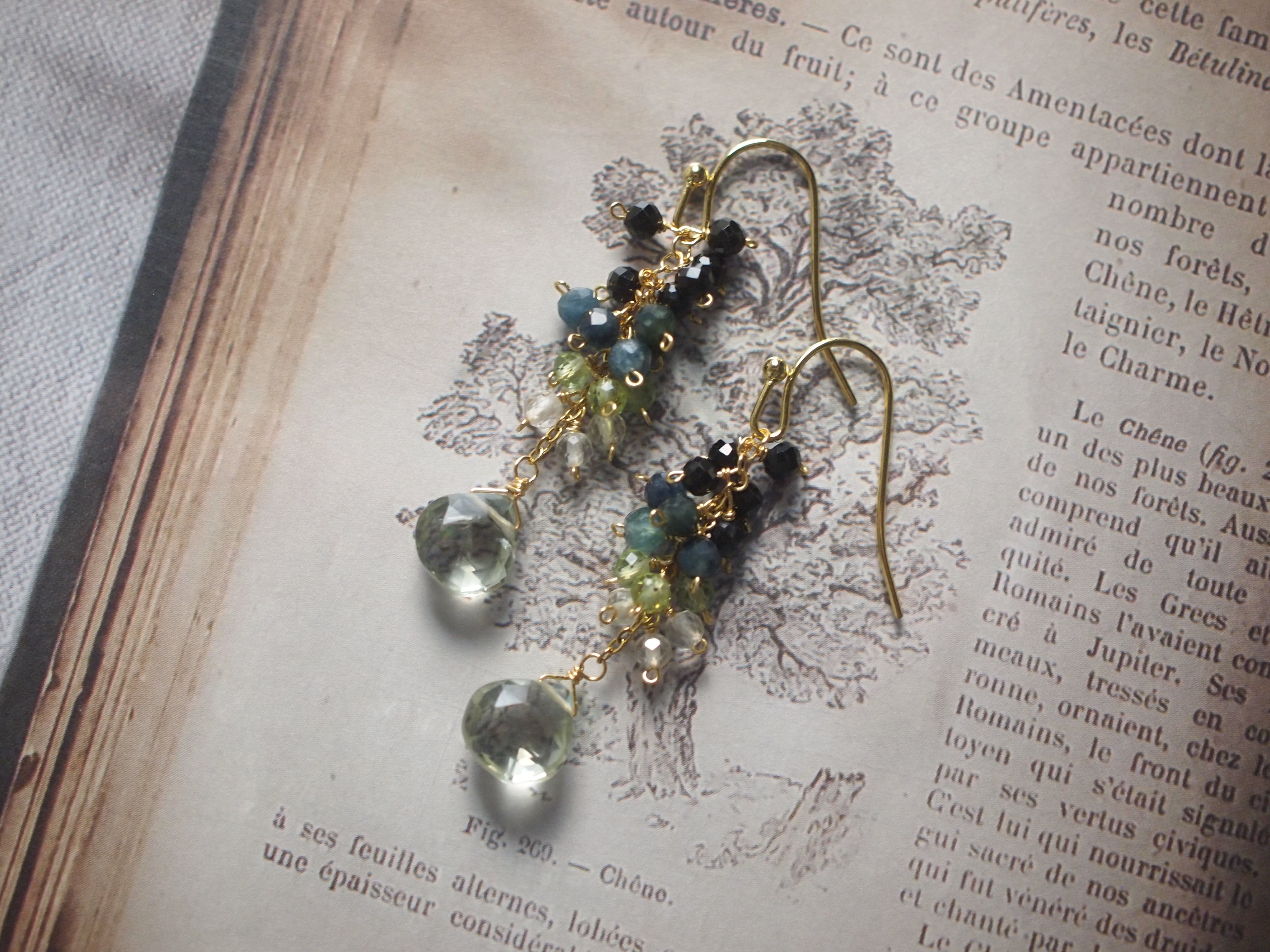 耳元でしゃらりと揺れる石たちが、時間と季節の移ろいをそっと感じさせる、