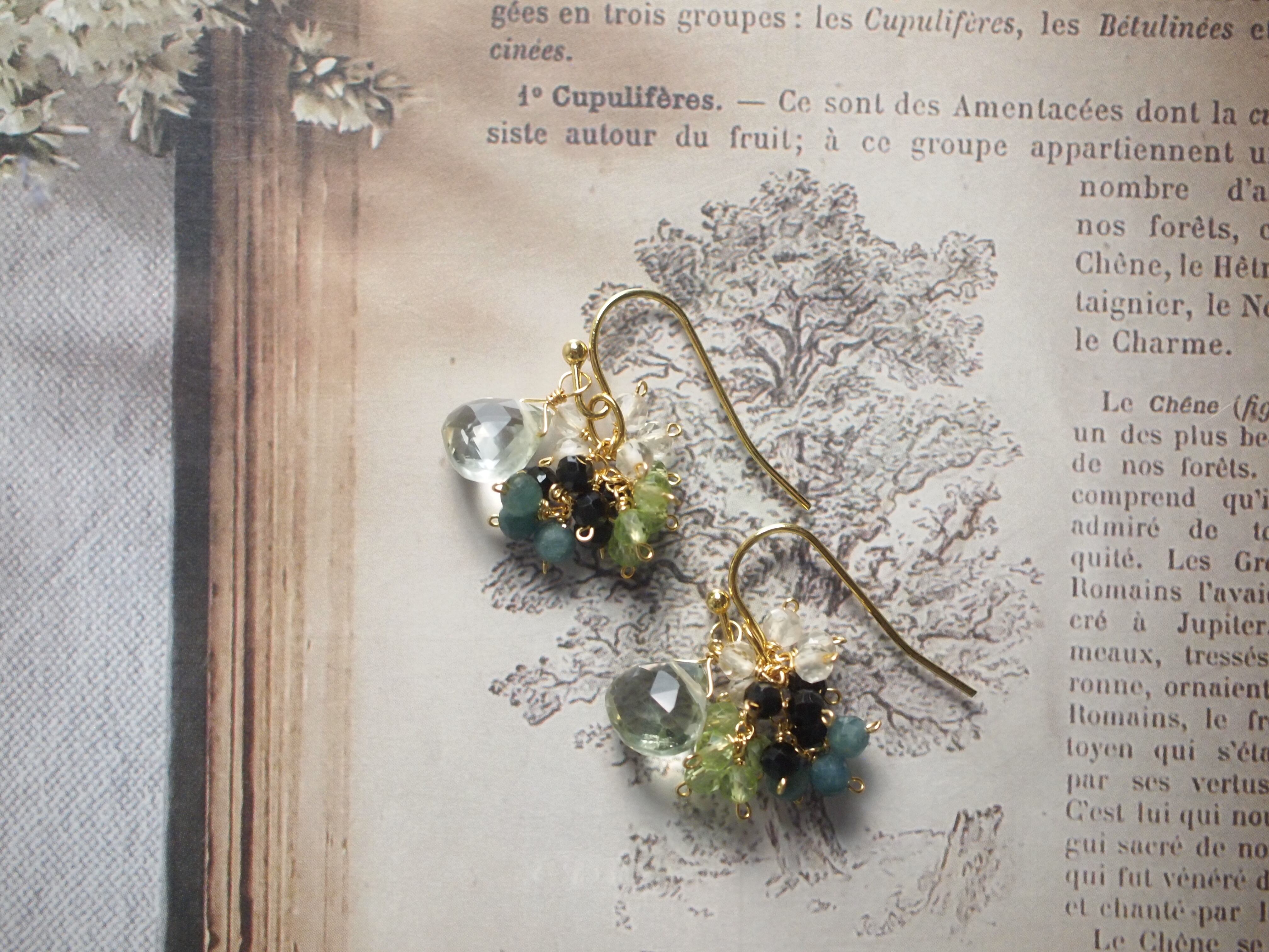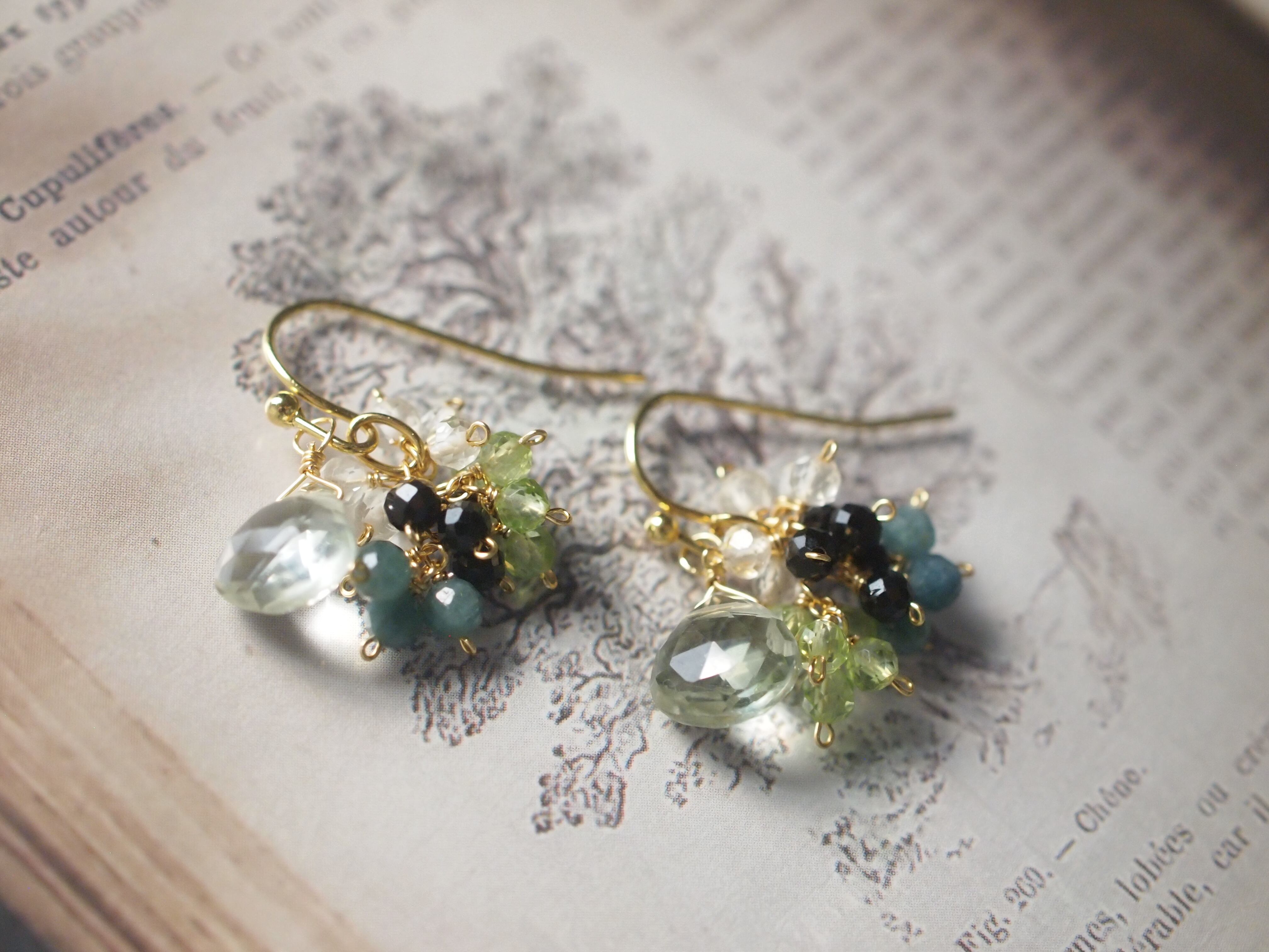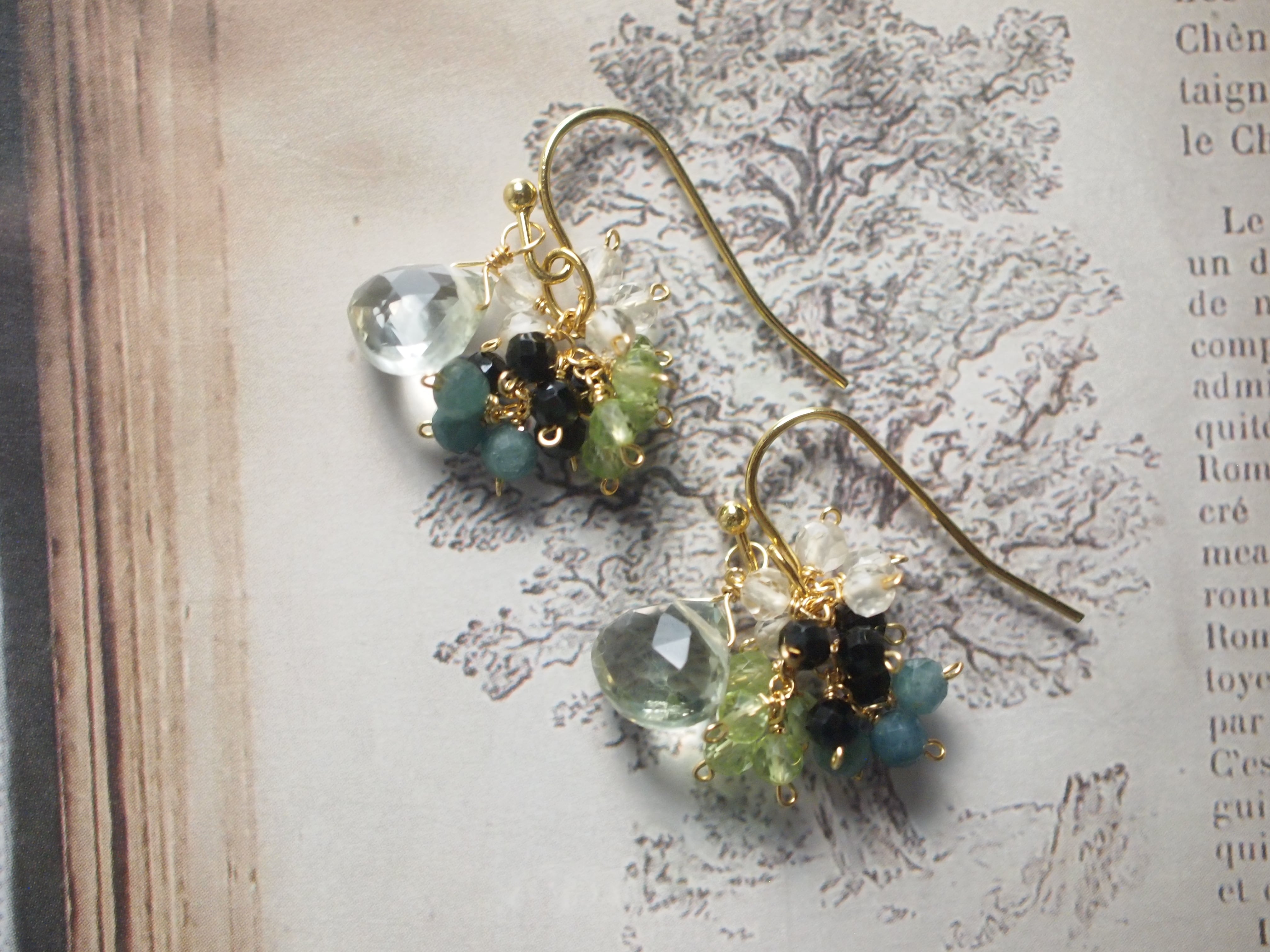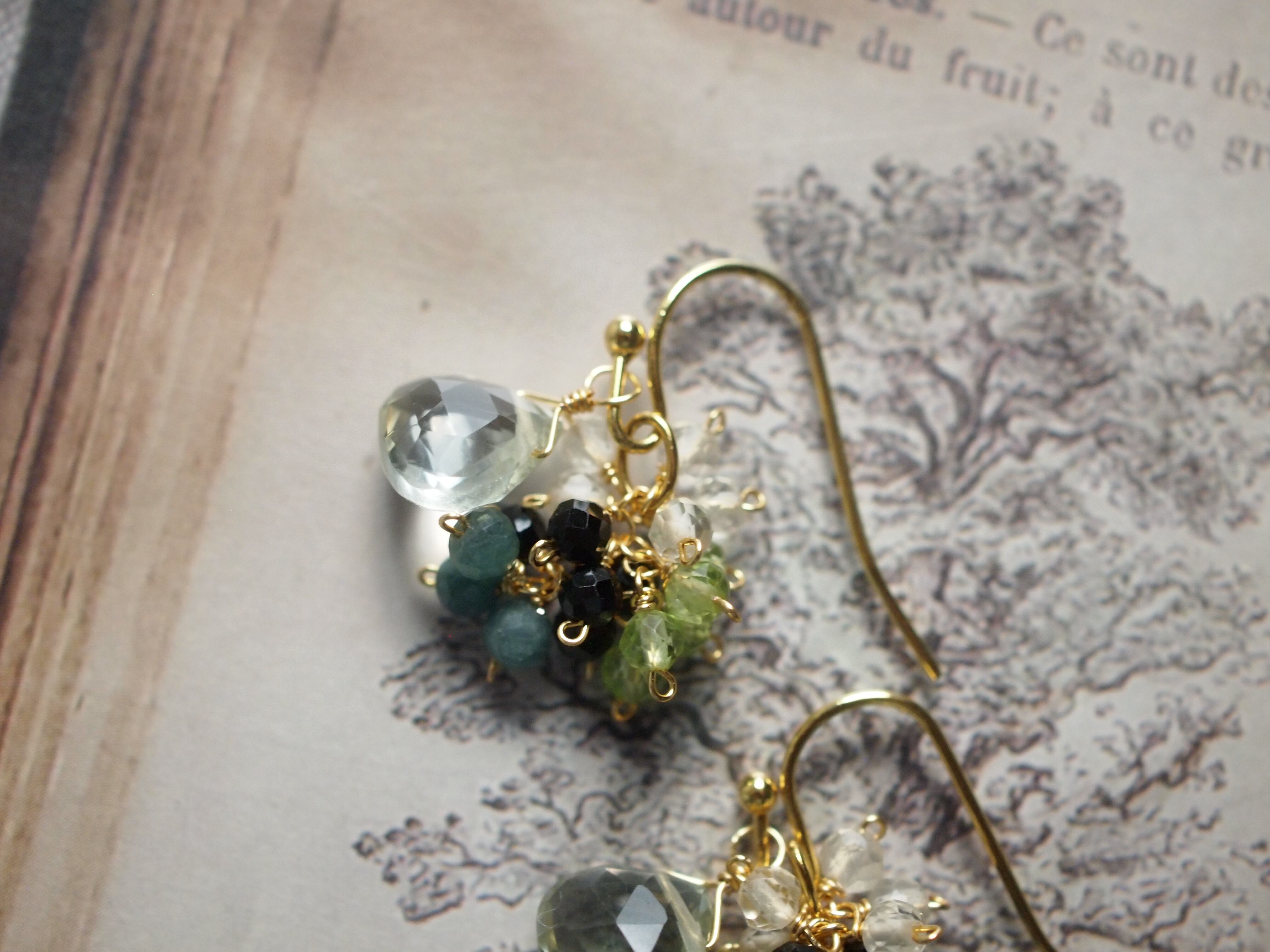 耳元でしゃらりと揺れる石たちが、時間と季節の移ろいをそっと感じさせる、