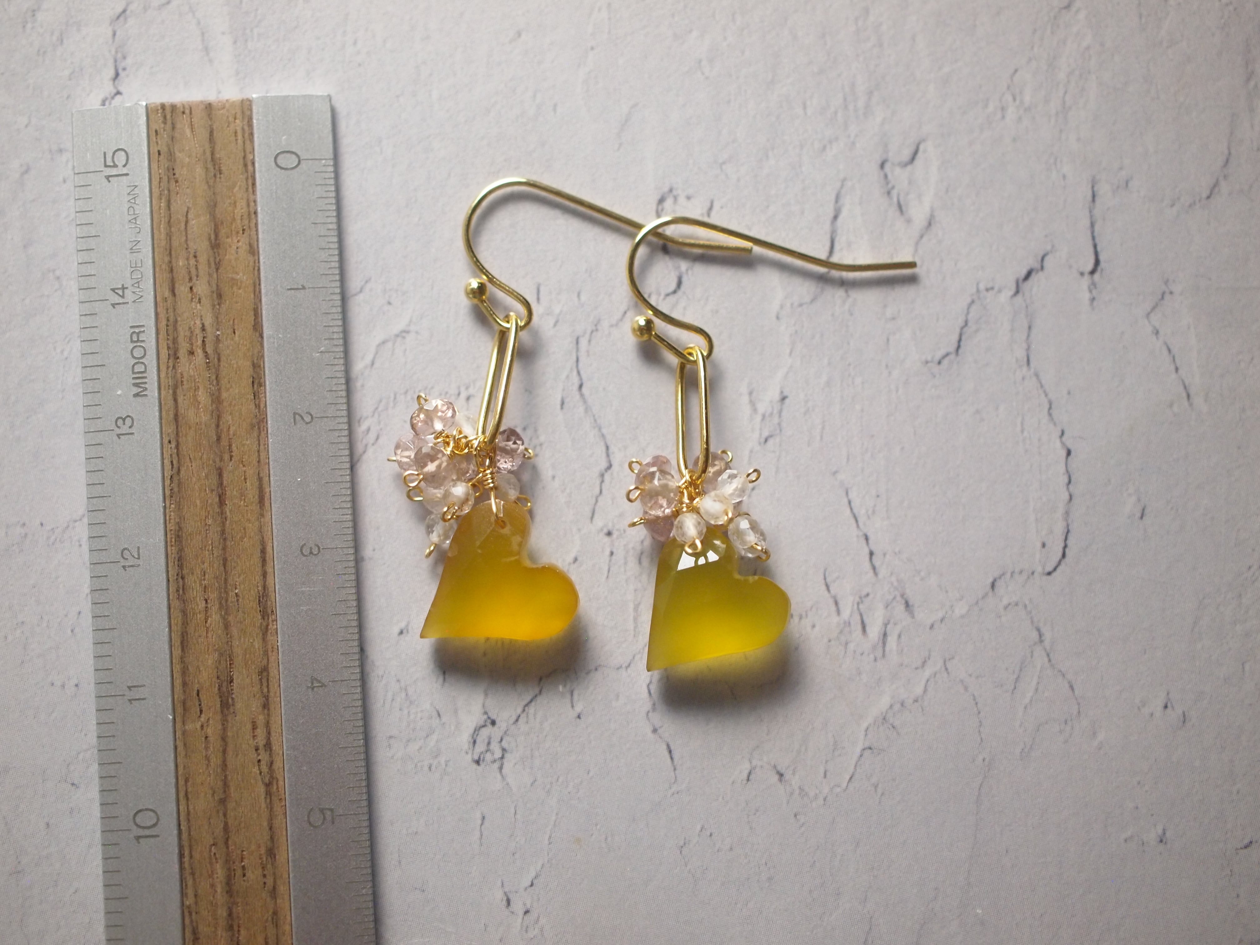 №59 陽だまりの恋歌 イエローカルセドニーのハートシェイプピアス➁