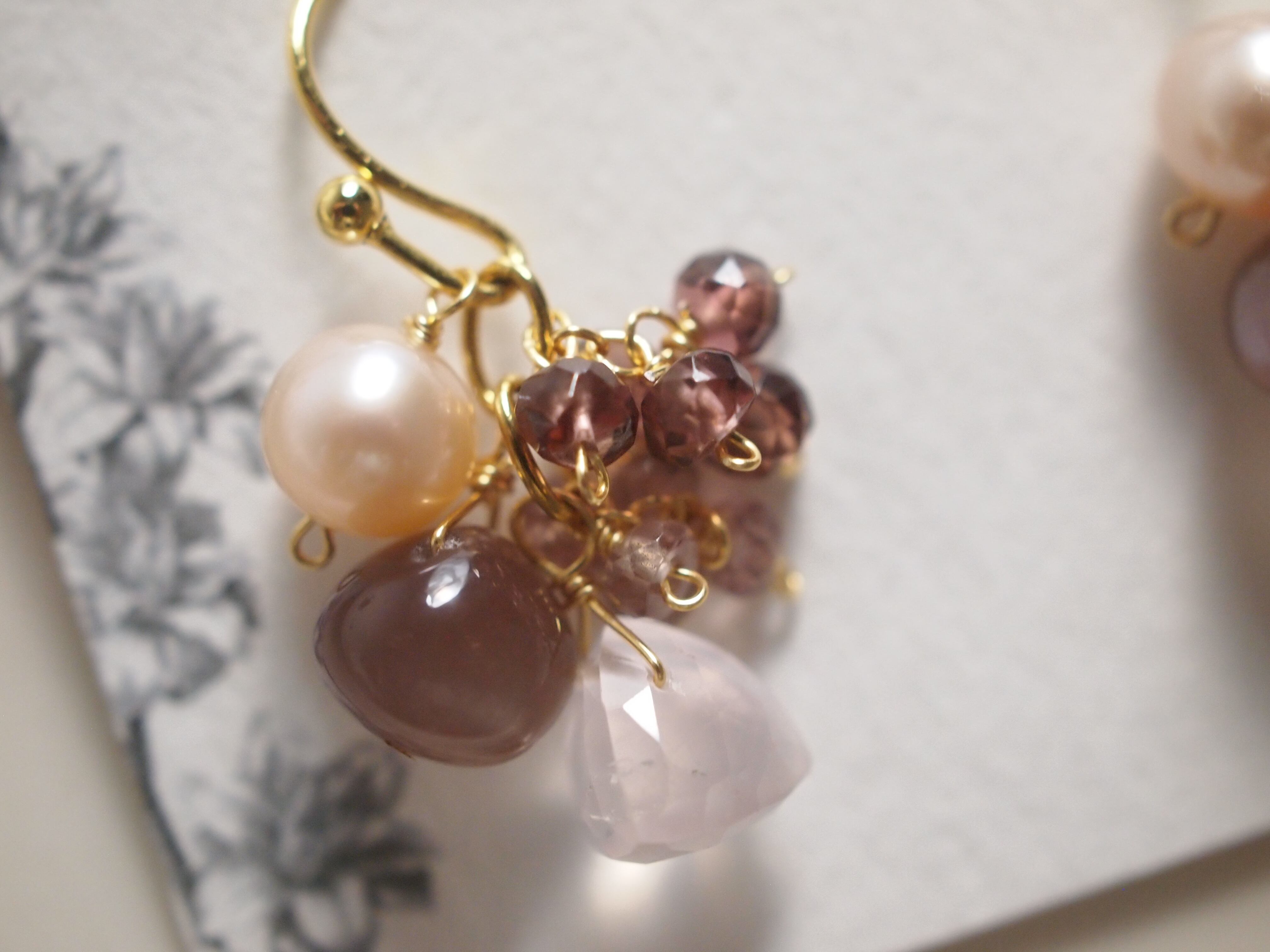 マラヤガーネットはやさしいピンクで、耳元にふんわり可憐な華やかさを添えます。