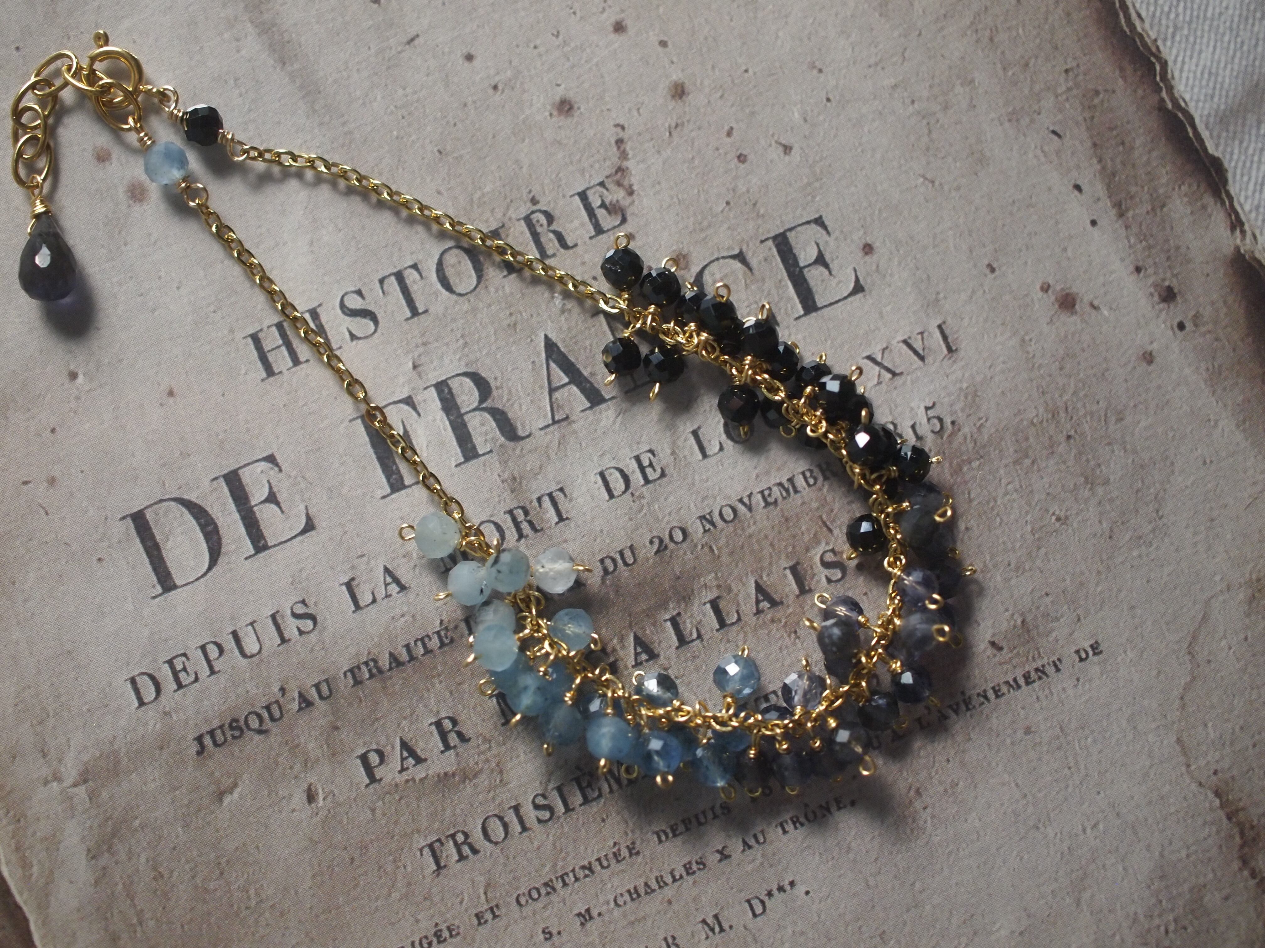 ディープブルーアクアマリンの小粒をたっぷりあしらった、