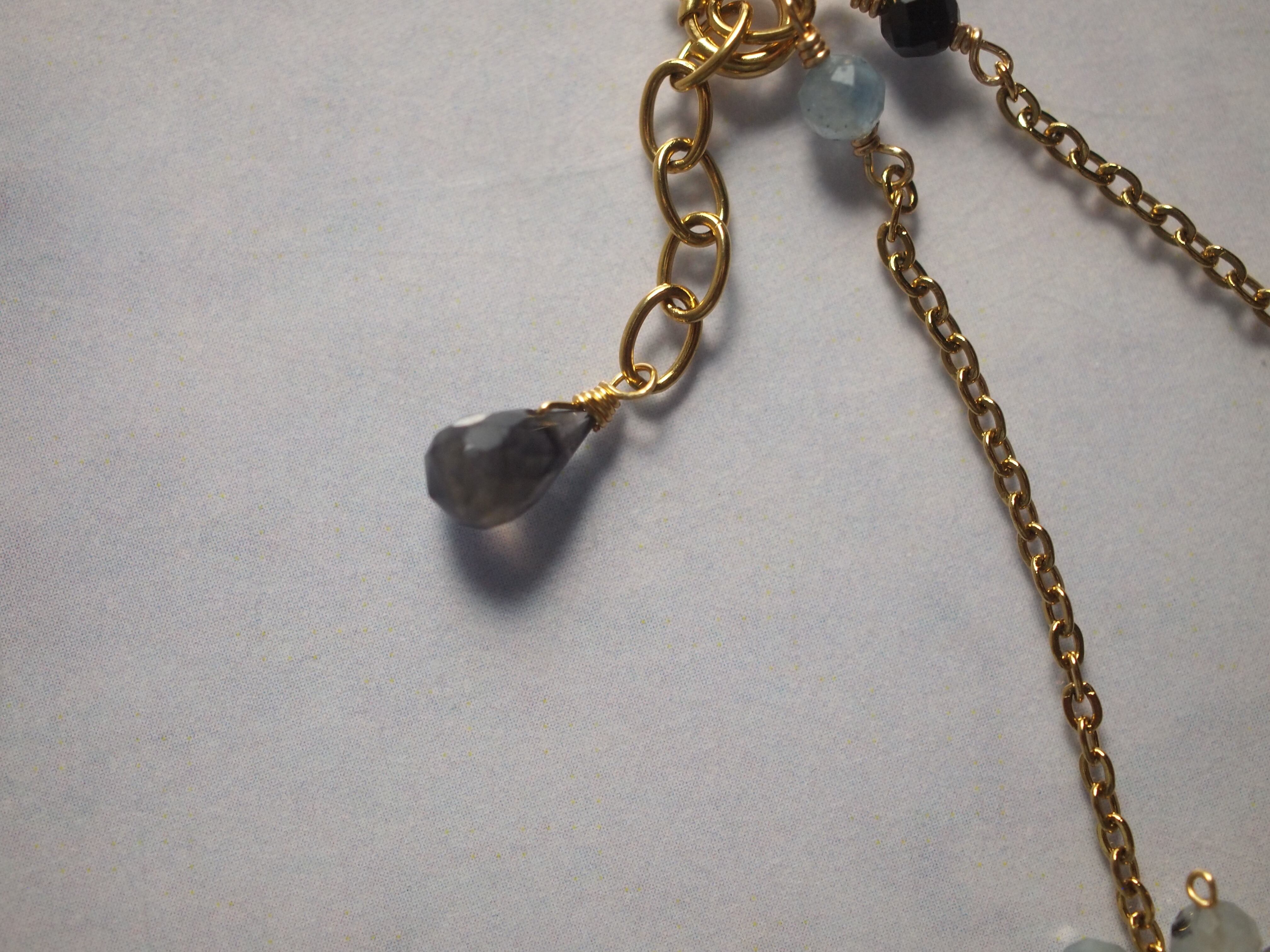 アジャスターエンドにはドロップカットのアイオライトをあしらい、