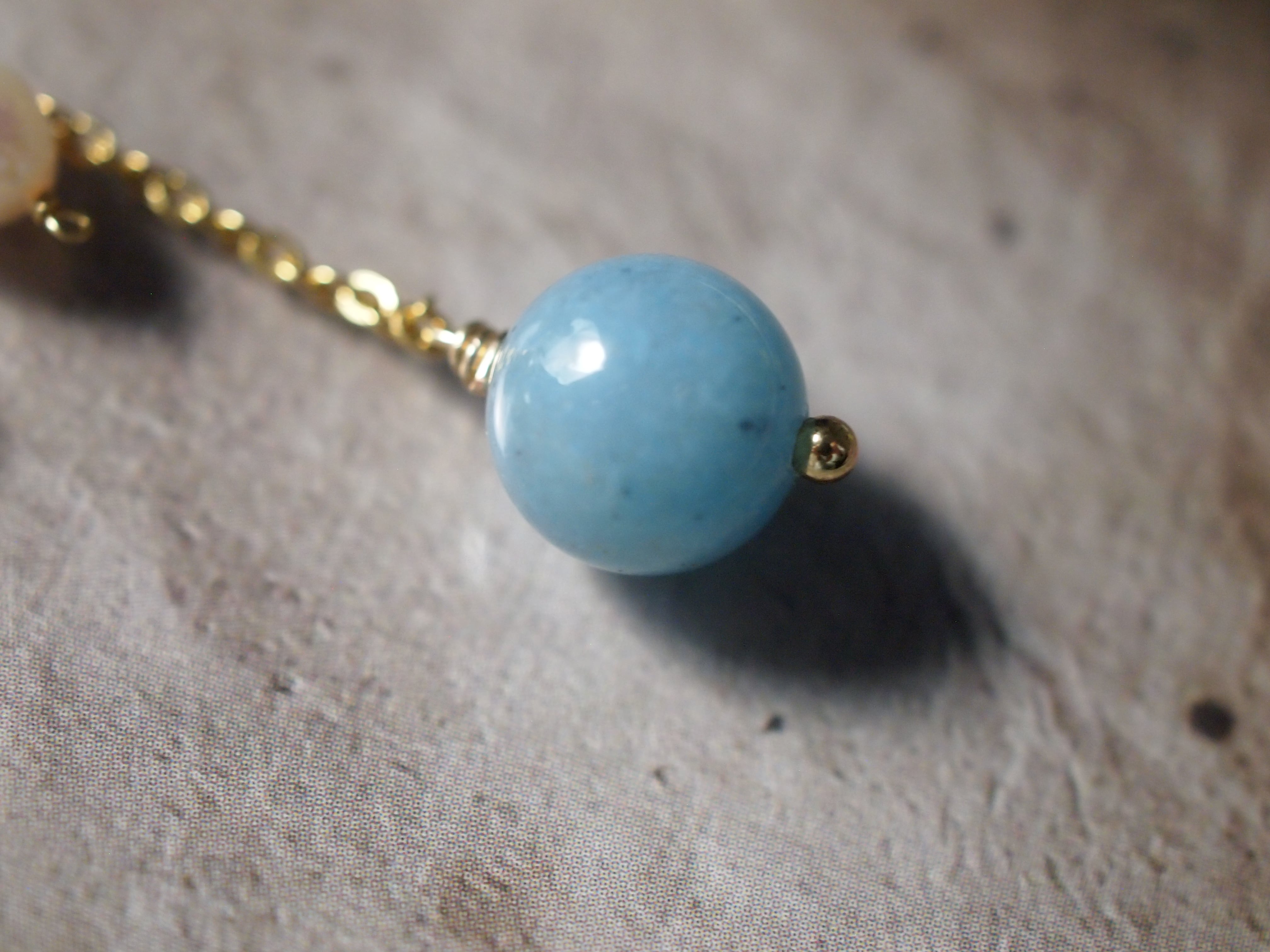 淡いブルーのころんとしたトロレアイトを組み合わせたチャーム。
