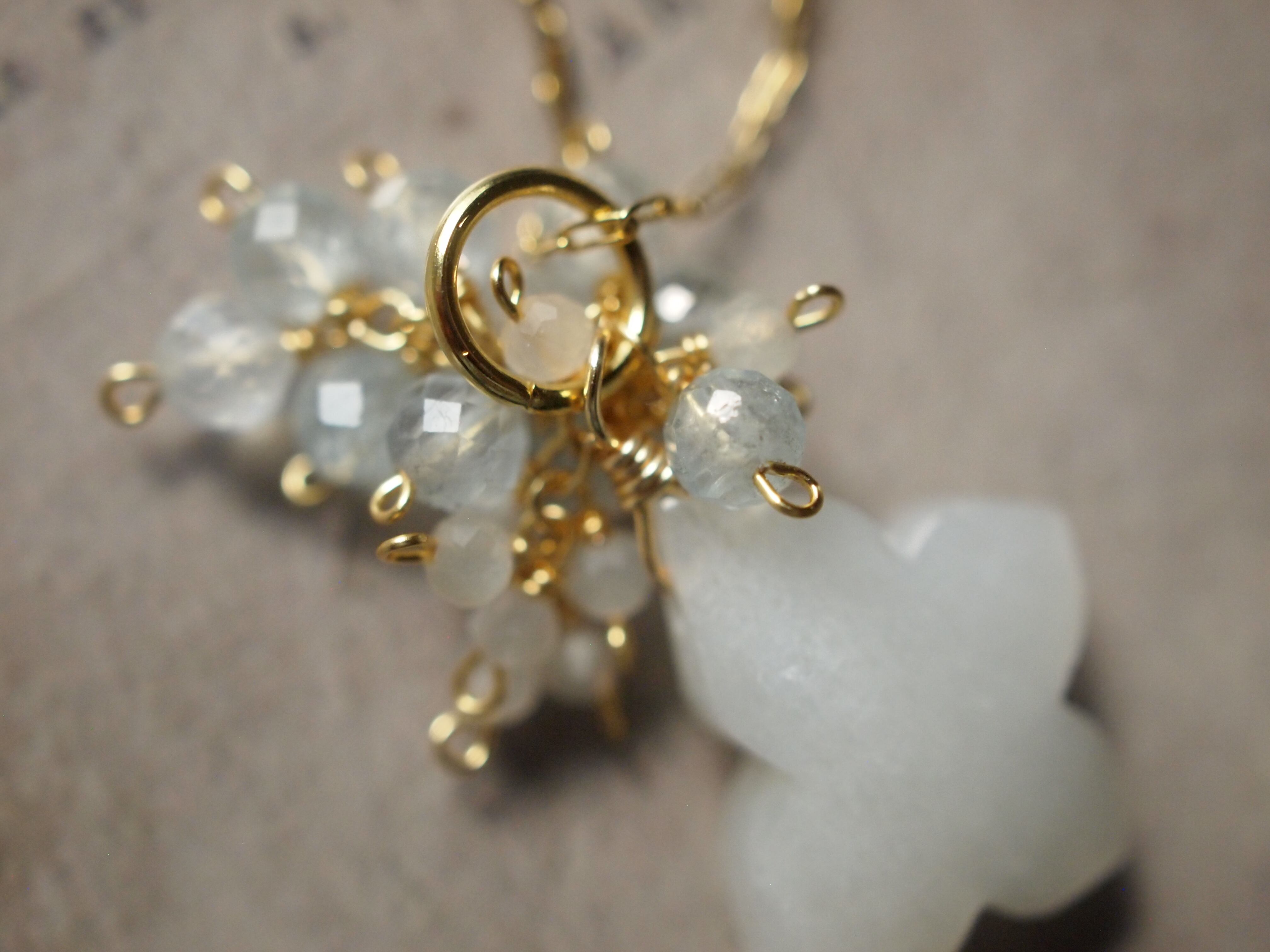 ひとつは、蝶カットのホワイトムーンストーンをメインに、