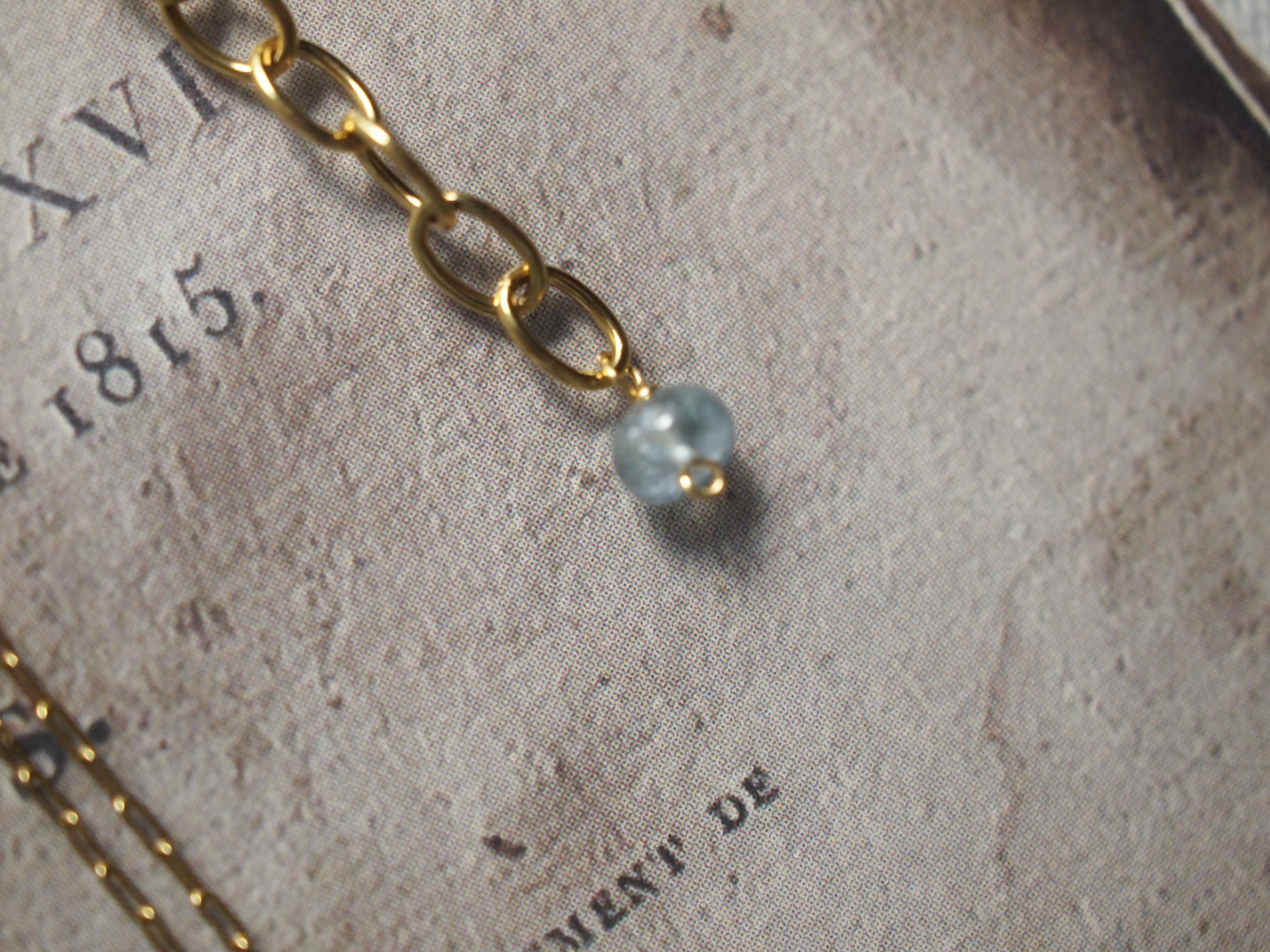 小粒のアクアマリンとホワイトムーンストーンを合わせたチャーム。