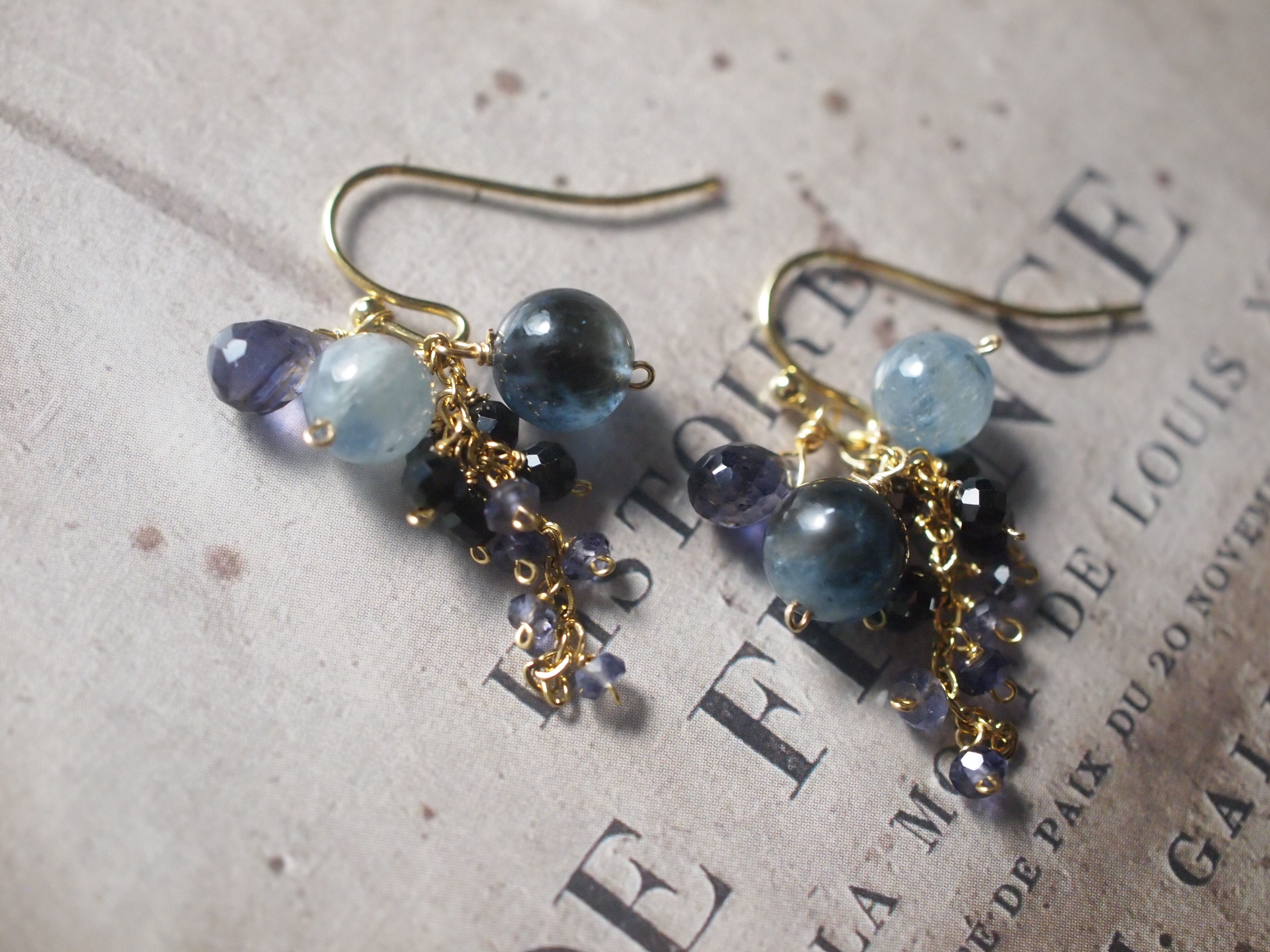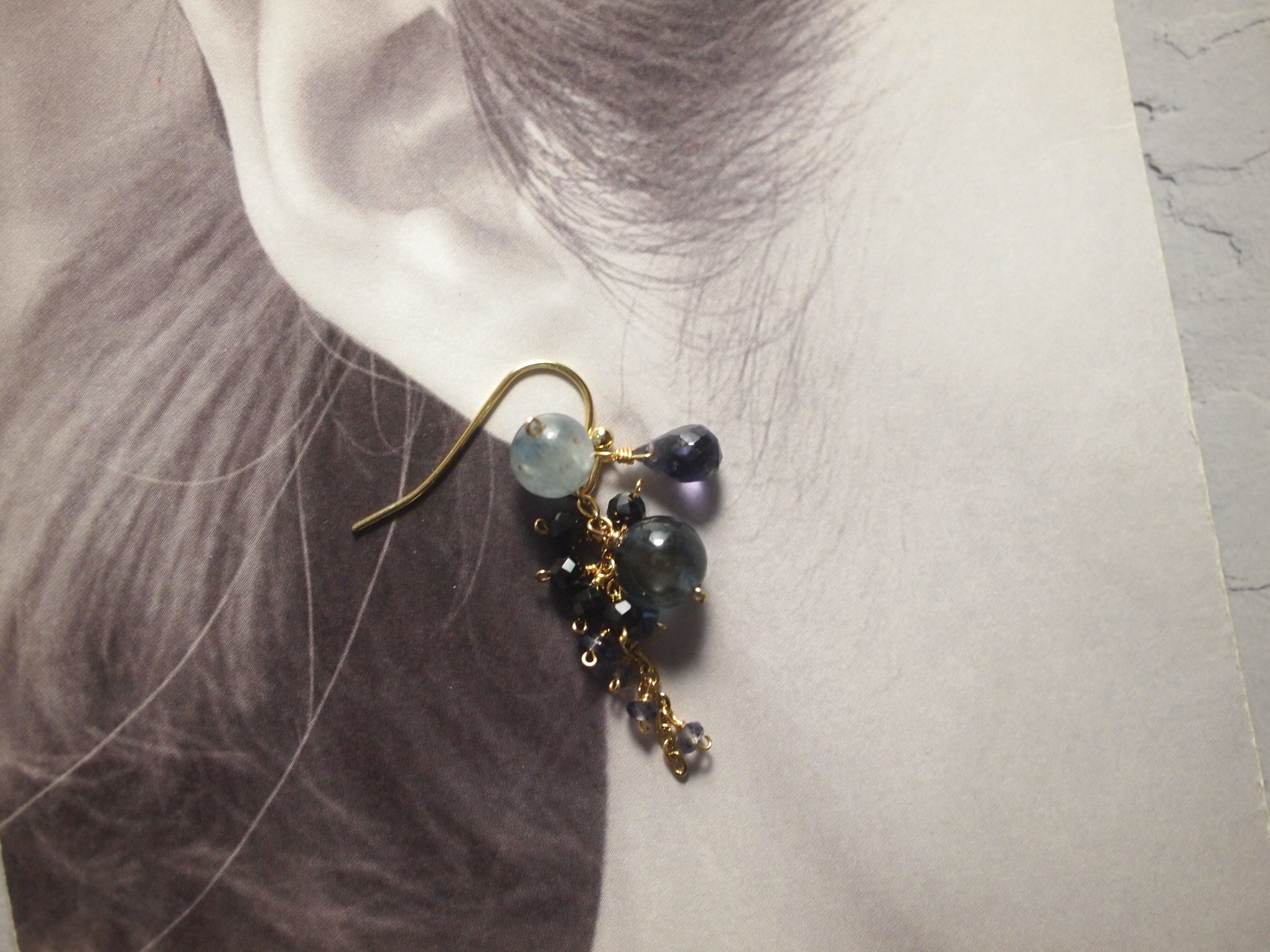 小粒のブラックスピネルとアイオライトを合わせたピアスです。