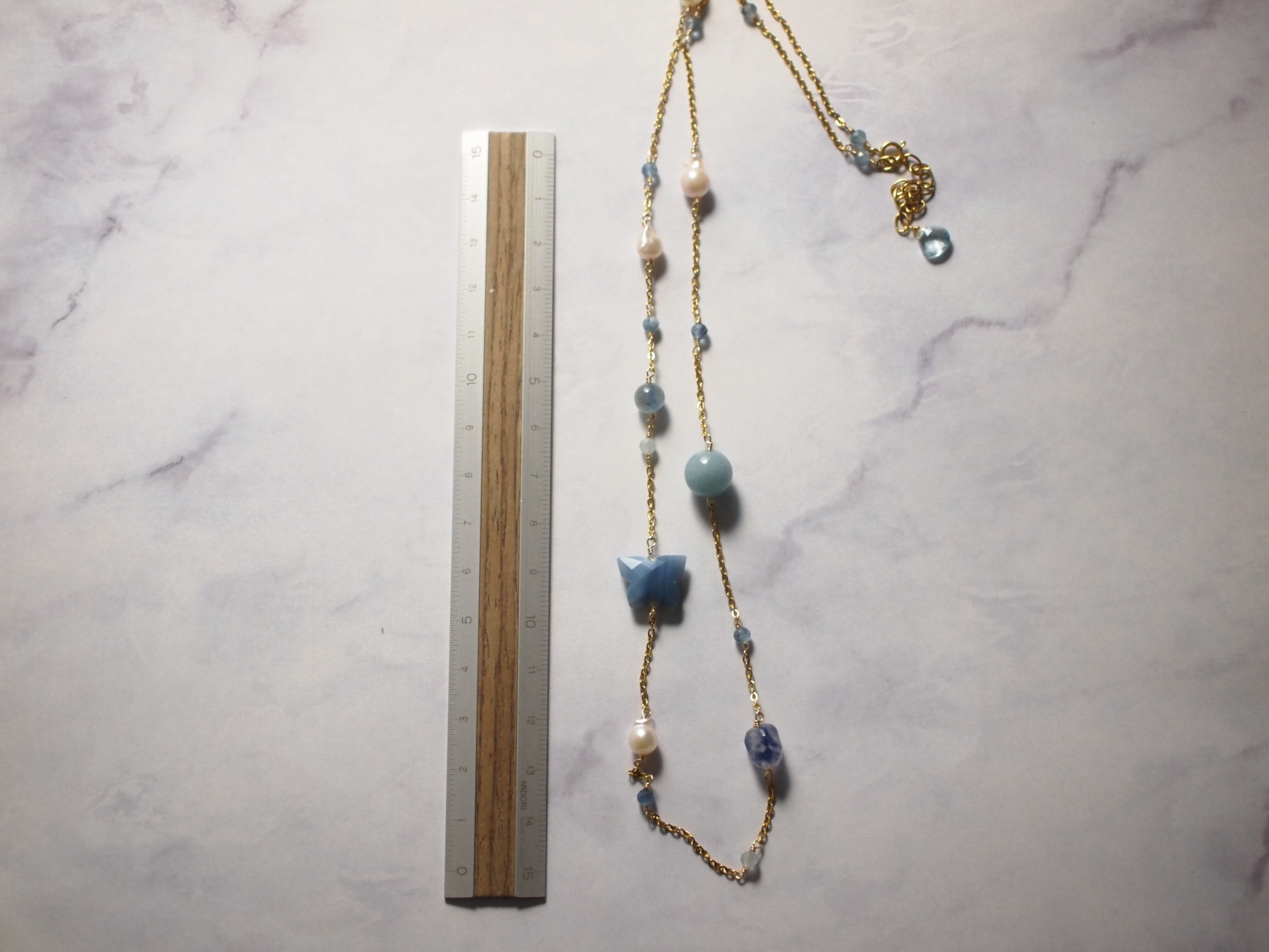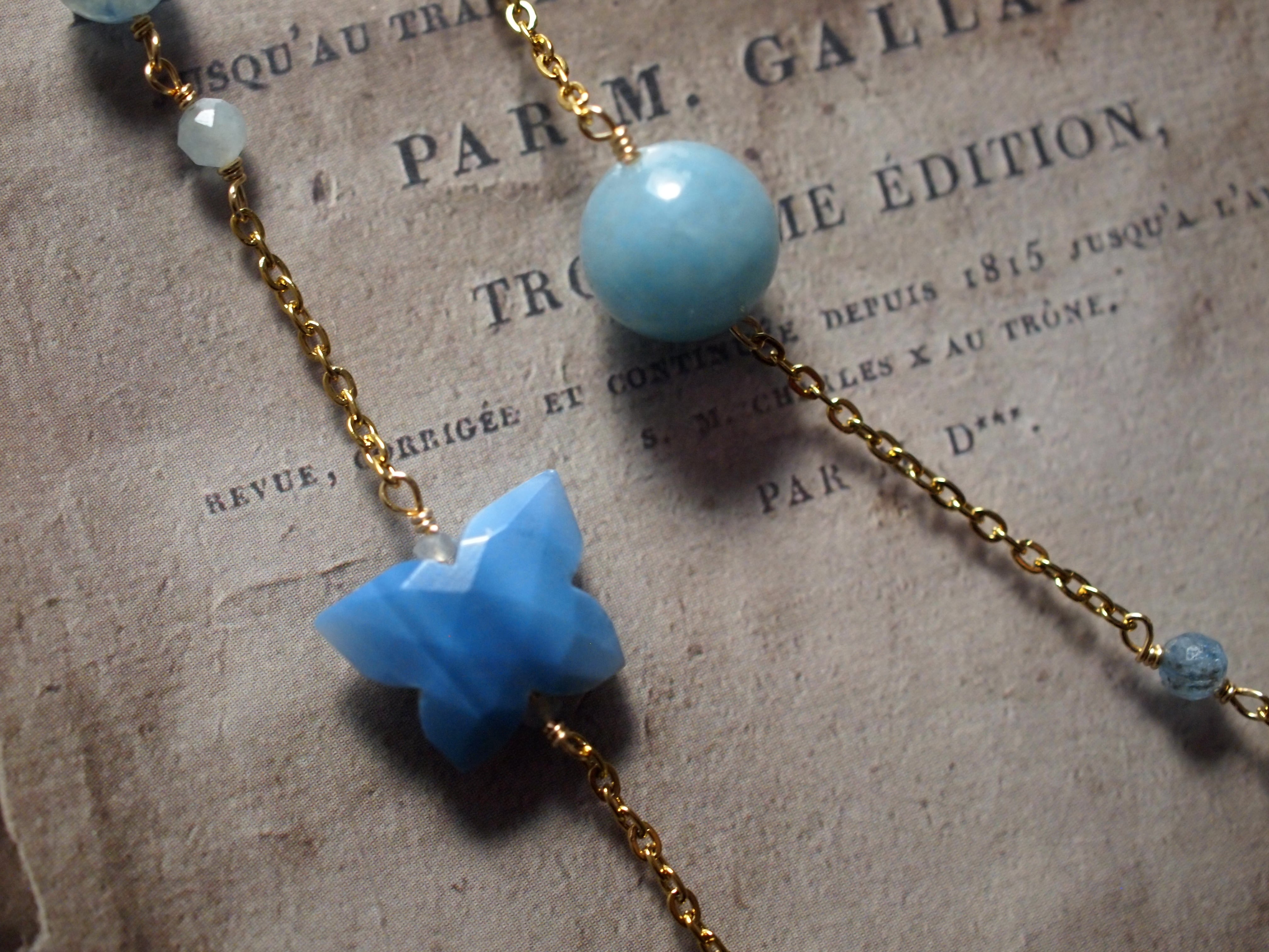 素材:アクアマリン カイヤナイト あこや真珠 ブルーオパール トロレアイト