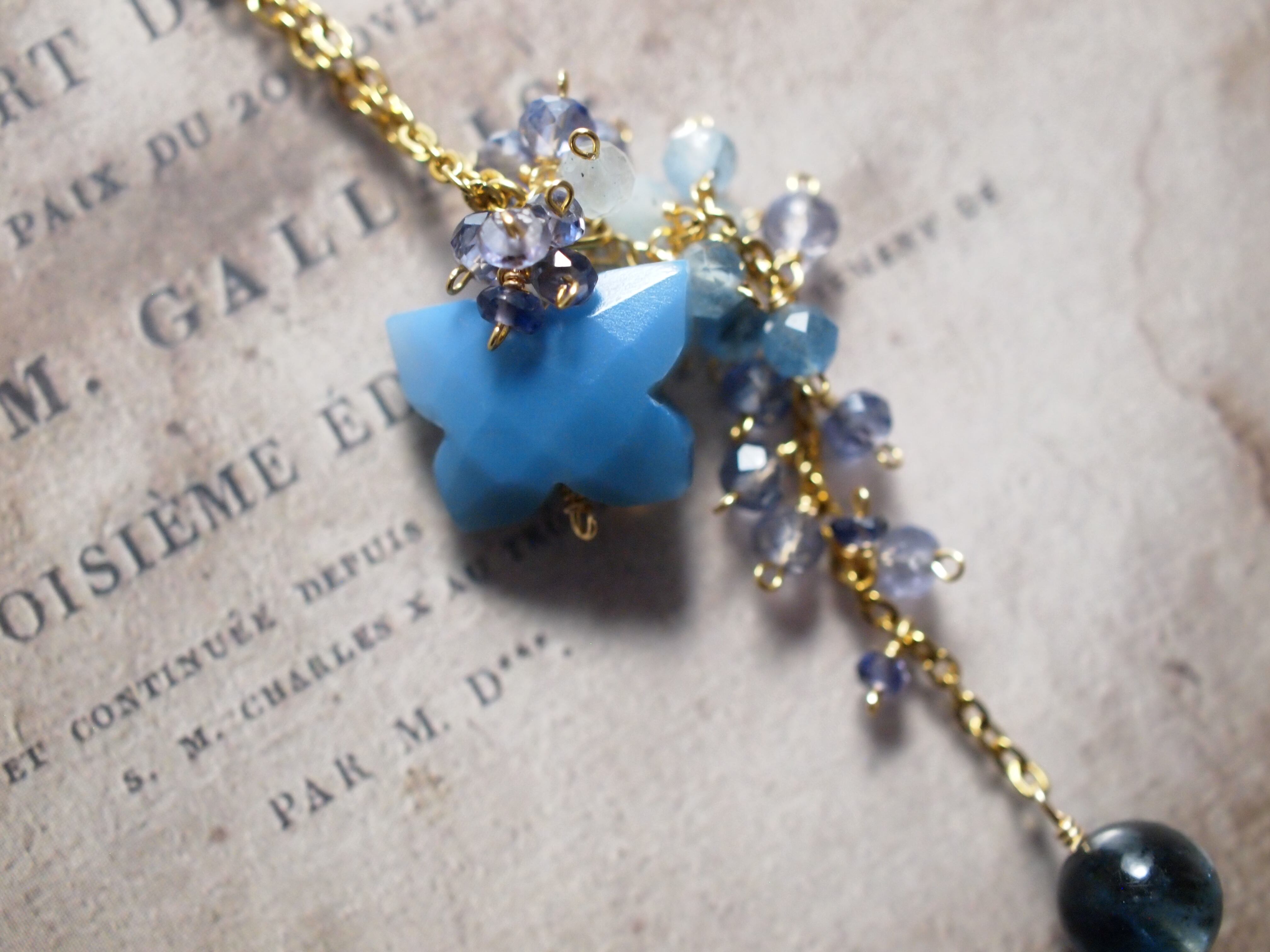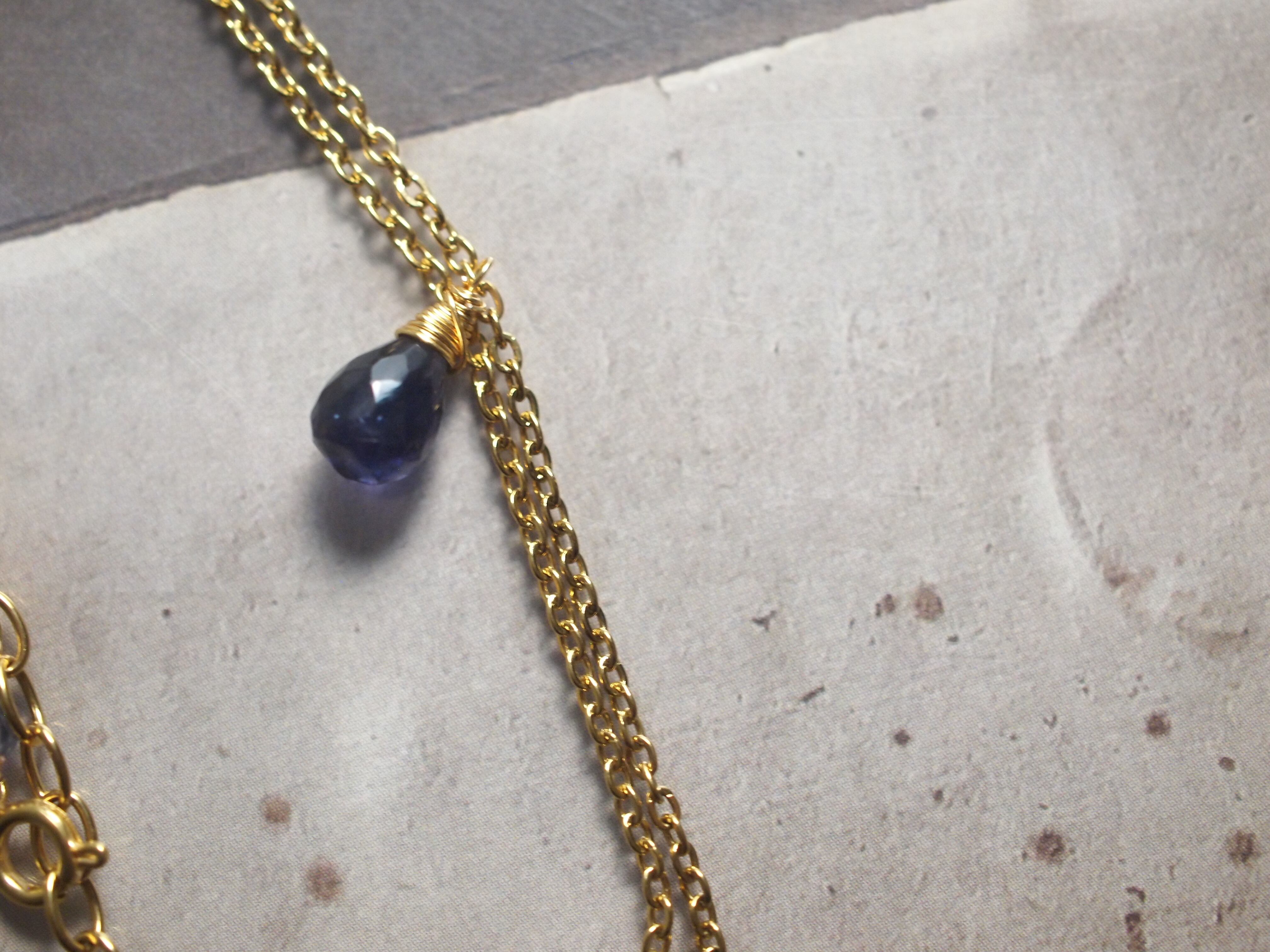 チェーンの途中にはドロップカットのアイオライトを添え、