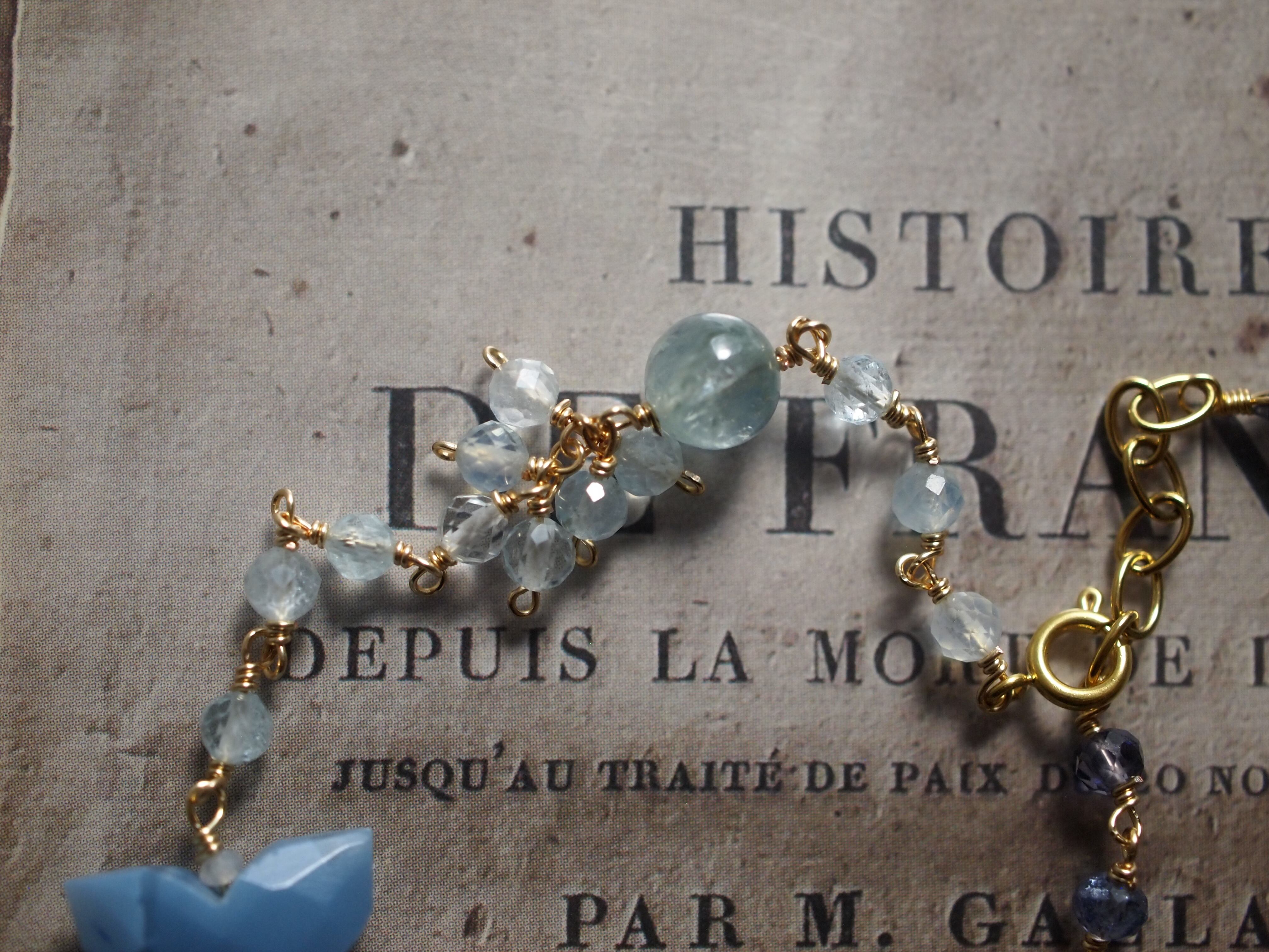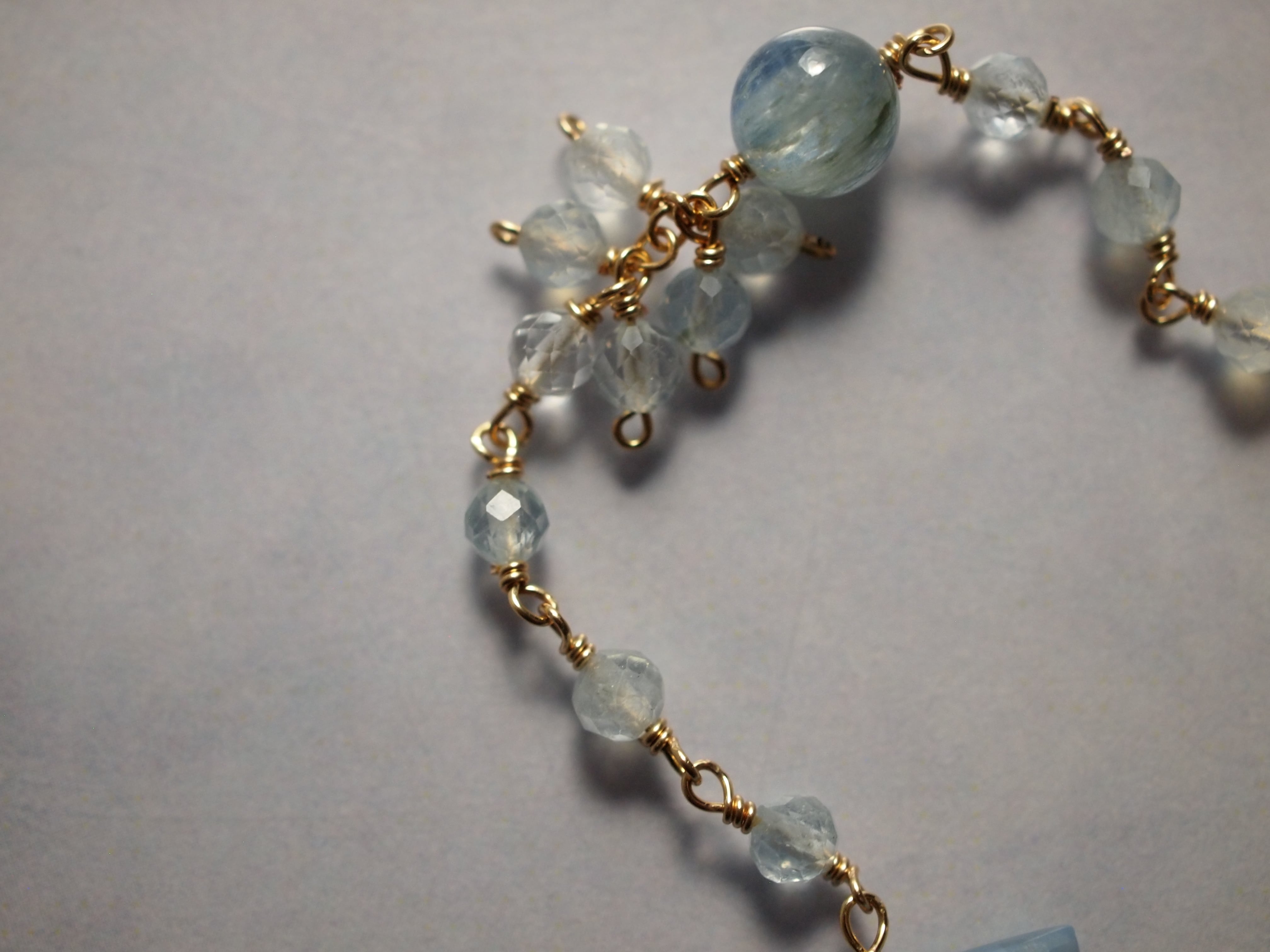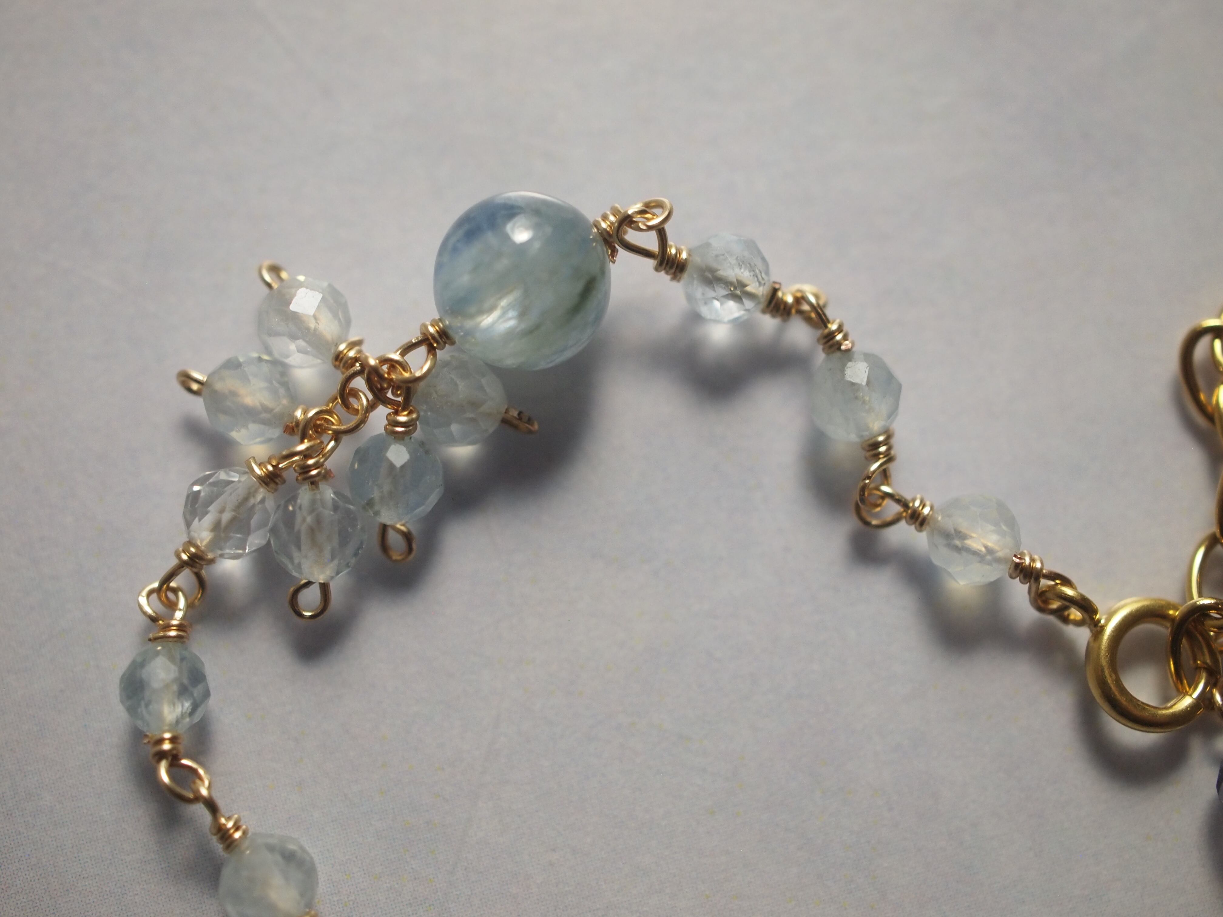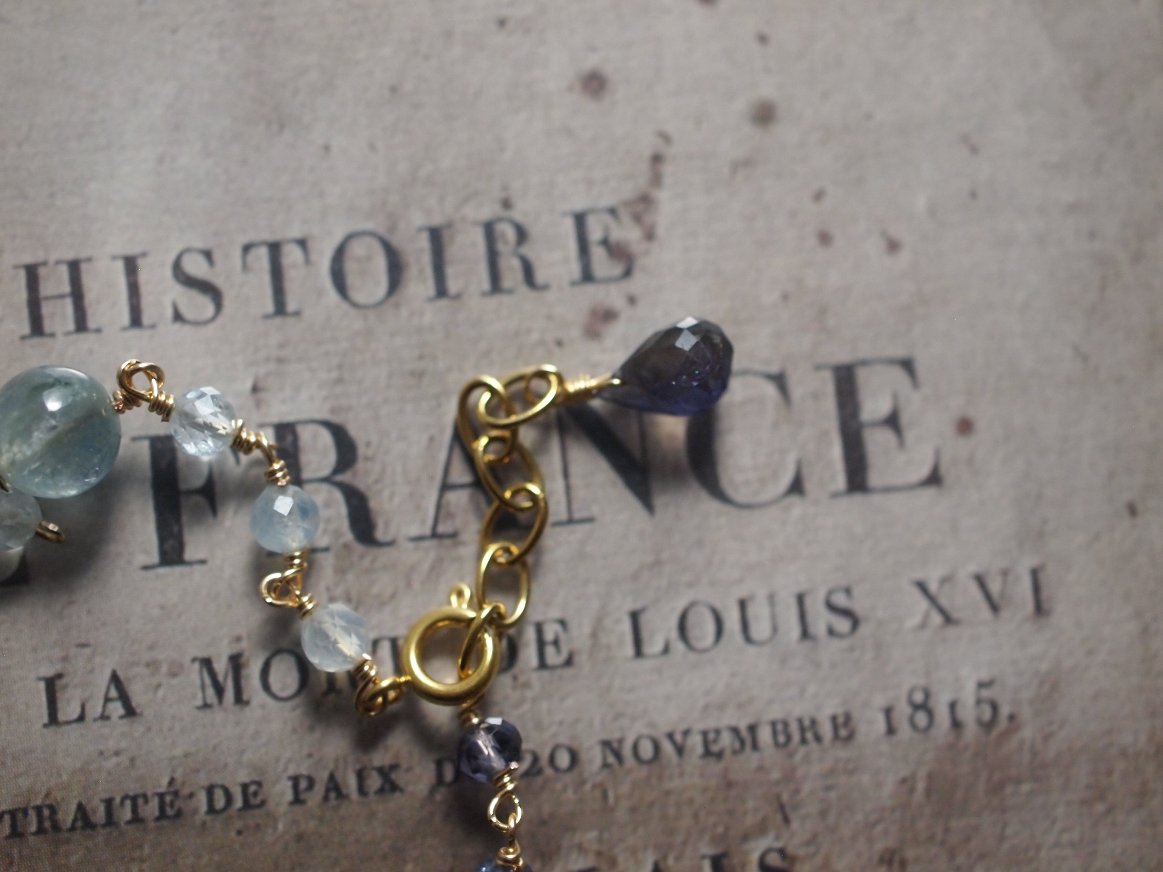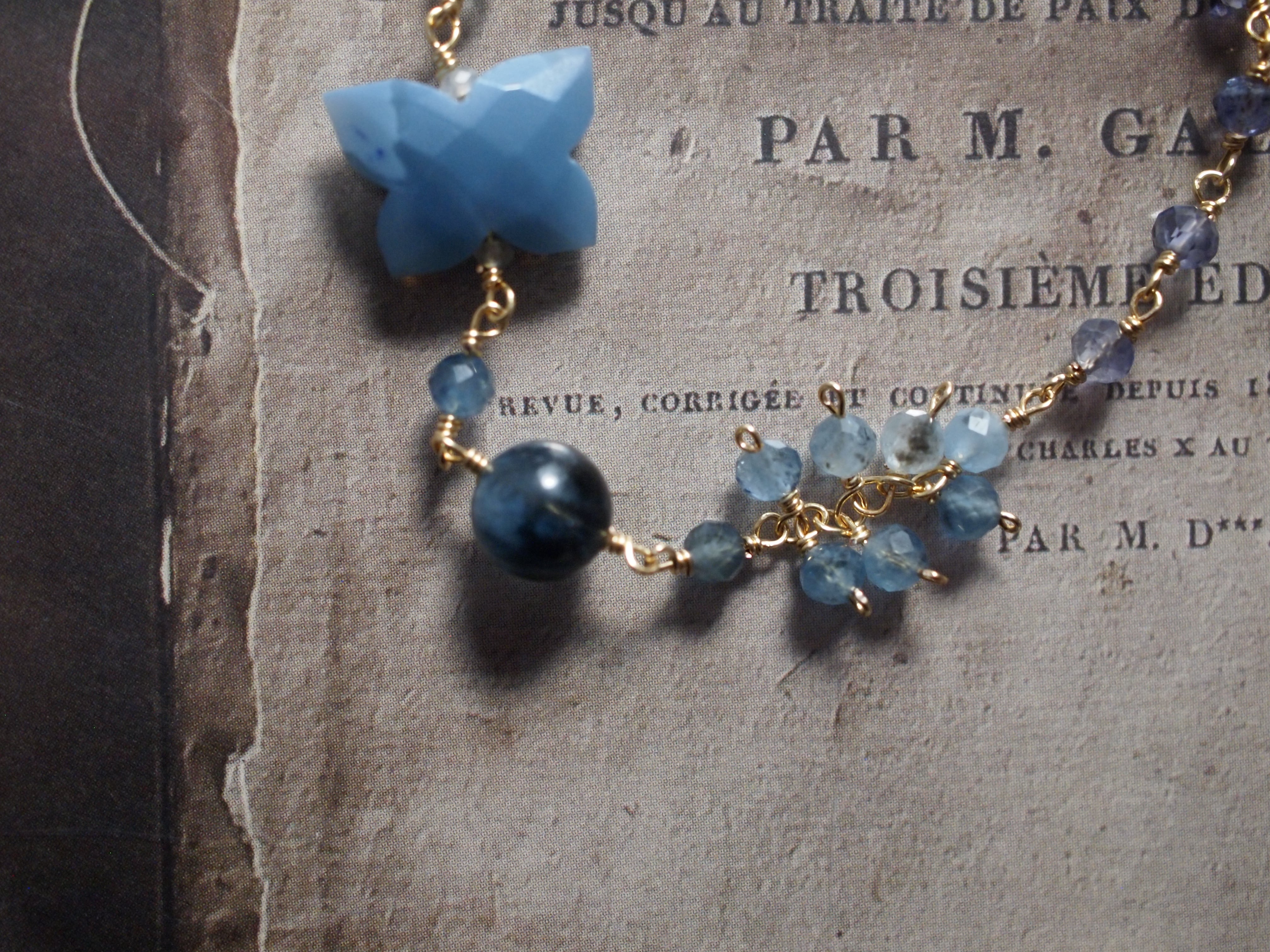 深海のような深い青のブラックアクアマリン、淡いブルーのカイヤナイト