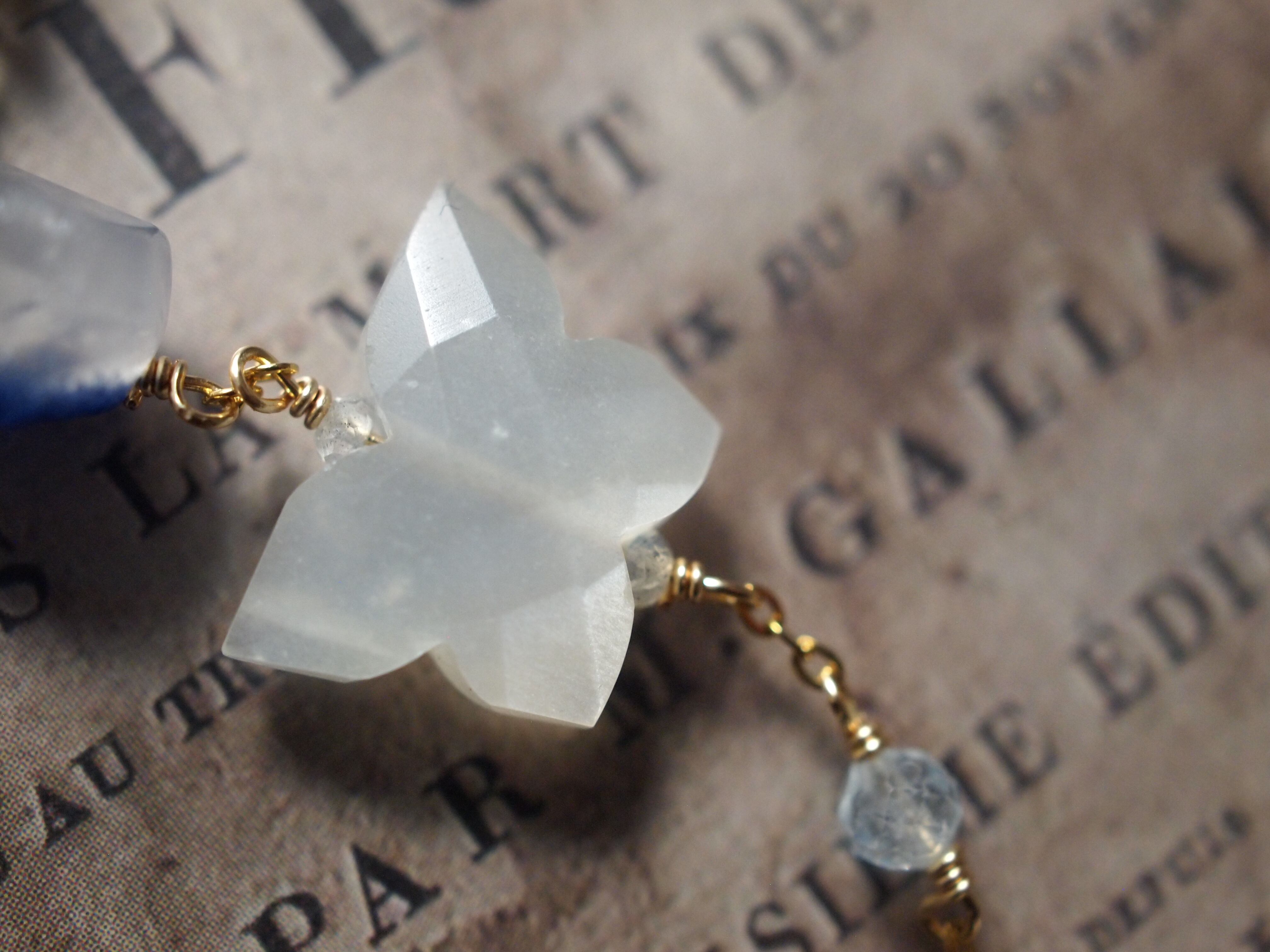 ホワイトムーンストーンの蝶カット、
