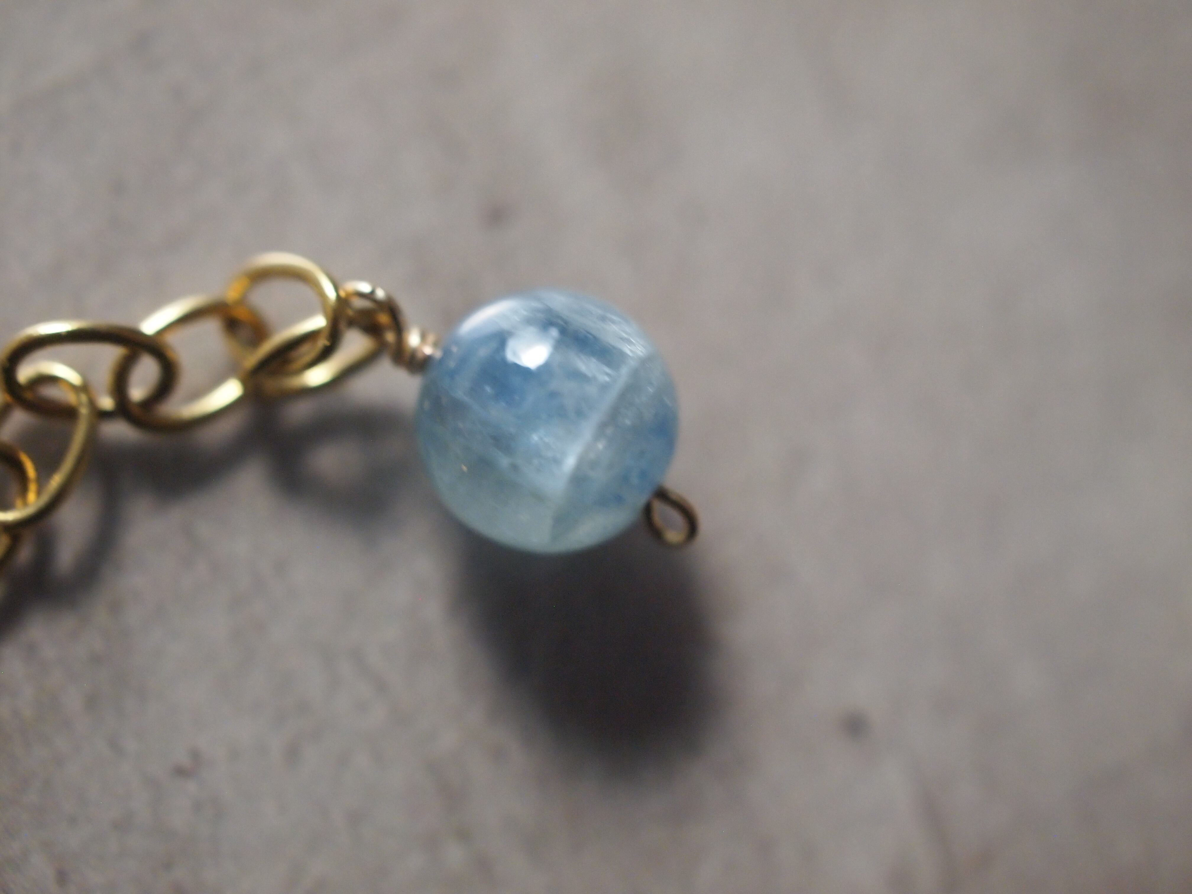 アジャスターエンドには淡いブルーのカイヤナイトをあしらい、揺れるたびに柔らかく光を受け、手元に静かな余韻を生み出します。