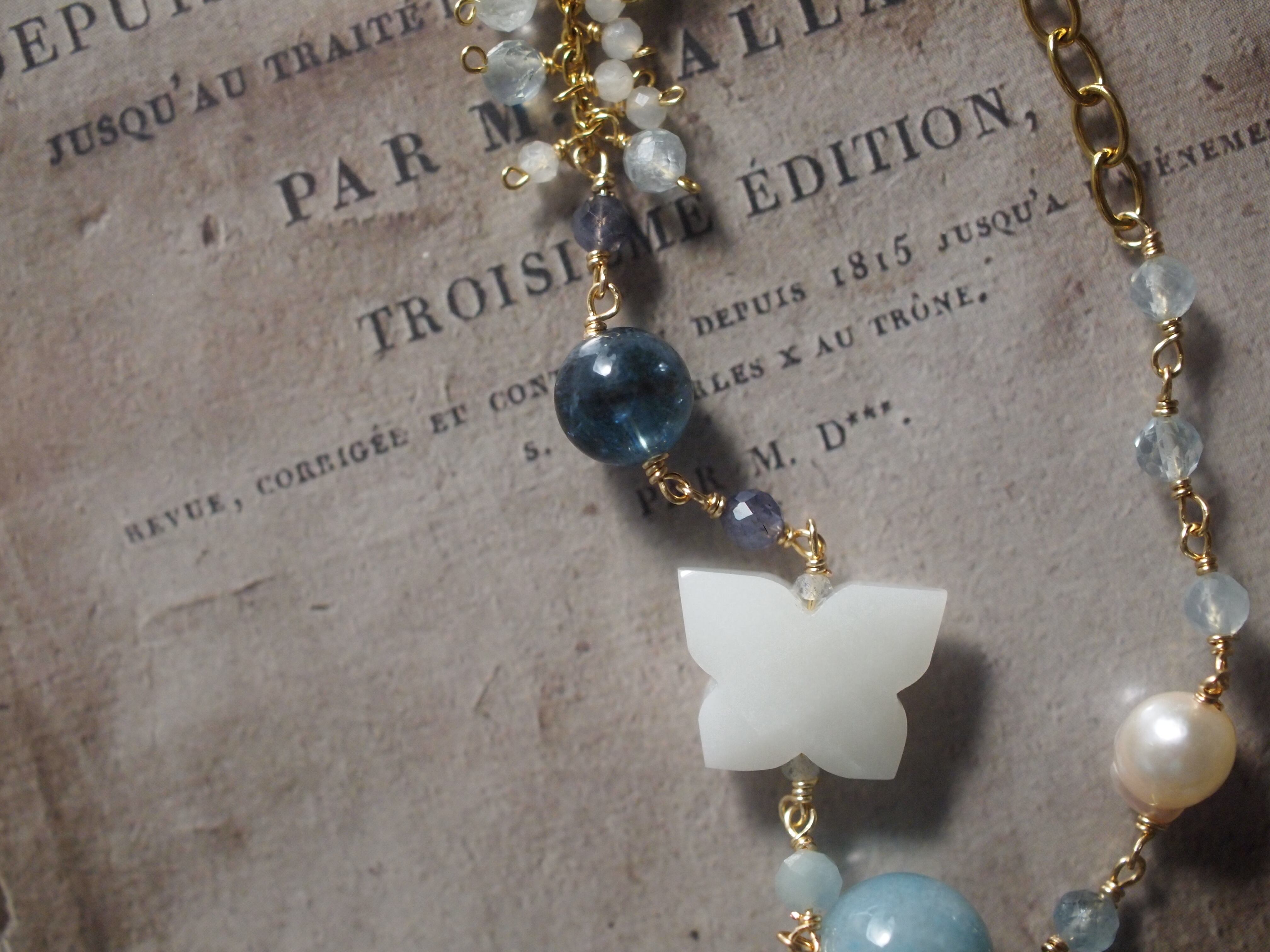 ホワイトムーンストーンの蝶カット、